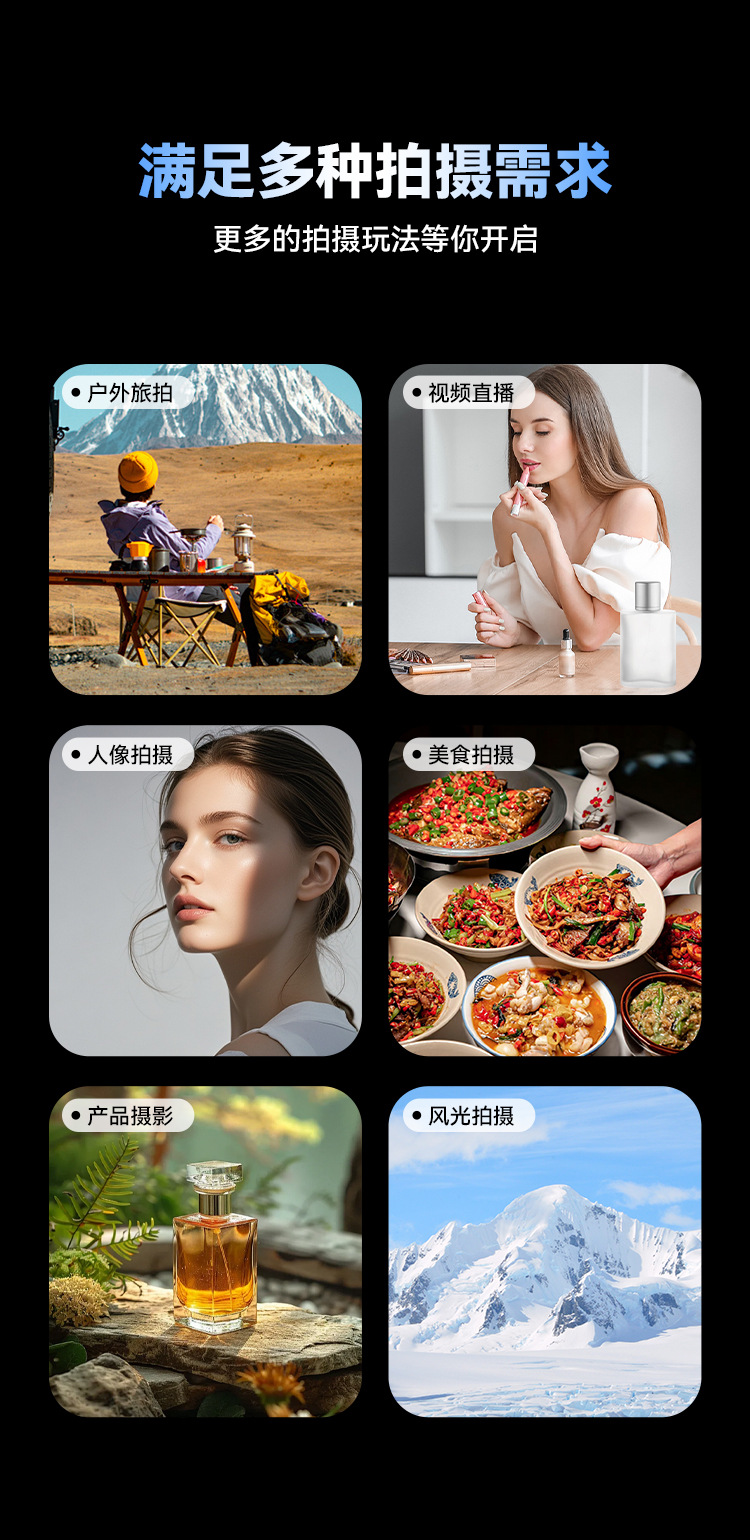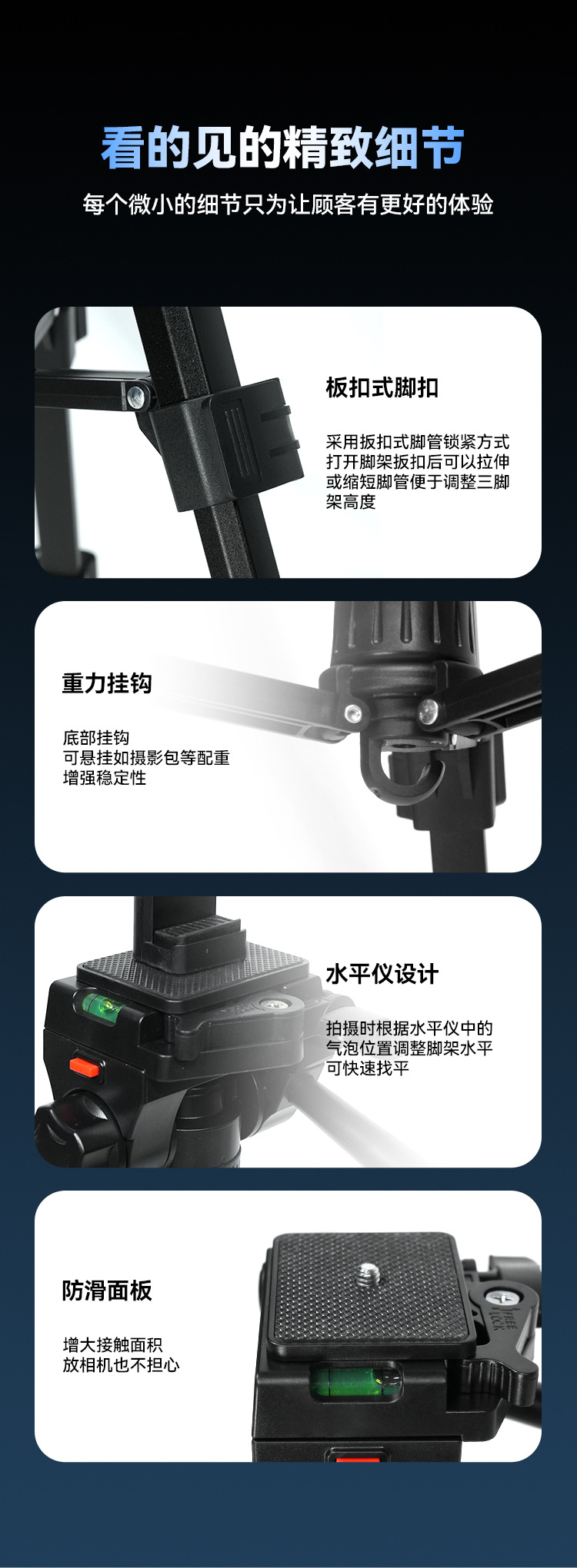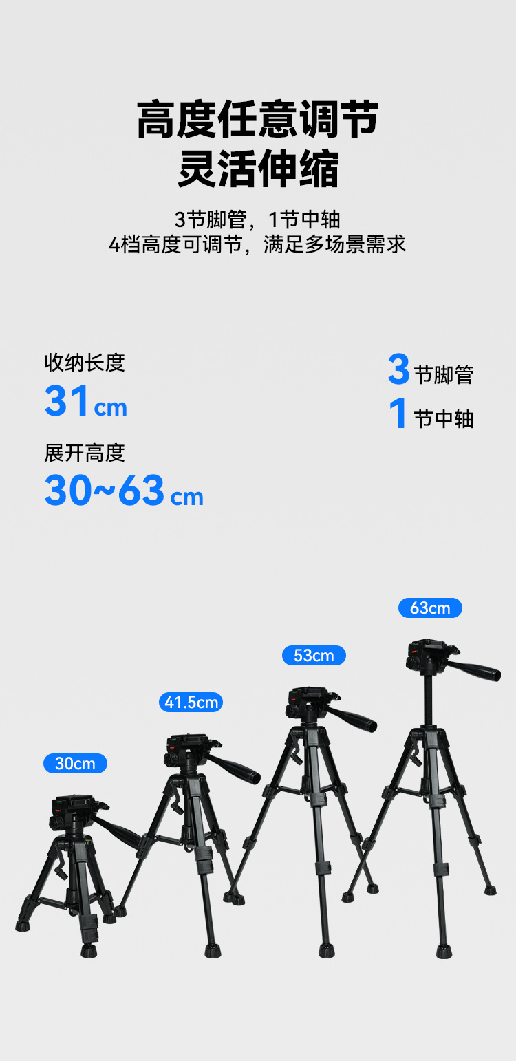 • P5 [표준 3색 온도] 필라이트 + 360 짐벌 텔레스코픽 삼각대 [블랙] + E자형 클립 + 휴대폰 클립