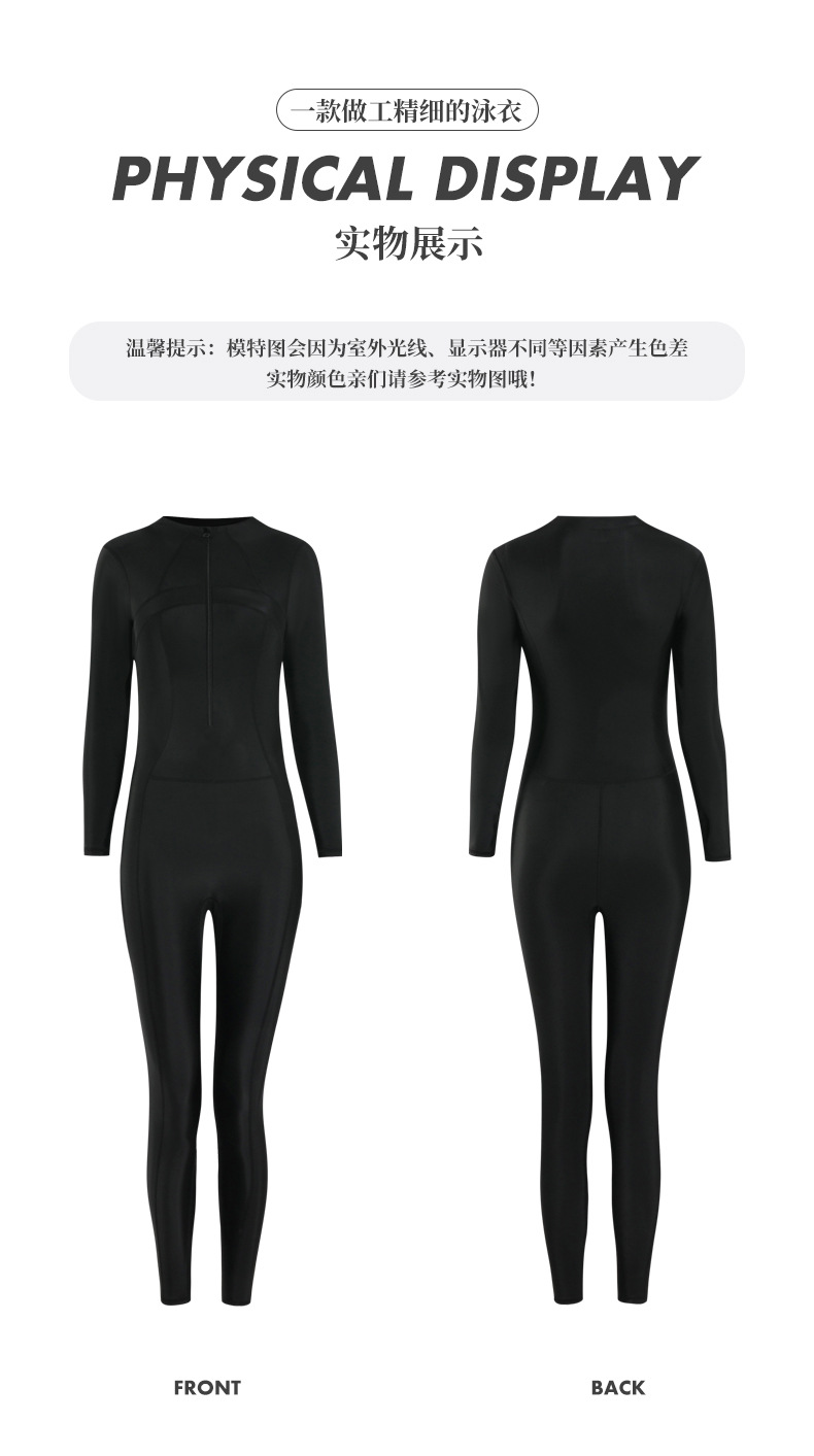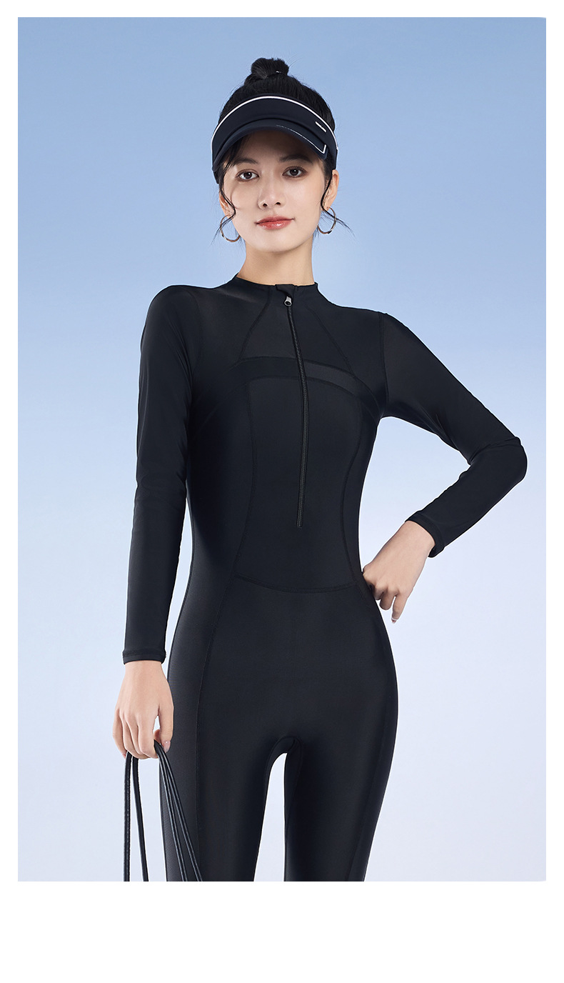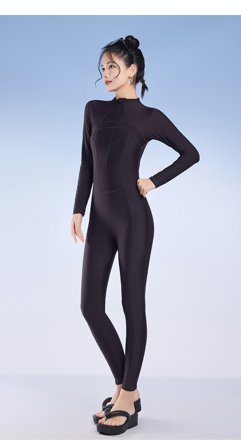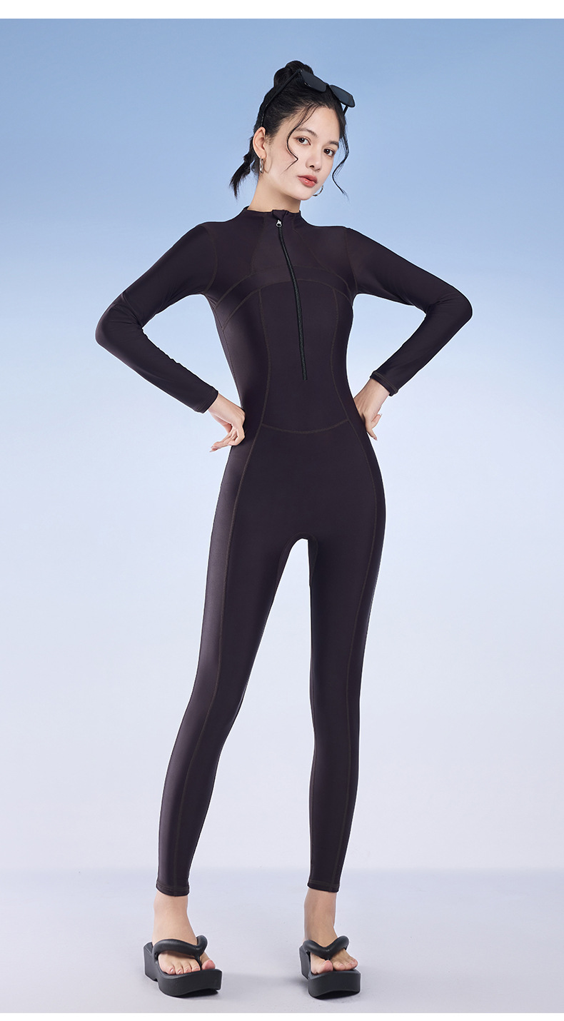 2025 새로운 솔리드 컬러 슬림 긴팔 태양 보호 서핑 슈트 보수적 인 슬리밍 지퍼 스포츠 원피스 수영복 잠수복