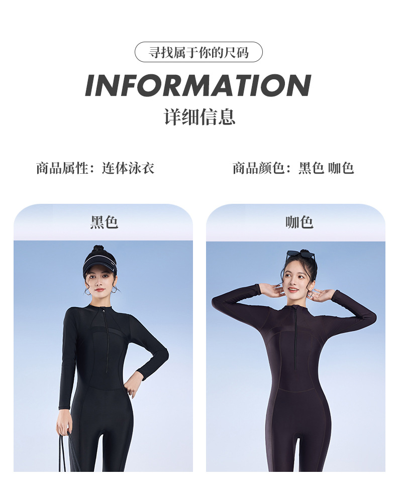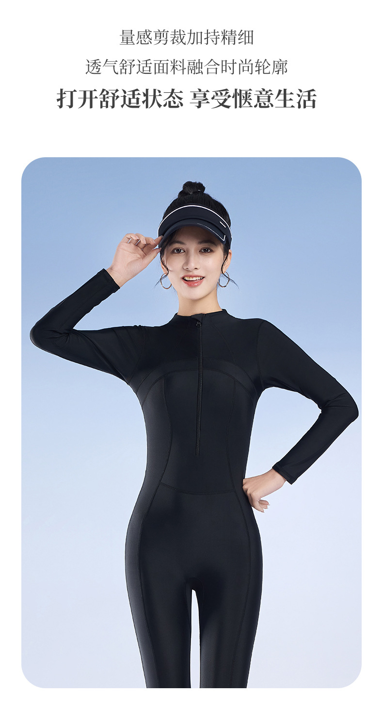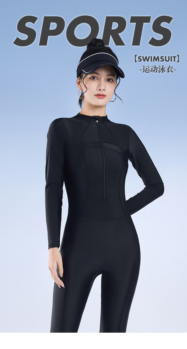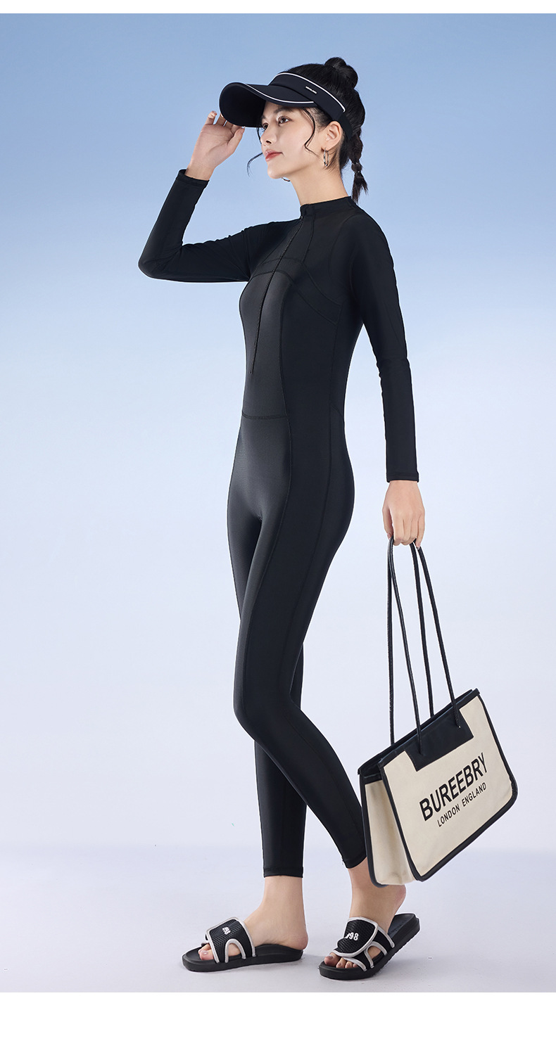 2025 새로운 솔리드 컬러 슬림 긴팔 태양 보호 서핑 슈트 보수적 인 슬리밍 지퍼 스포츠 원피스 수영복 잠수복