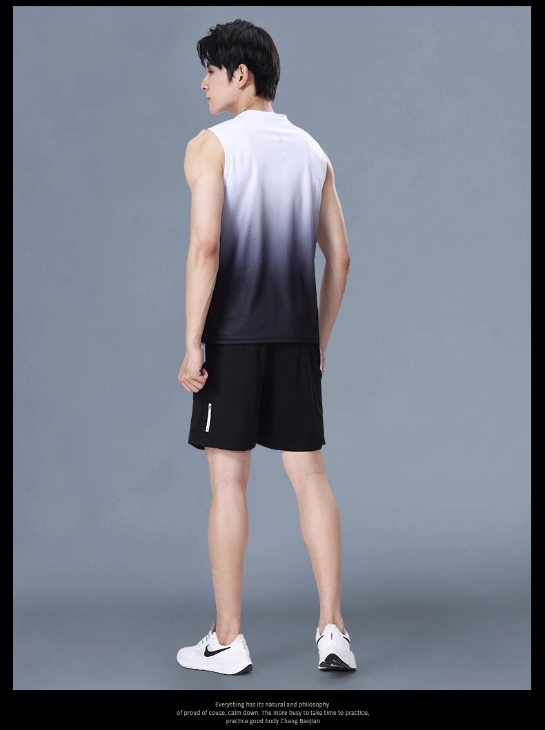스포츠 슈트 남성용 속건성 의류 얼음 실크 조끼 반바지 러닝 여름 트레이닝 피트니스 유니폼 대외 무역 국경 간 도매스토어 가기