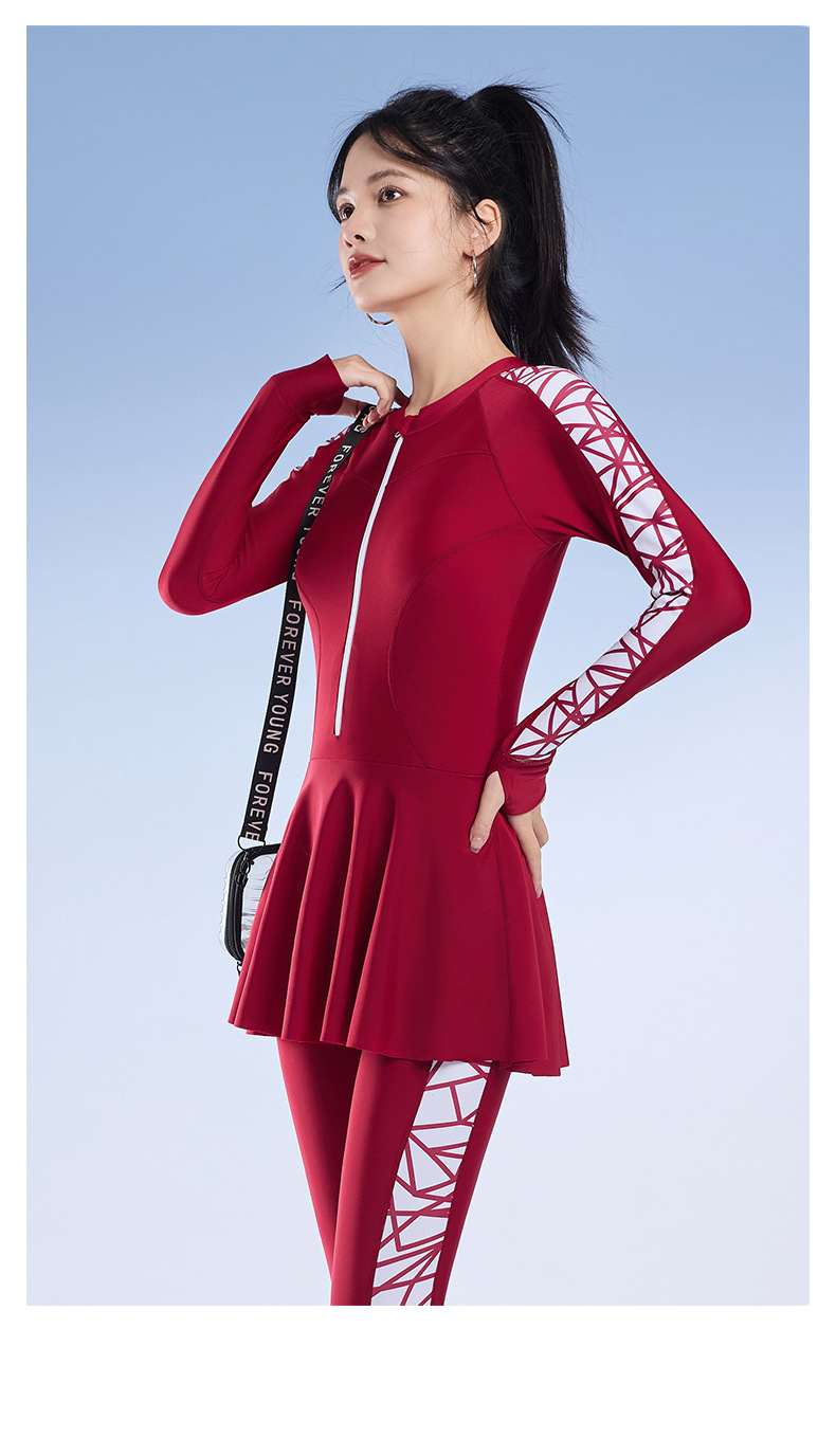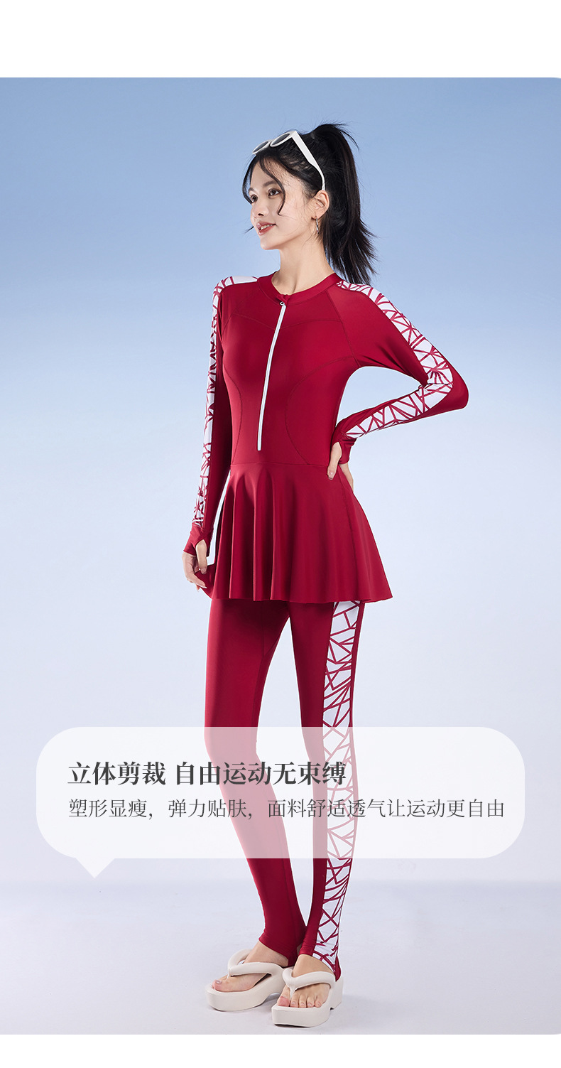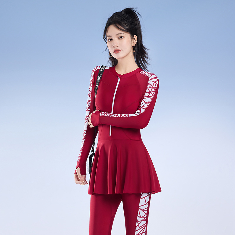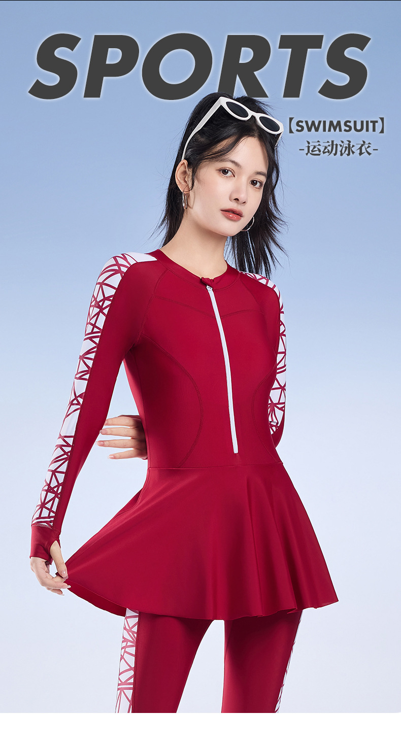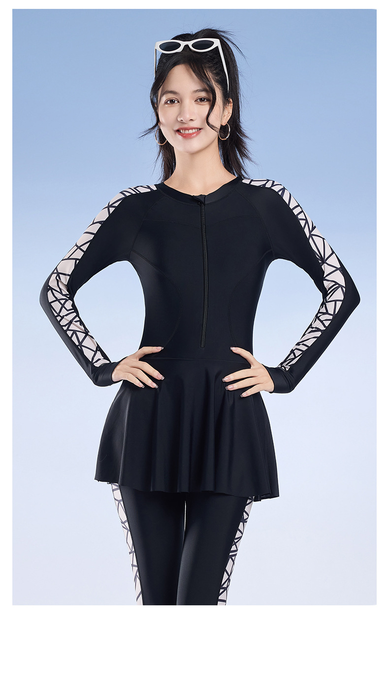 2025 새로운 슬림핏 속건성 긴팔 바지 보수적인 스커트 원피스 수영복 여성 서핑 잠수복