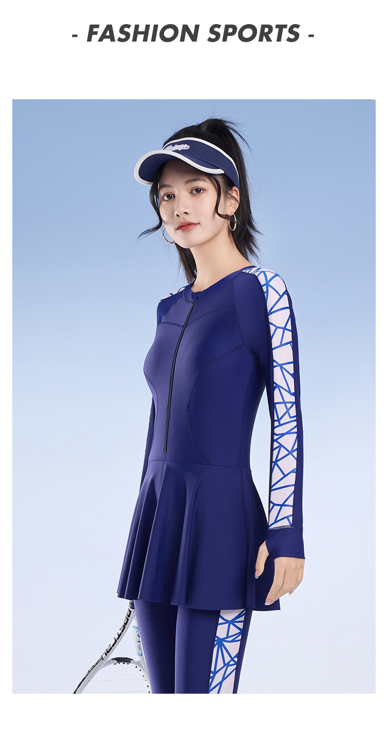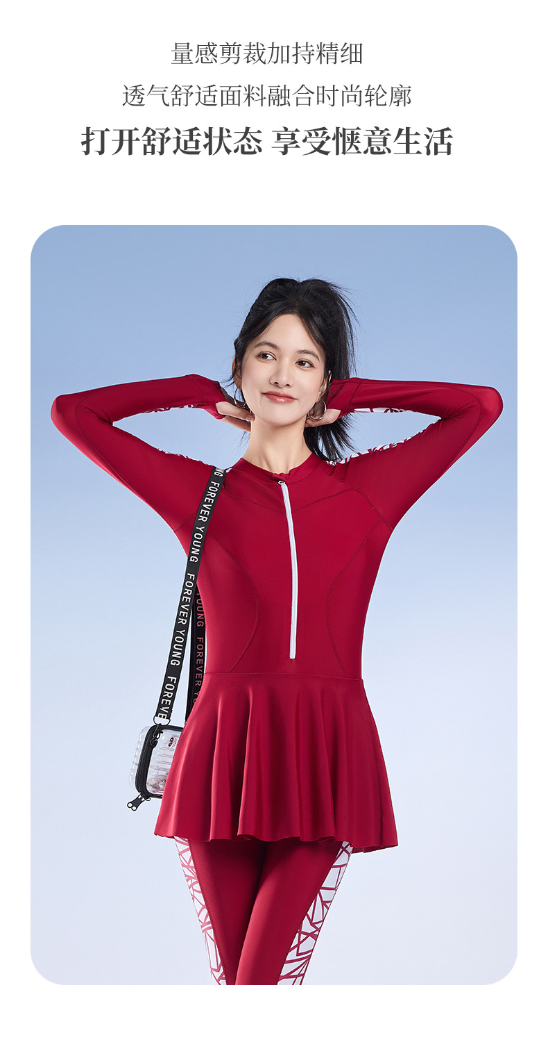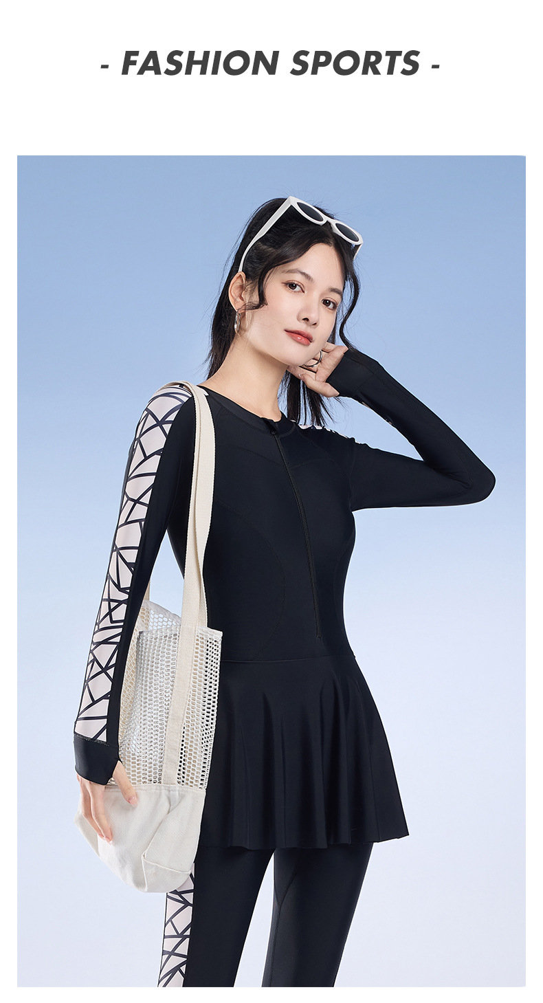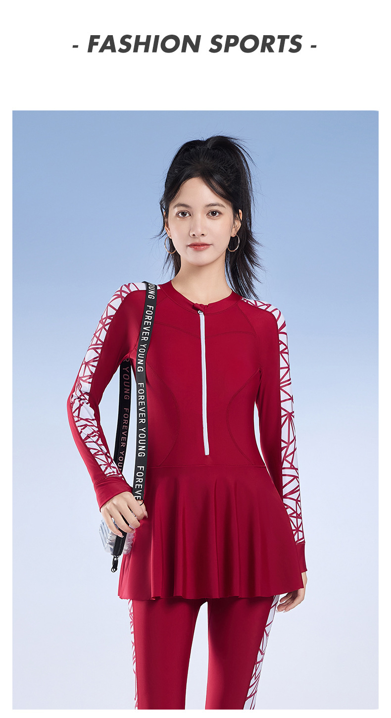 2025 새로운 슬림핏 속건성 긴팔 바지 보수적인 스커트 원피스 수영복 여성 서핑 잠수복