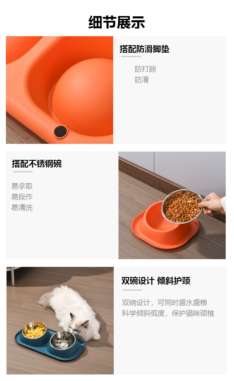 애완 동물 용품 도매 애완 동물 그릇 애완 동물 더블 그릇 단일 그릇 스테인레스 스틸 안티 흔들리는 개 그릇 경사진 입 목 보호 고양이 그릇