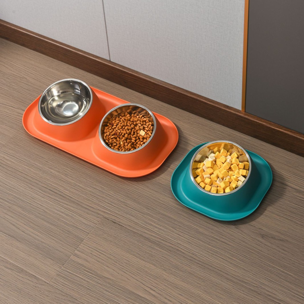 애완 동물 용품 도매 애완 동물 그릇 애완 동물 더블 그릇 단일 그릇 스테인레스 스틸 안티 흔들리는 개 그릇 경사진 입 목 보호 고양이 그릇스토어 가기