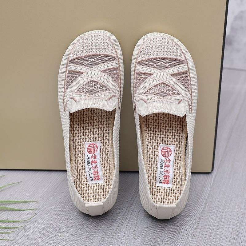2020老北京布鞋女新款春夏透气飞织网面鞋浅口透气防滑老年妈妈鞋