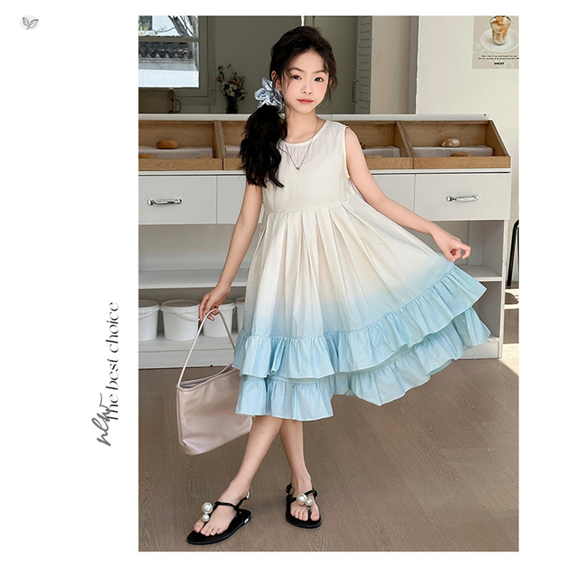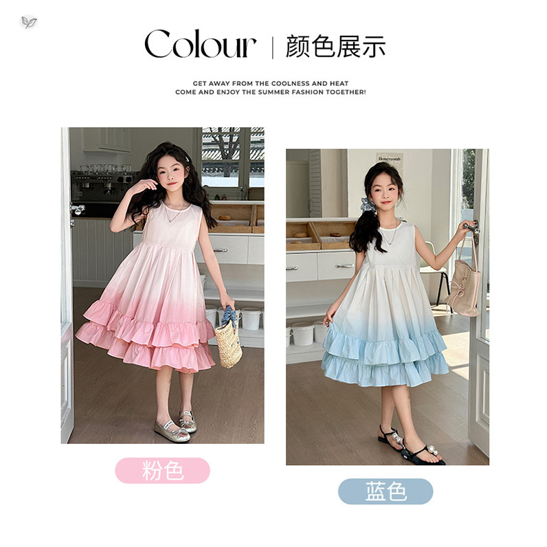 여아 여름 원피스 2026 신상 중대형 아동용 민소매 원피스 공주 원피스 중간 길이 그라데이션 고급스러운 케이크 원피스