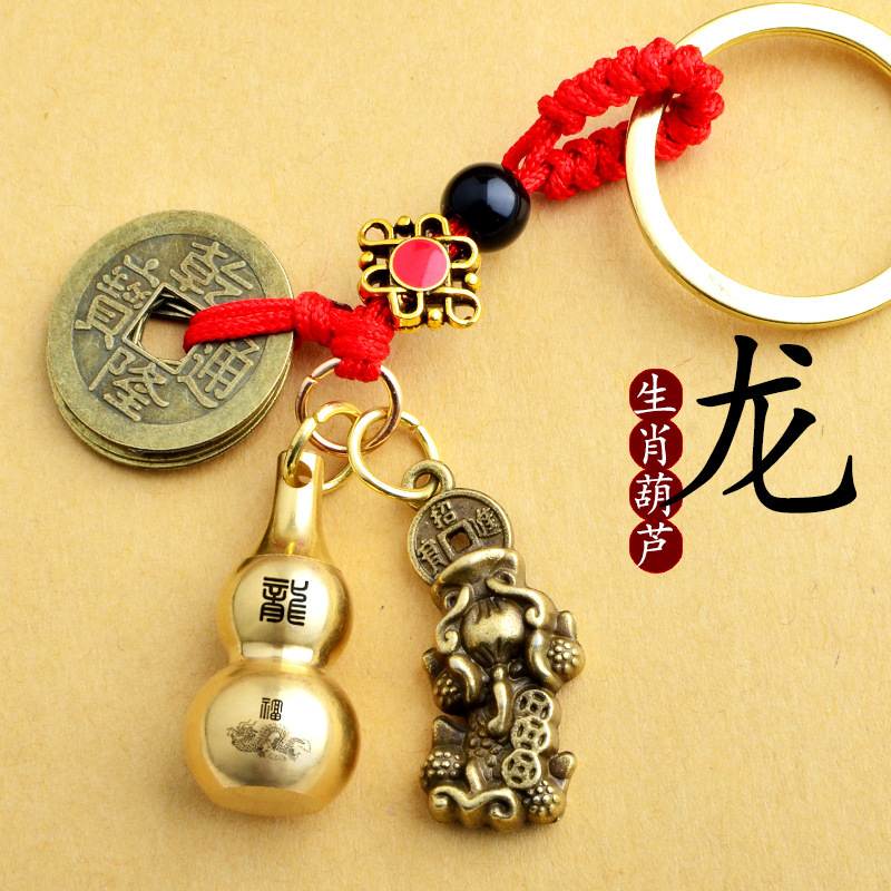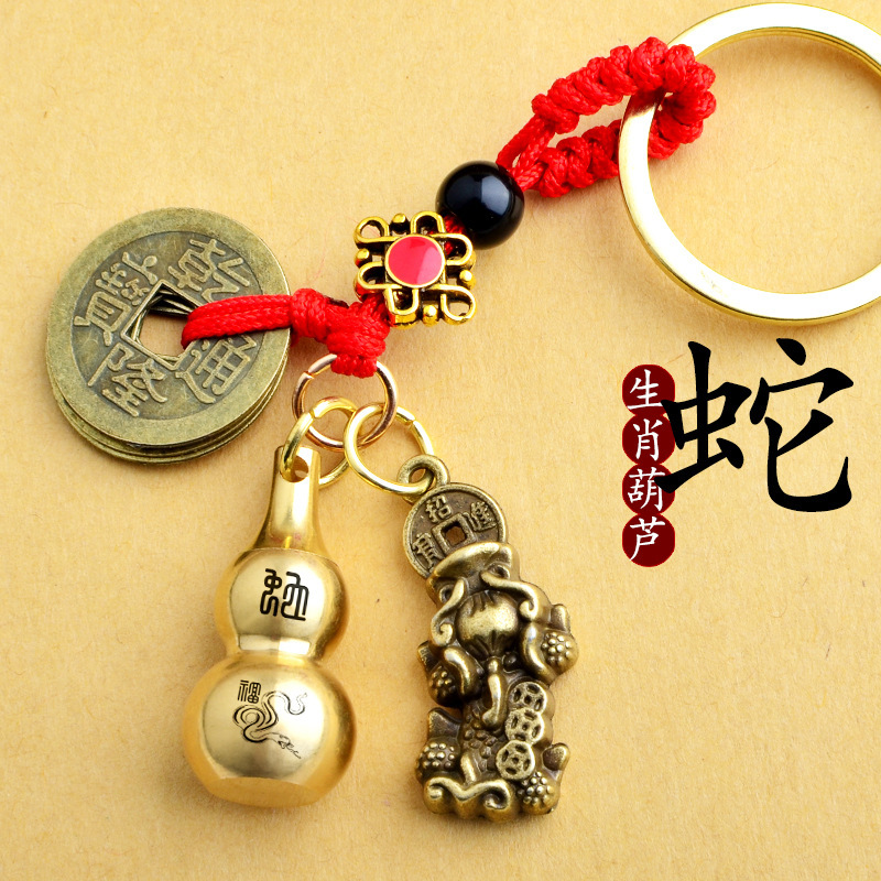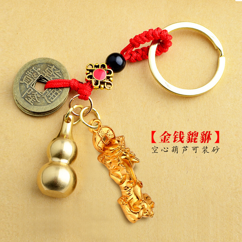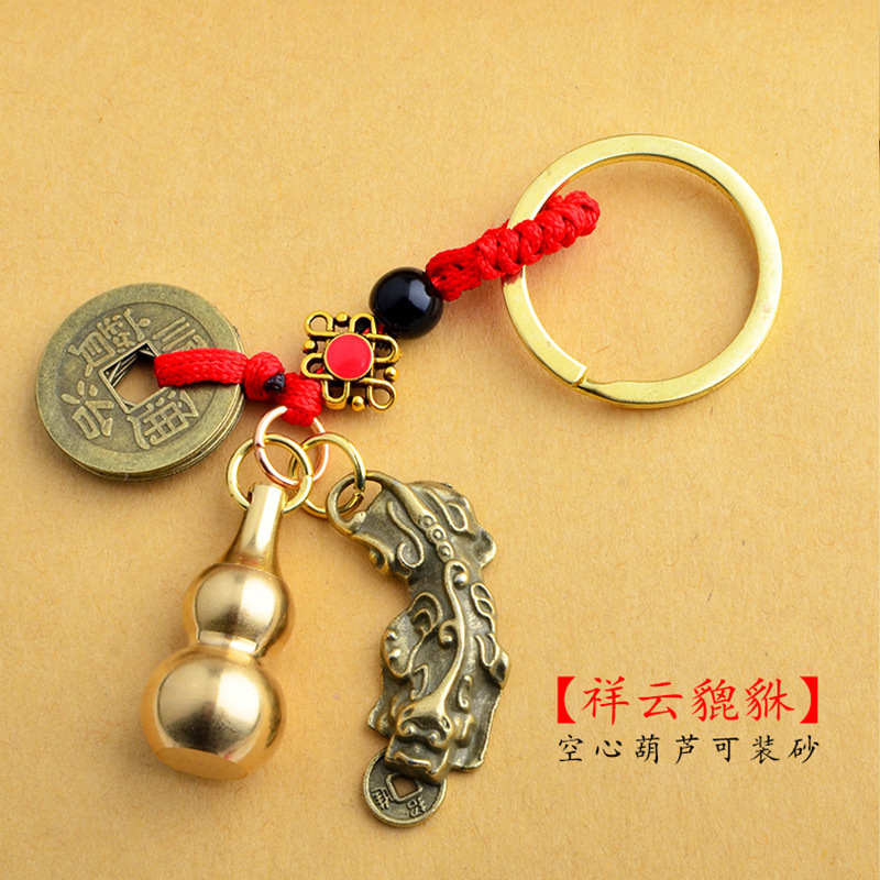 붉은 밧줄 다섯 황제 동전 합금 구리 동전 Pixiu 열쇠 고리 중공 조롱박 펜던트 Yiwu 작은 상품 도매스토어 가기