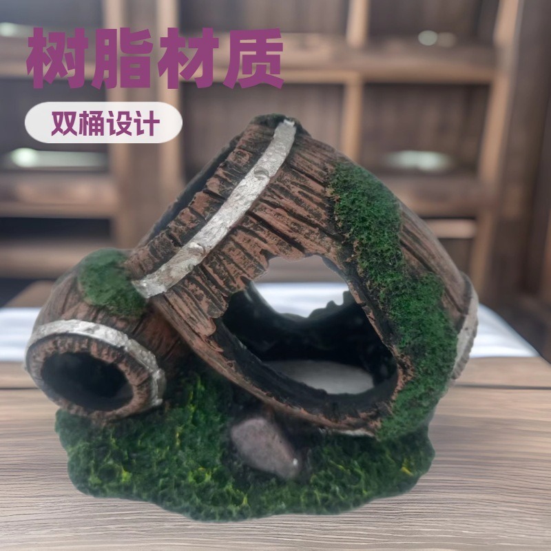 작은 장식품, 수조 조경, 시뮬레이션된 이중 통 수족관 수지 조경, 수족관 장식 및 조경 아이디어