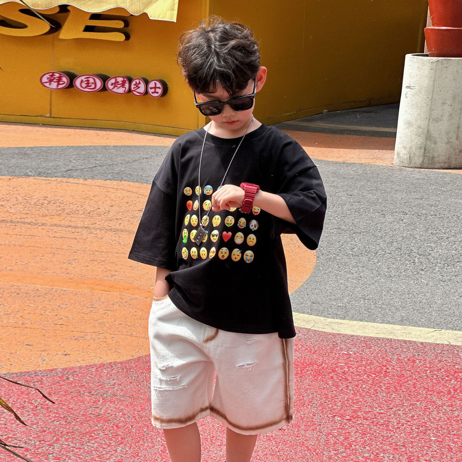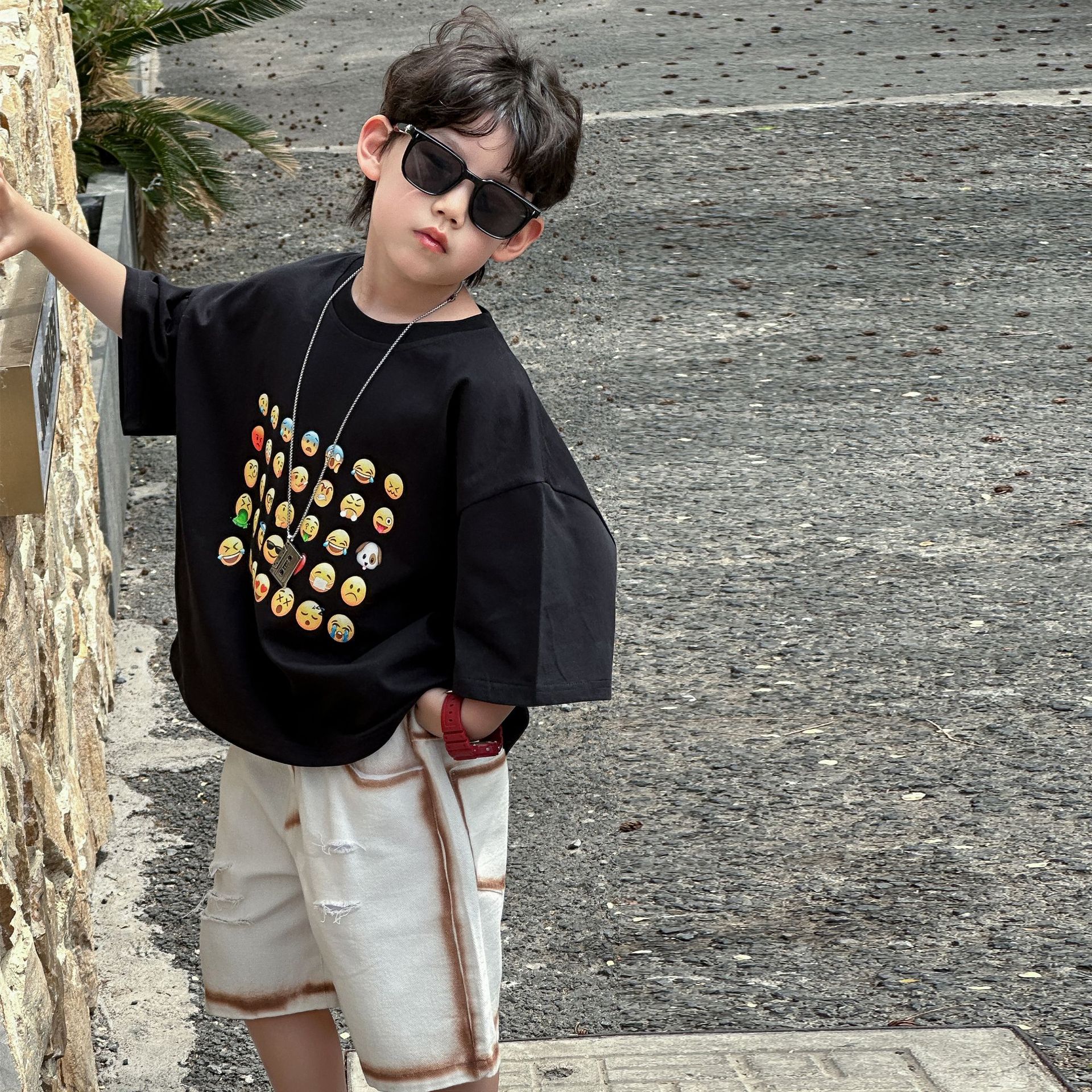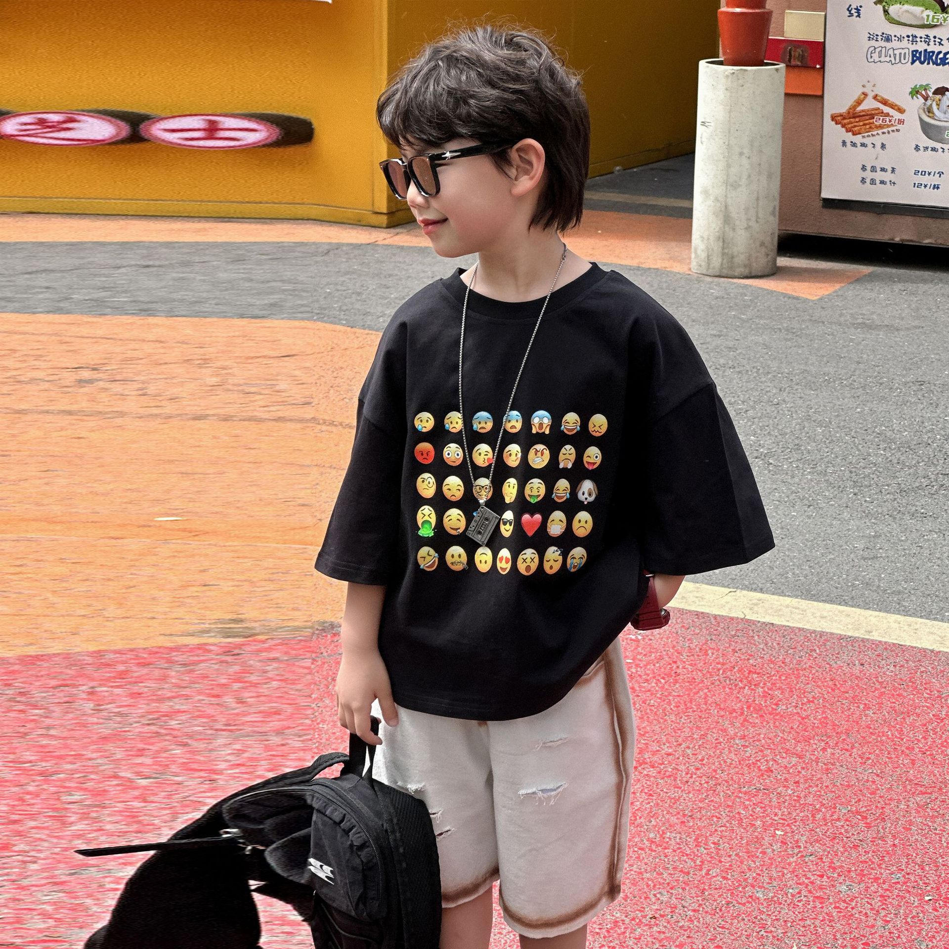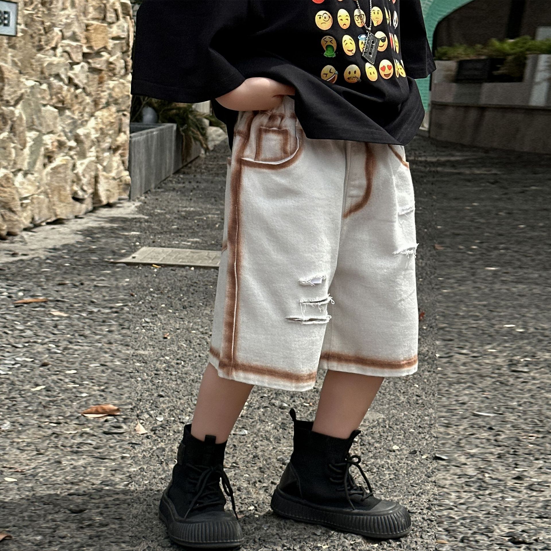 소년 여름 반바지 캐주얼 중간 바지 2025 여름 신작 아동 느슨한 미국식 5부 바지 아동복 유행 바지스토어 가기