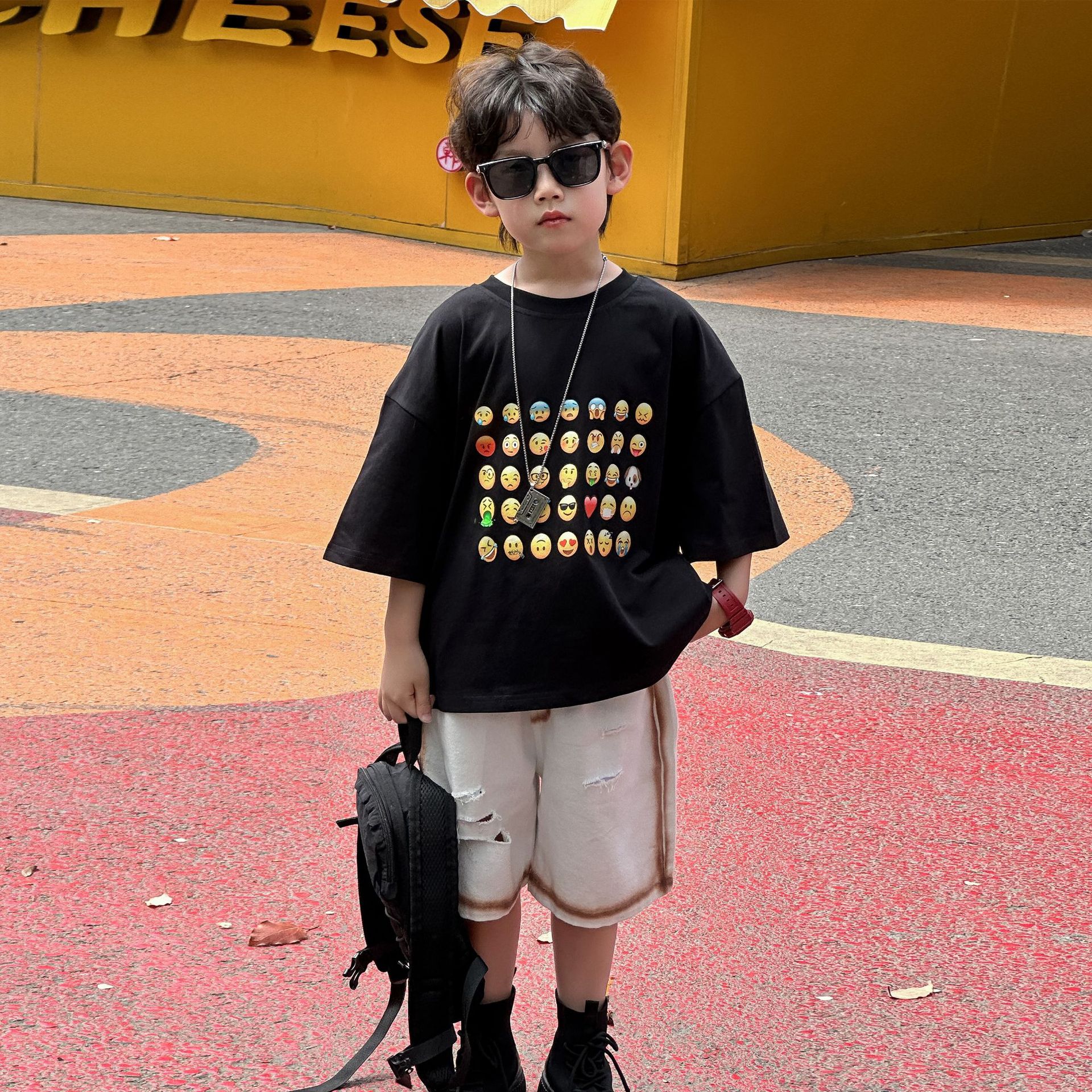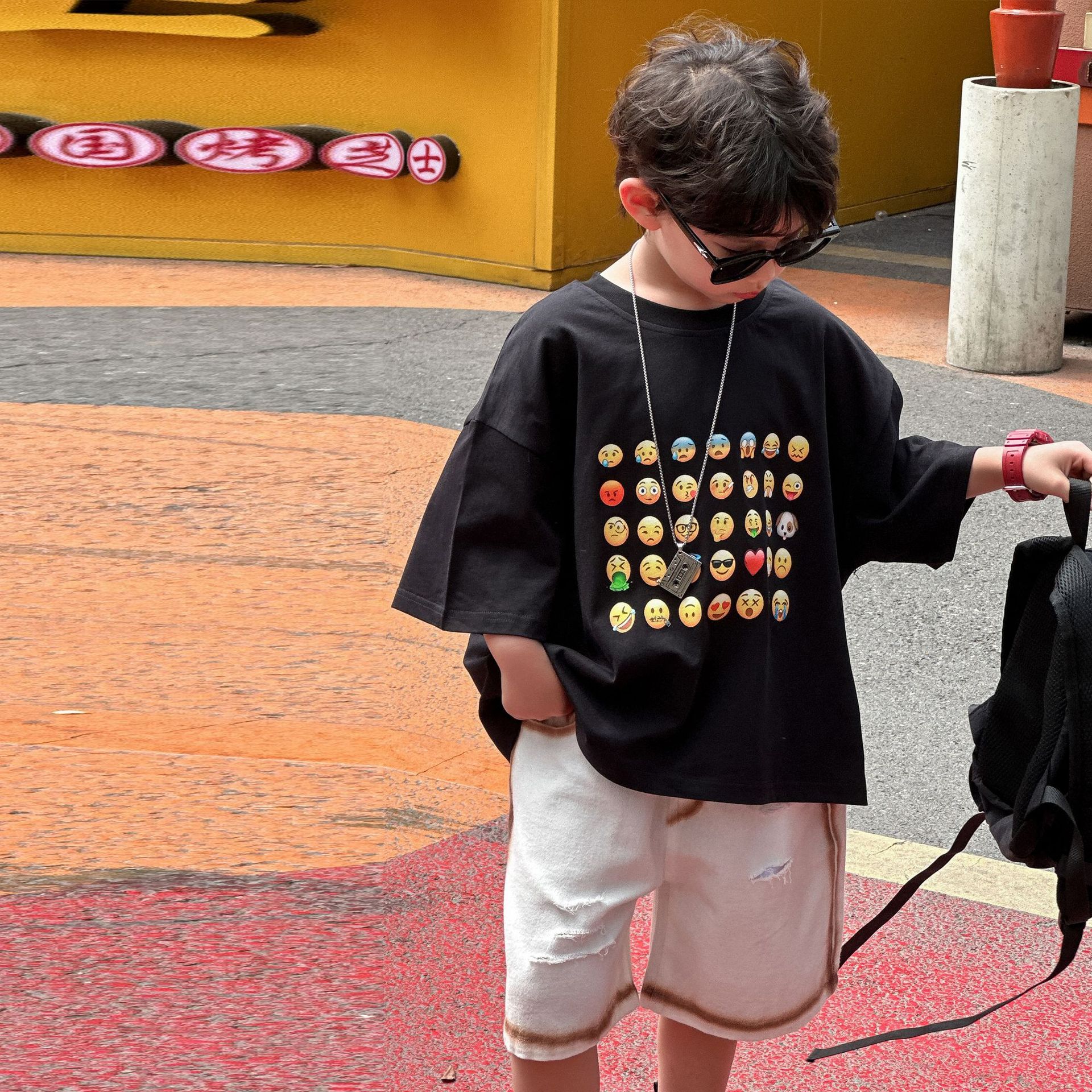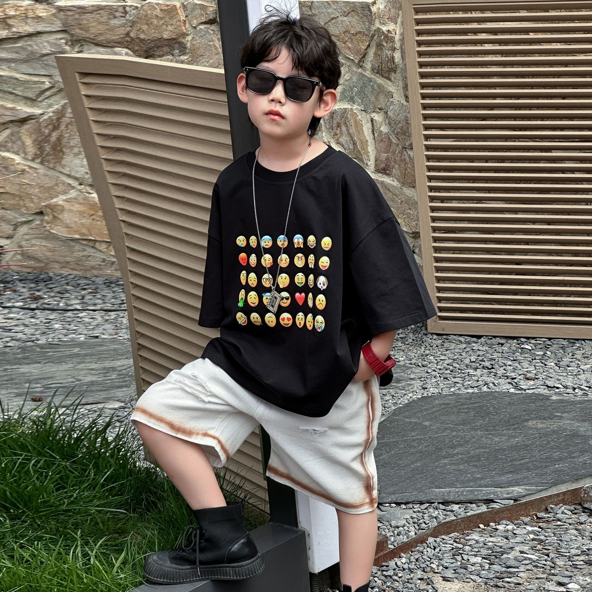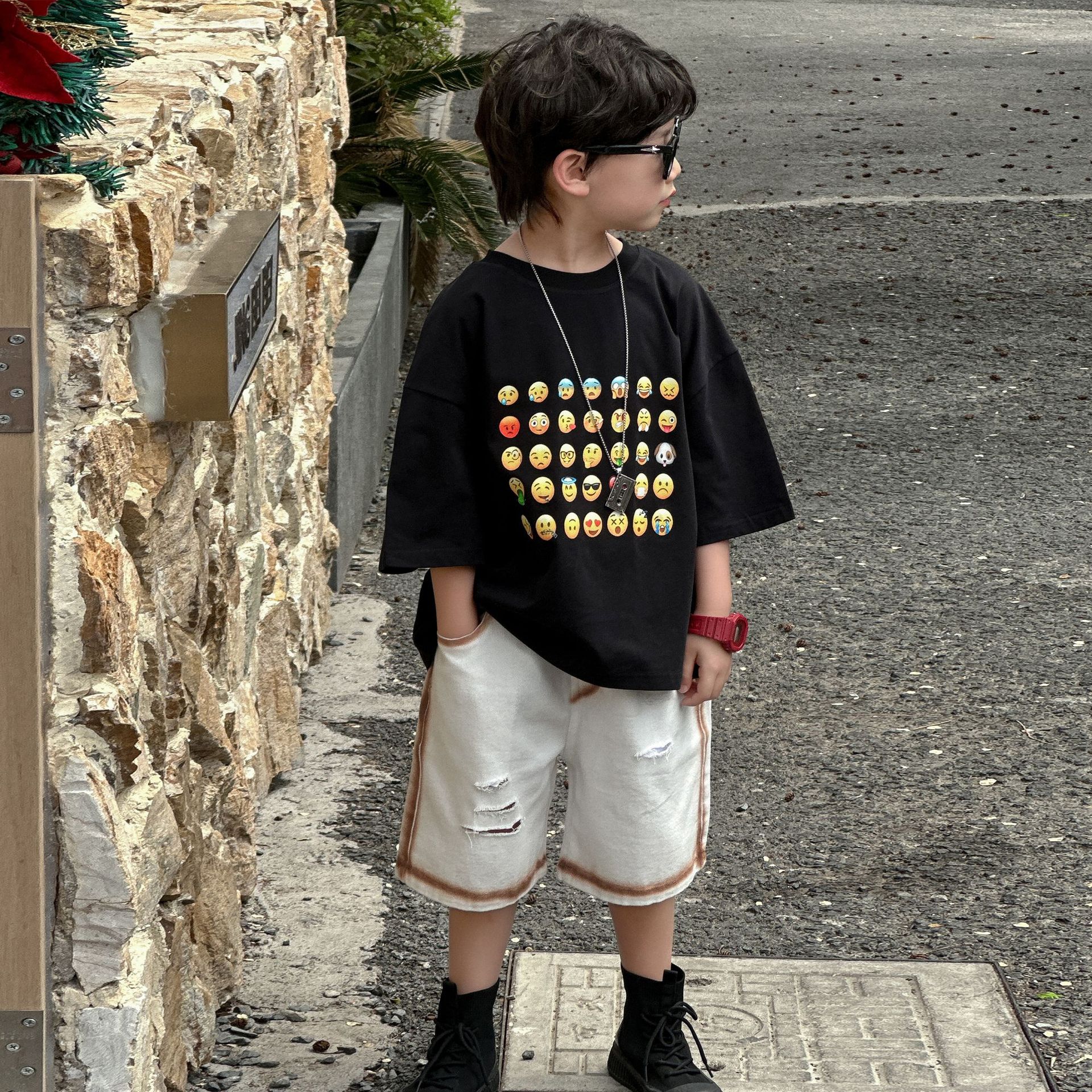소년 여름 반바지 캐주얼 중간 바지 2025 여름 신작 아동 느슨한 미국식 5부 바지 아동복 유행 바지스토어 가기