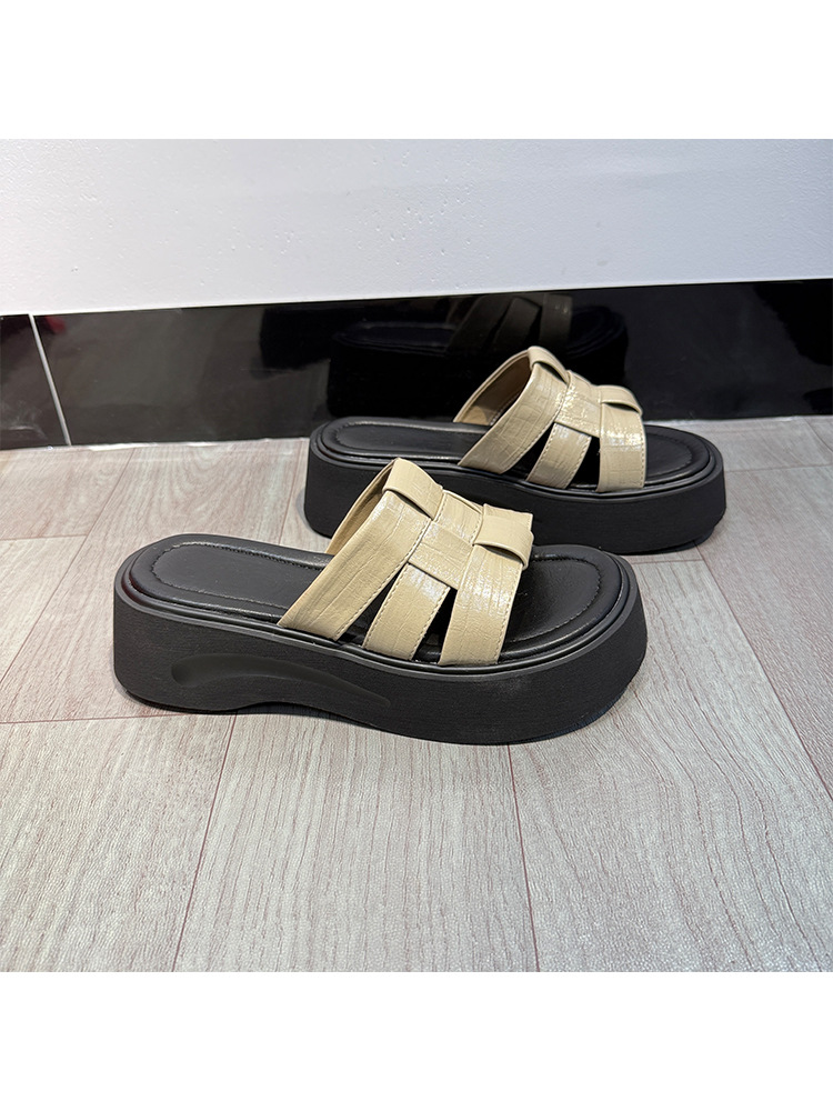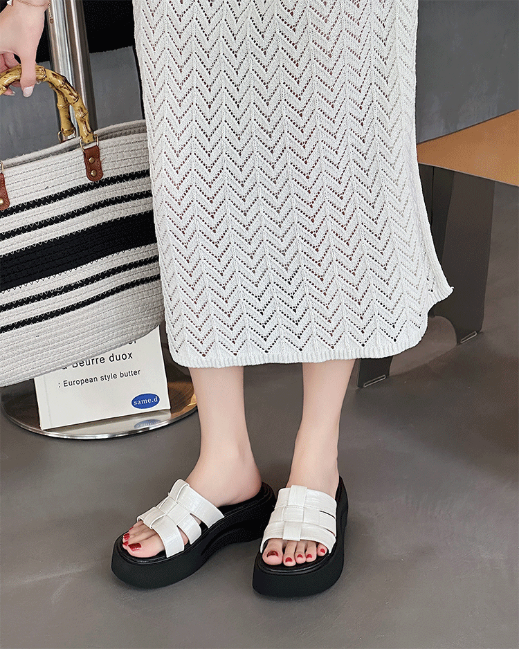 두꺼운 밑창 고층 슬리퍼 여성 여름 2025 새로운 휴가 스타일 스커트 비치 샌들 빵 슬리퍼스토어 가기