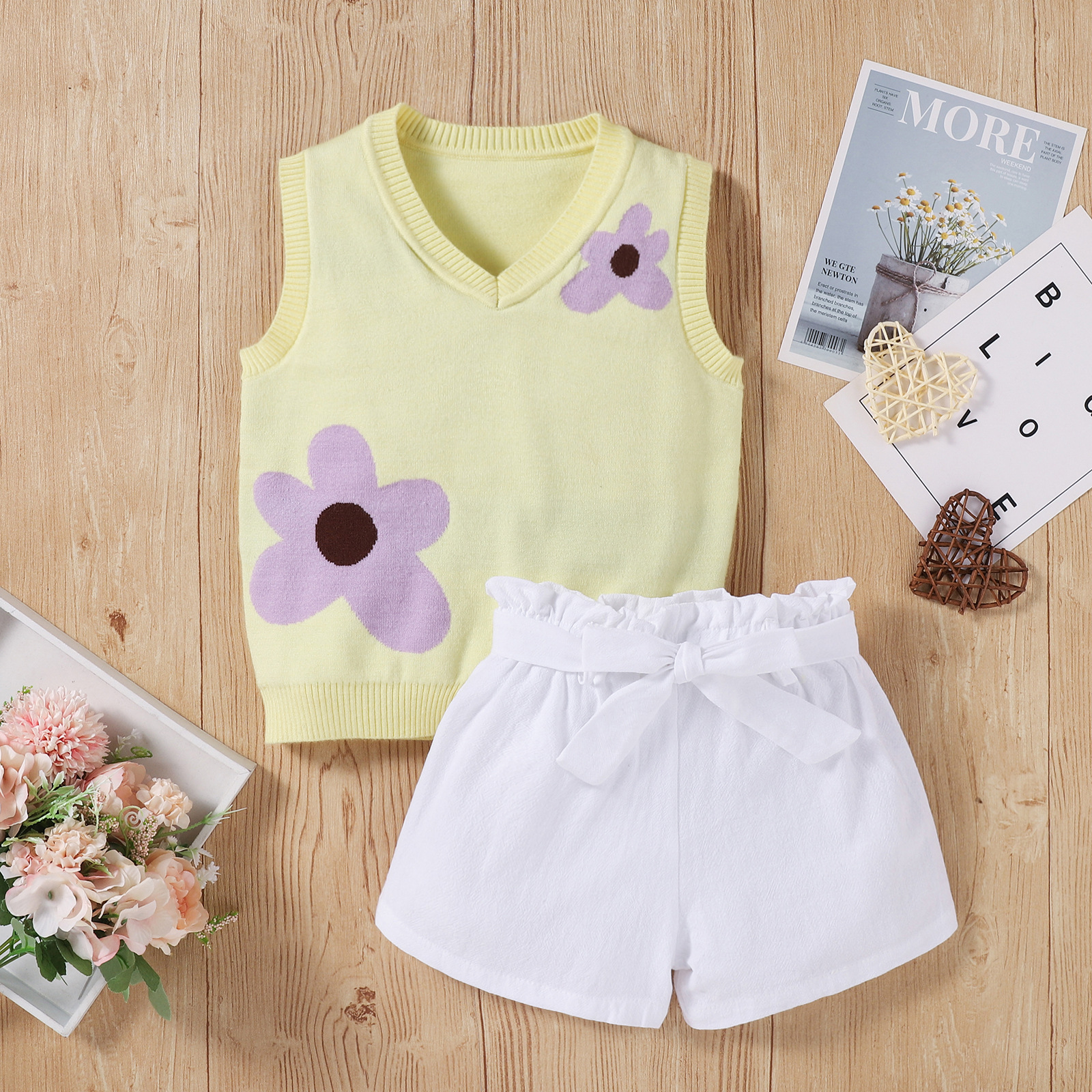 아동 의류 여름 새 여자 아기 귀여운 모직 조끼 프릴 어린이 반바지 정장