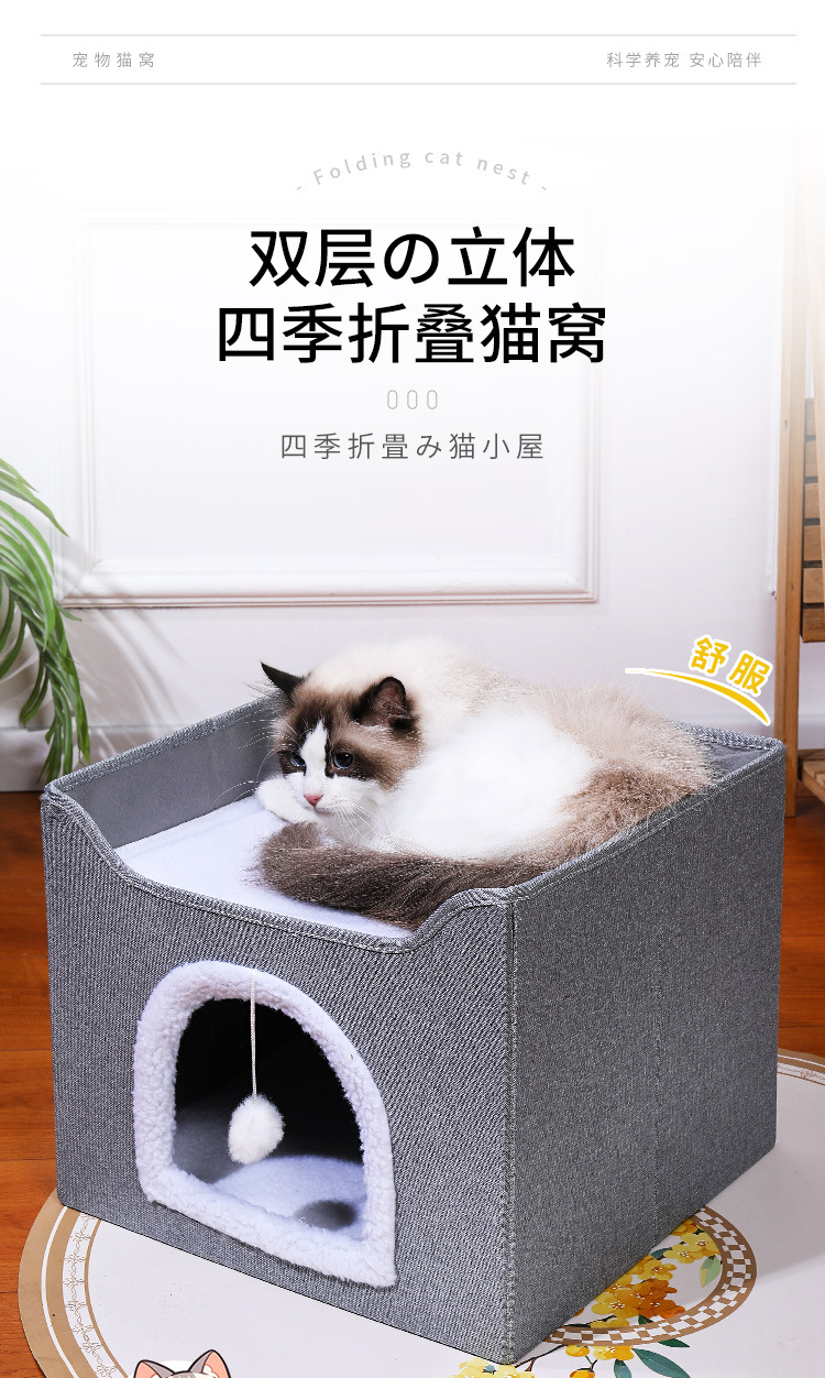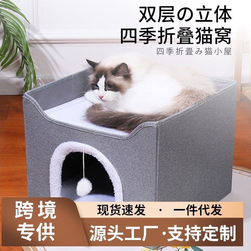 사계절 내내 인기 있는 고양이 개집, 접이식 이중층 애완동물 개집, 제조업체 도매 매트, 세탁 가능스토어 가기