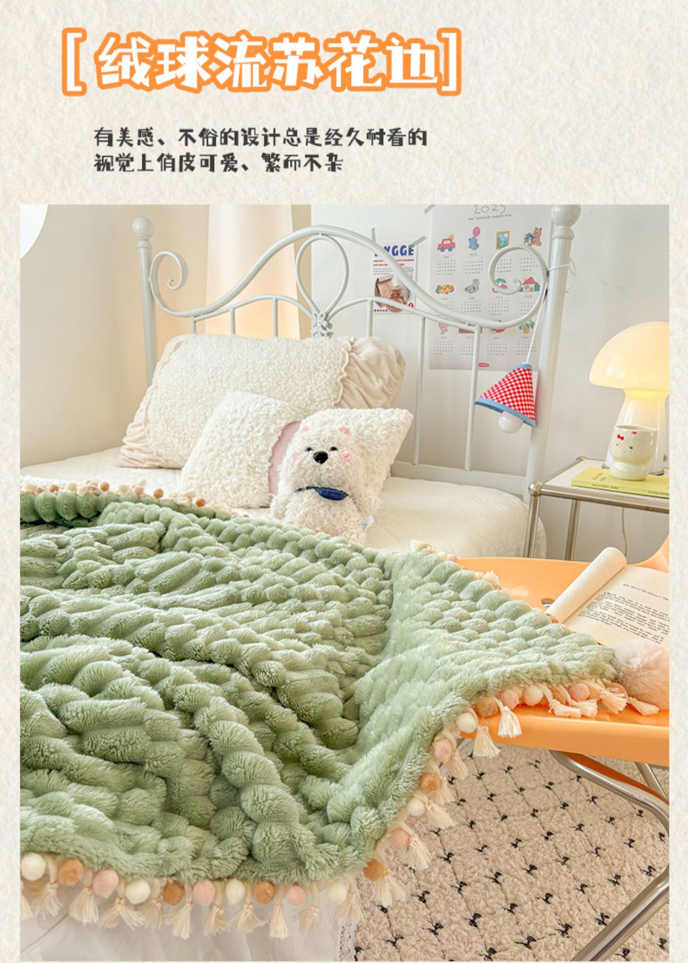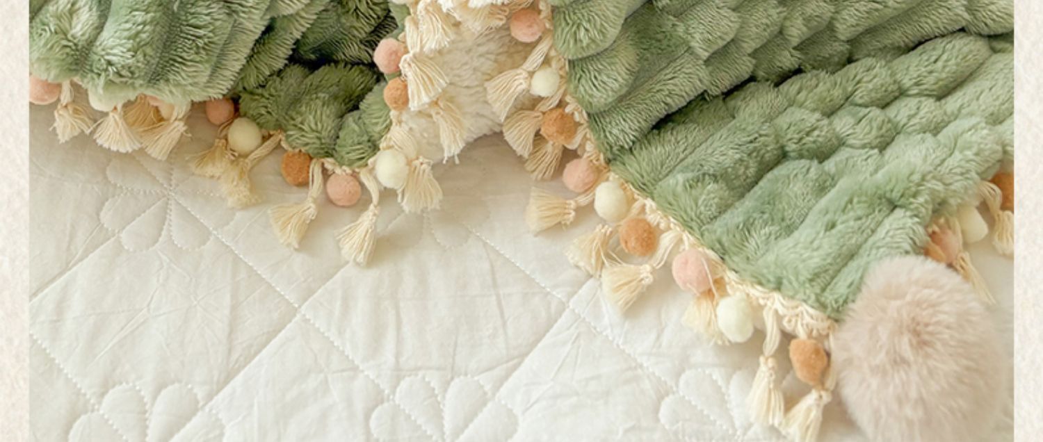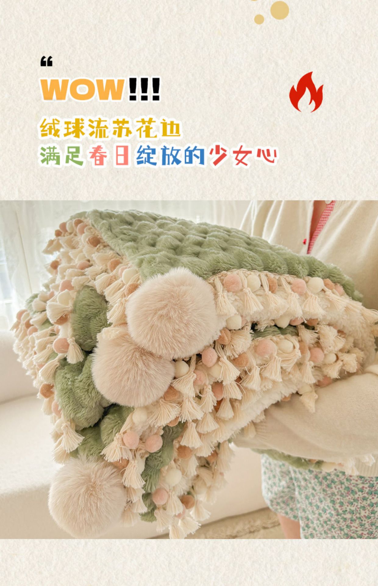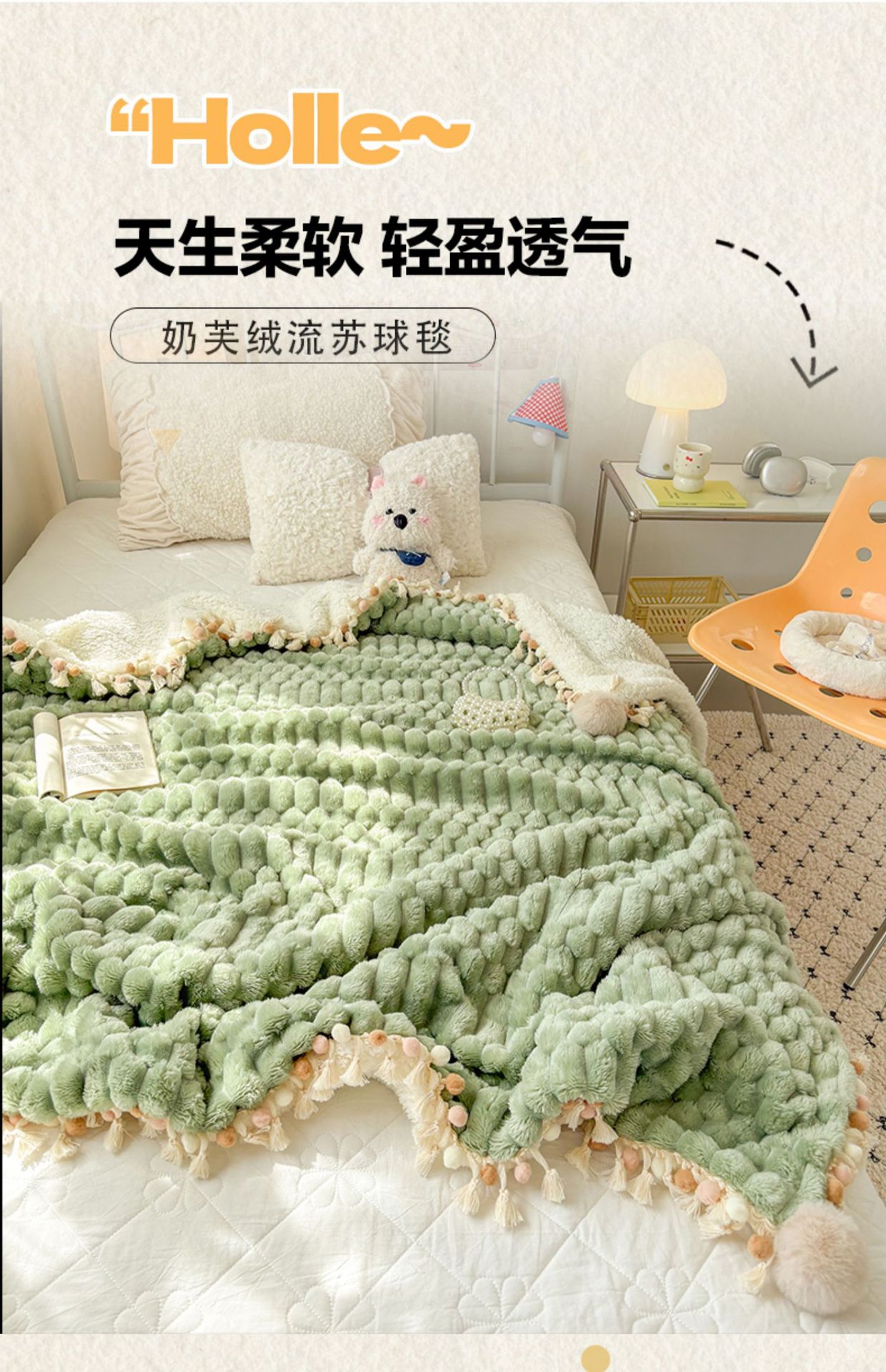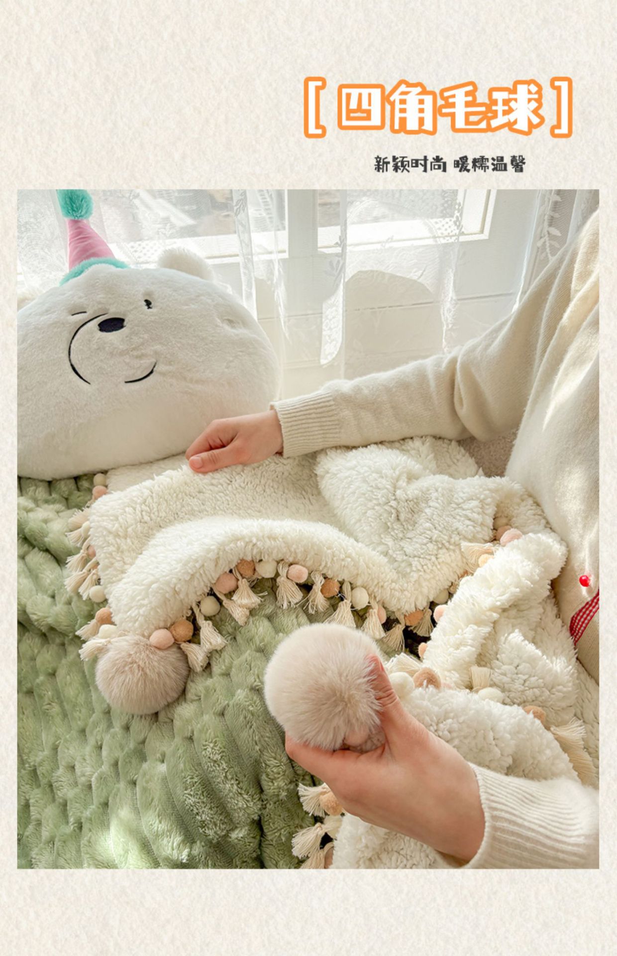 새로운 고중량 밀크 벨벳 태슬 볼 사각 모피 볼 레이스 담요 인터넷 연예인 스타일 솔리드 컬러 간단한 에어컨 담요 커버 담요스토어 가기
