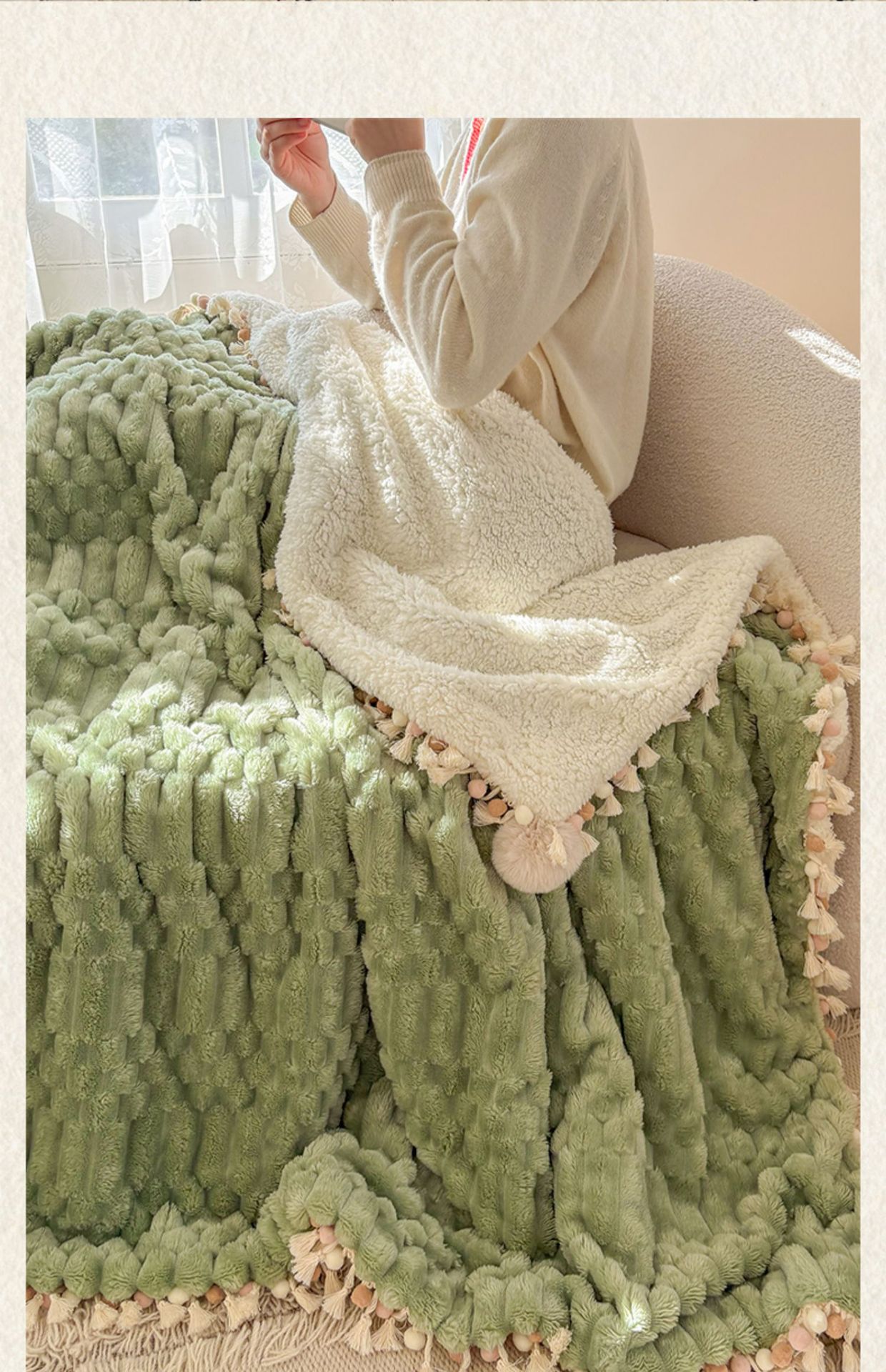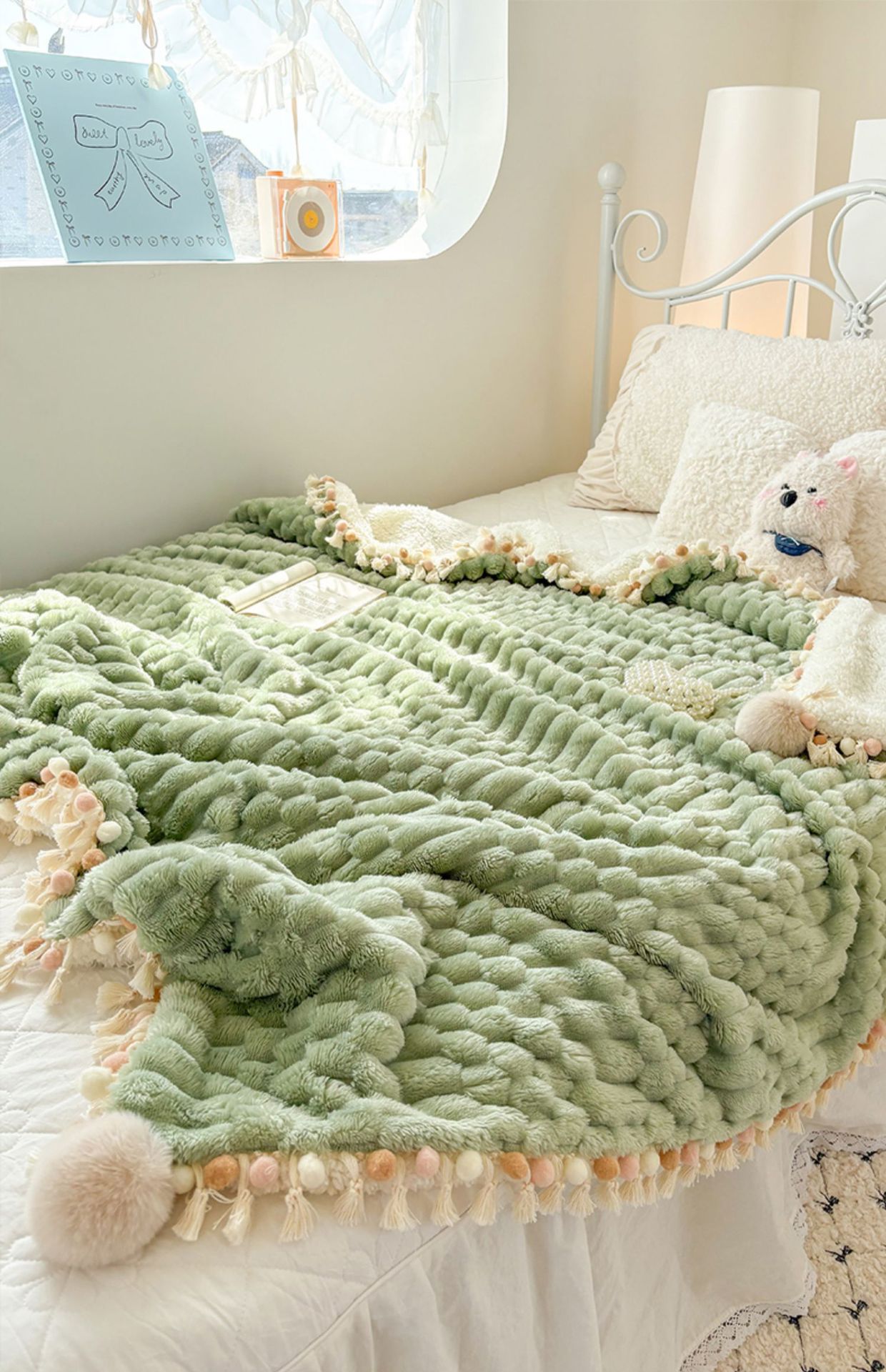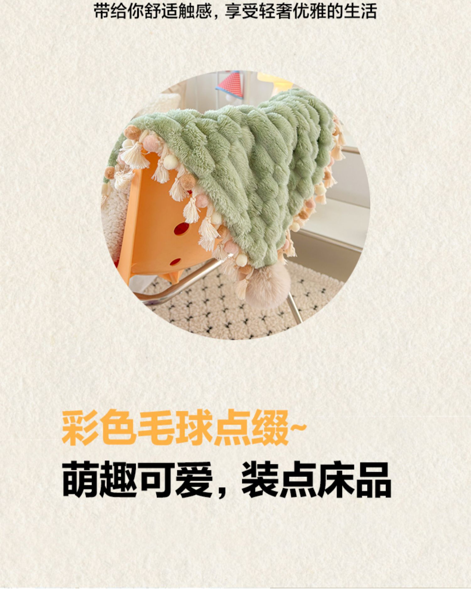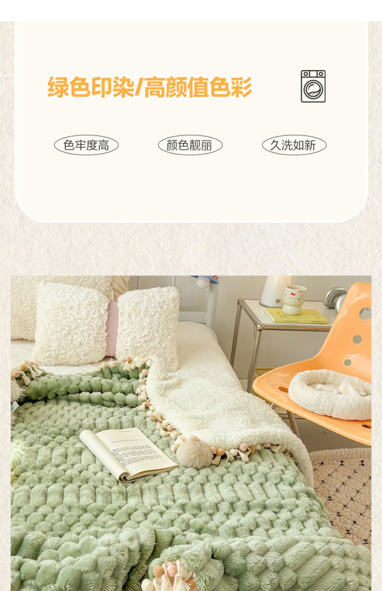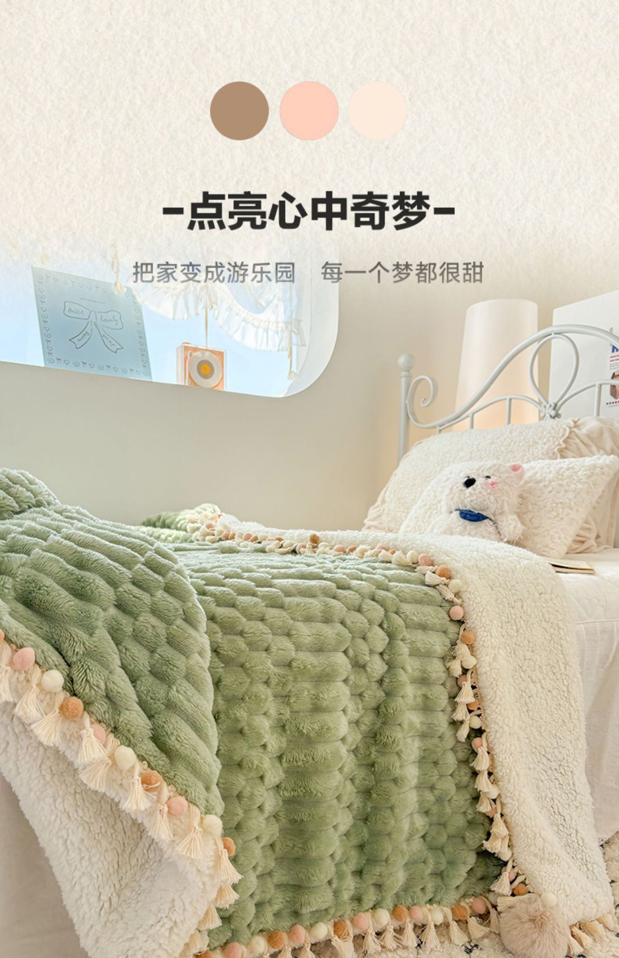 새로운 고중량 밀크 벨벳 태슬 볼 사각 모피 볼 레이스 담요 인터넷 연예인 스타일 솔리드 컬러 간단한 에어컨 담요 커버 담요스토어 가기