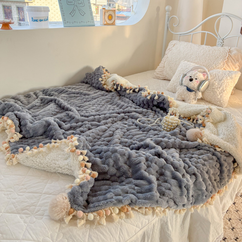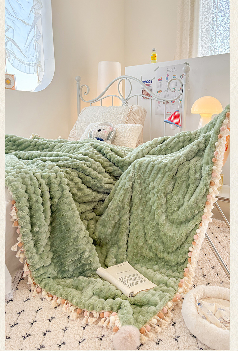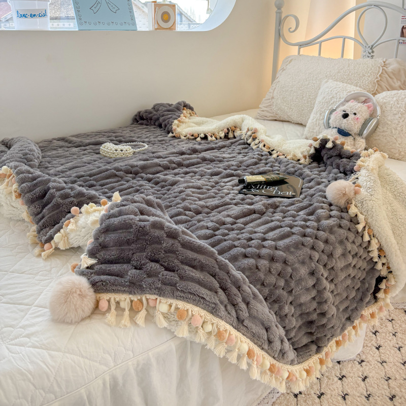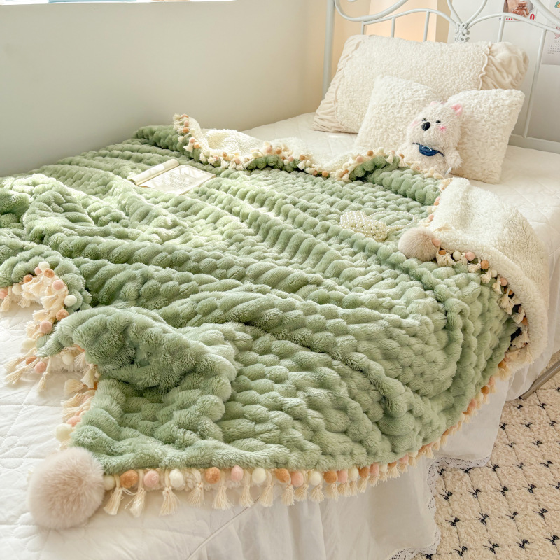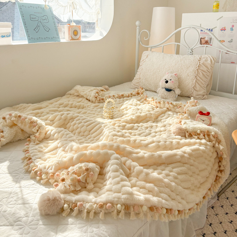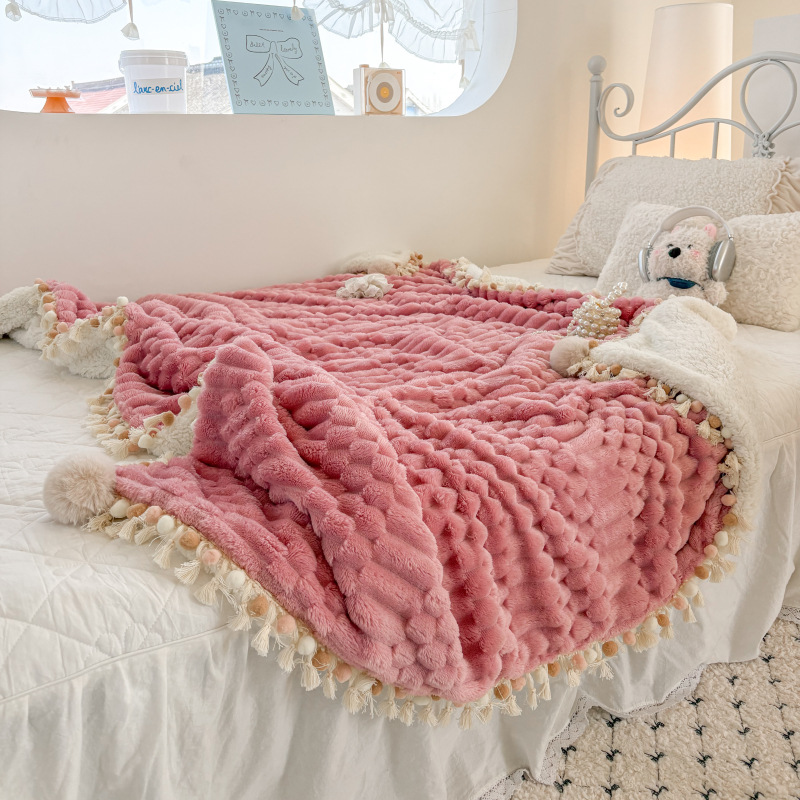 새로운 고중량 밀크 벨벳 태슬 볼 사각 모피 볼 레이스 담요 인터넷 연예인 스타일 솔리드 컬러 간단한 에어컨 담요 커버 담요