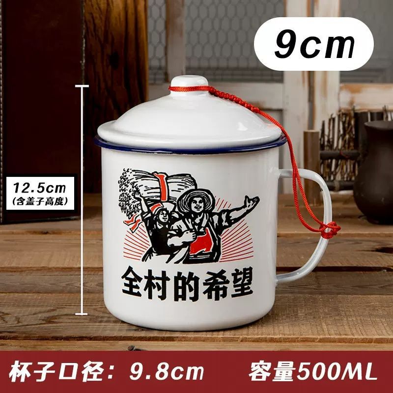 클래식 향수 에나멜 컵 아이언 티 탱크 뚜껑 대형 오피스 호텔 꽃과 함께 구식 더블 행복 웨딩 워터 컵