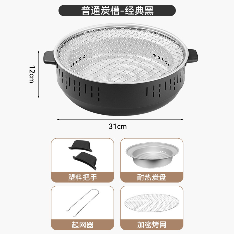 • [클래식 블랙] 플라스틱 손잡이 - 일반 카본탱크 + 프라이팬 + 밀짚매트 + 수납가방