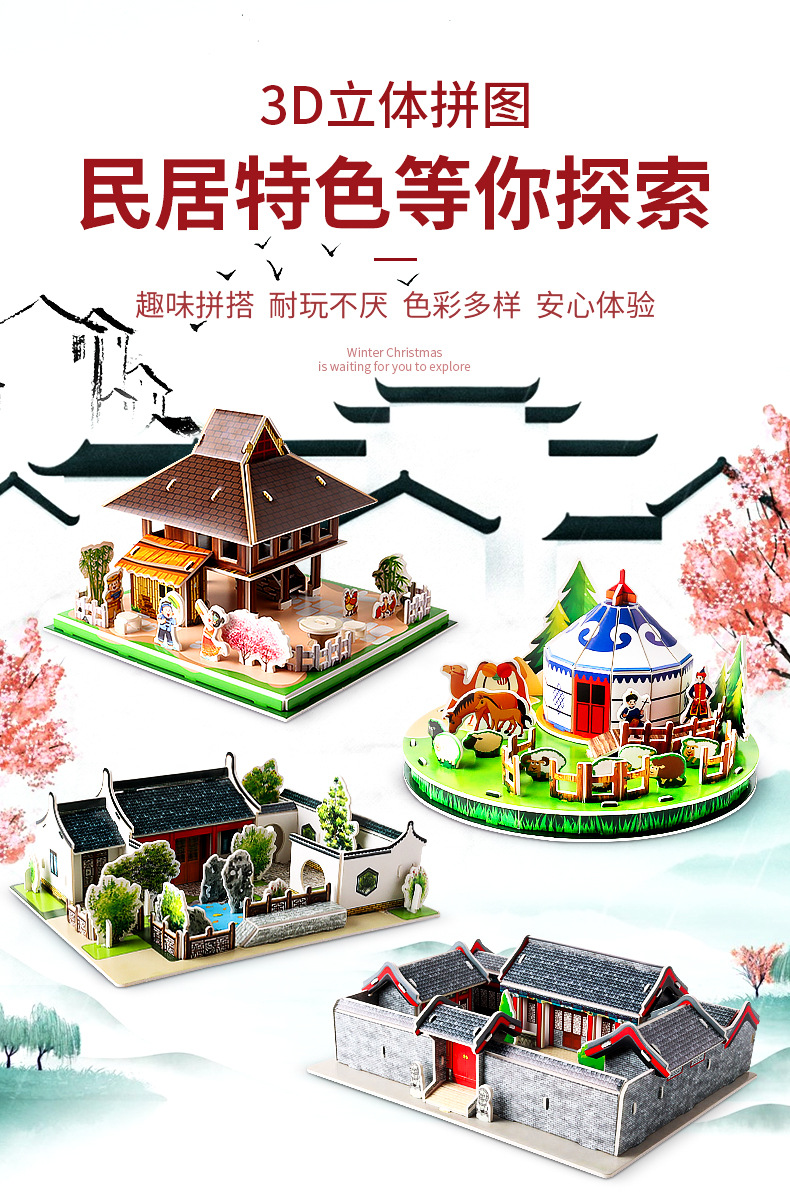 제조업체 어린이 3D 스테레오 퍼즐 수제 DIY 교육 조기 교육 장난감 부모-어린이 대화 형 스티칭 및 삽입 장난감스토어 가기