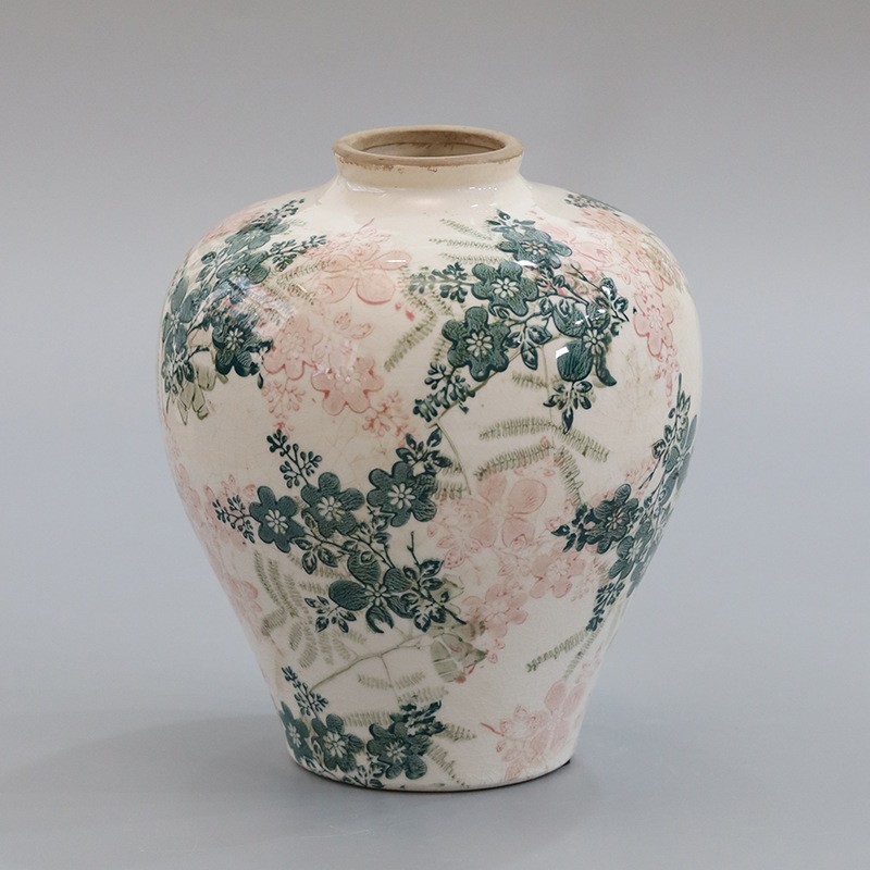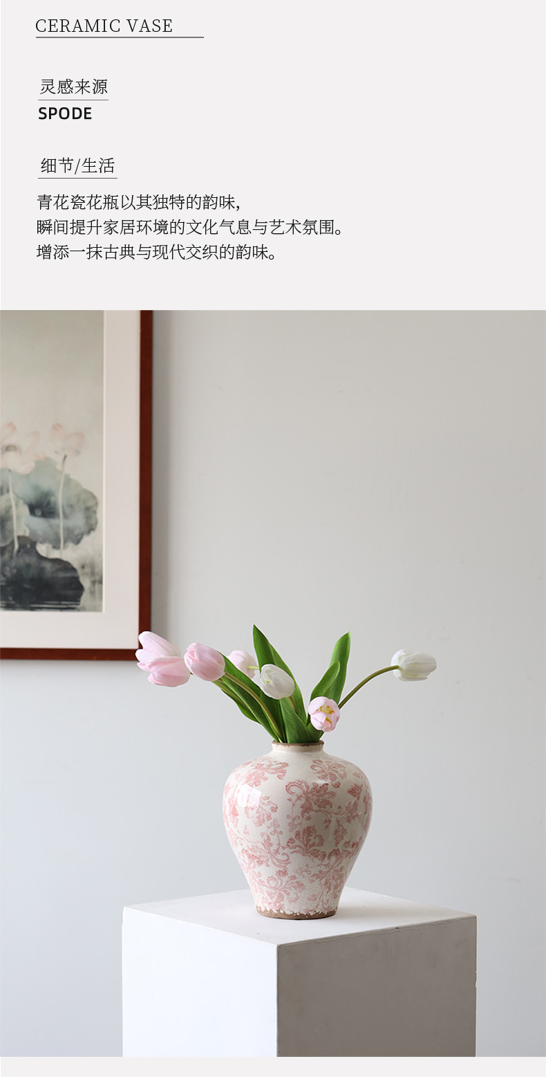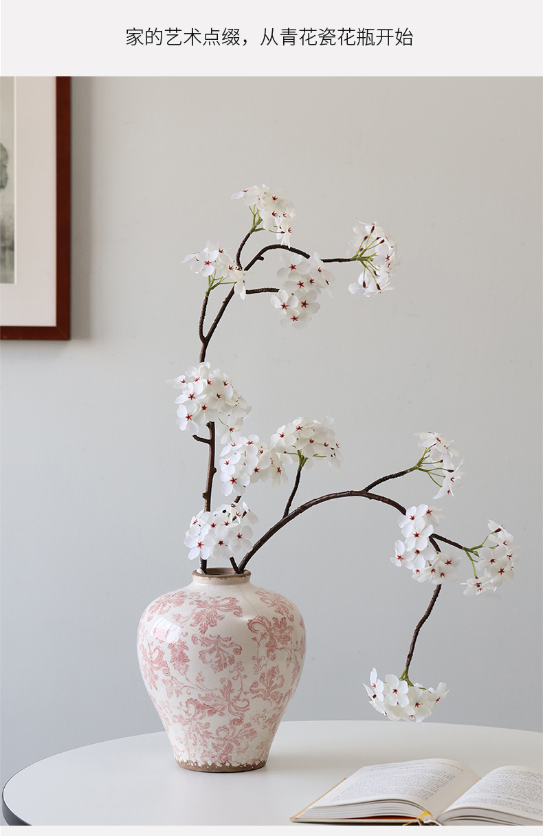 Bestwest 골동품 중국 스타일 파란색과 흰색 도자기 파손 패턴 세라믹 꽃병 거실 입구 장식 호텔 샘플