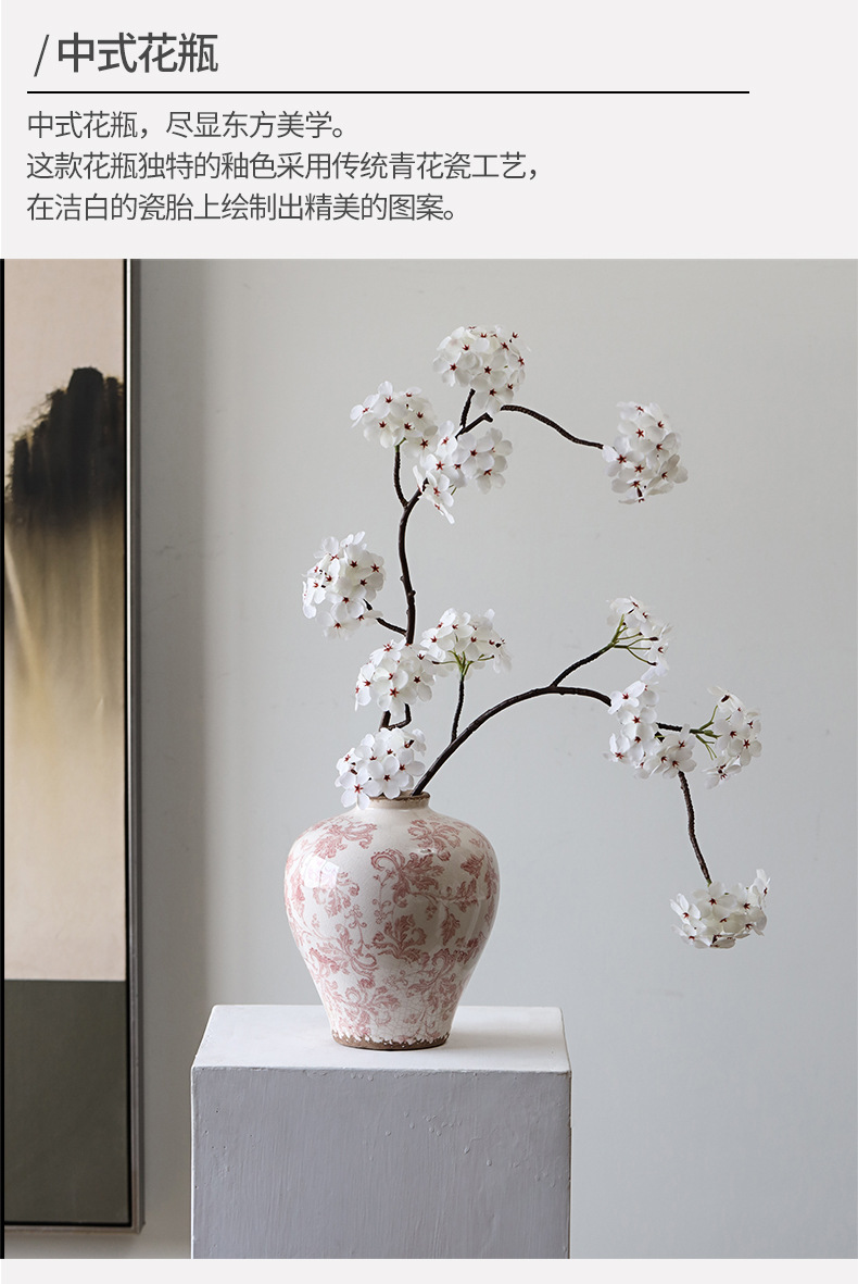 Bestwest 골동품 중국 스타일 파란색과 흰색 도자기 파손 패턴 세라믹 꽃병 거실 입구 장식 호텔 샘플스토어 가기