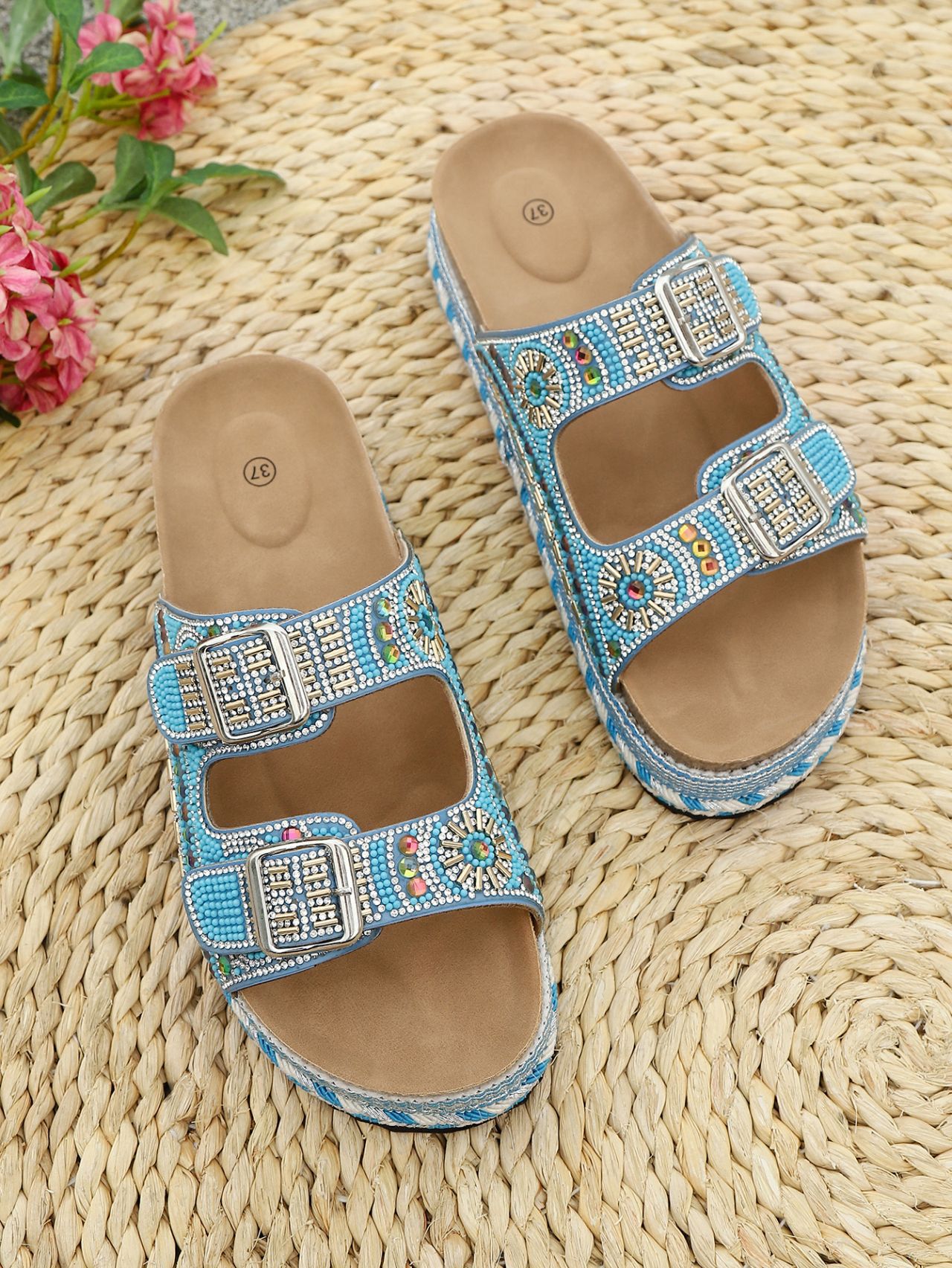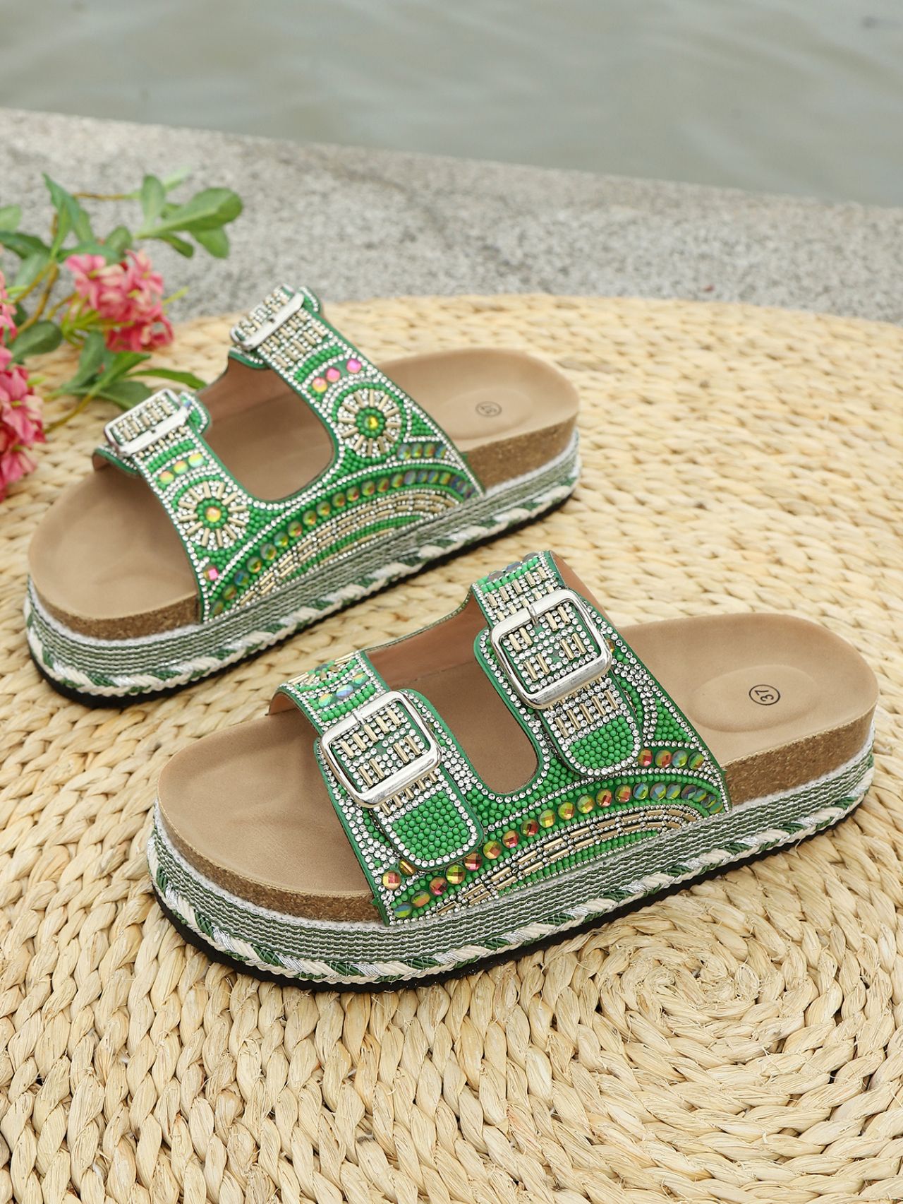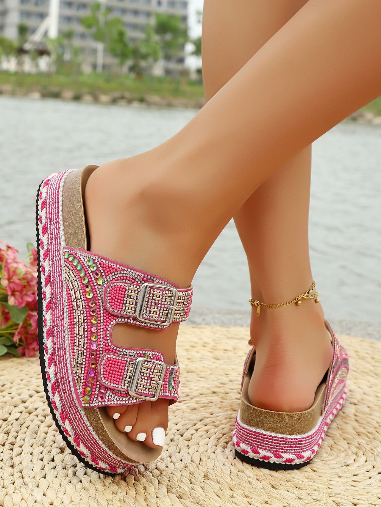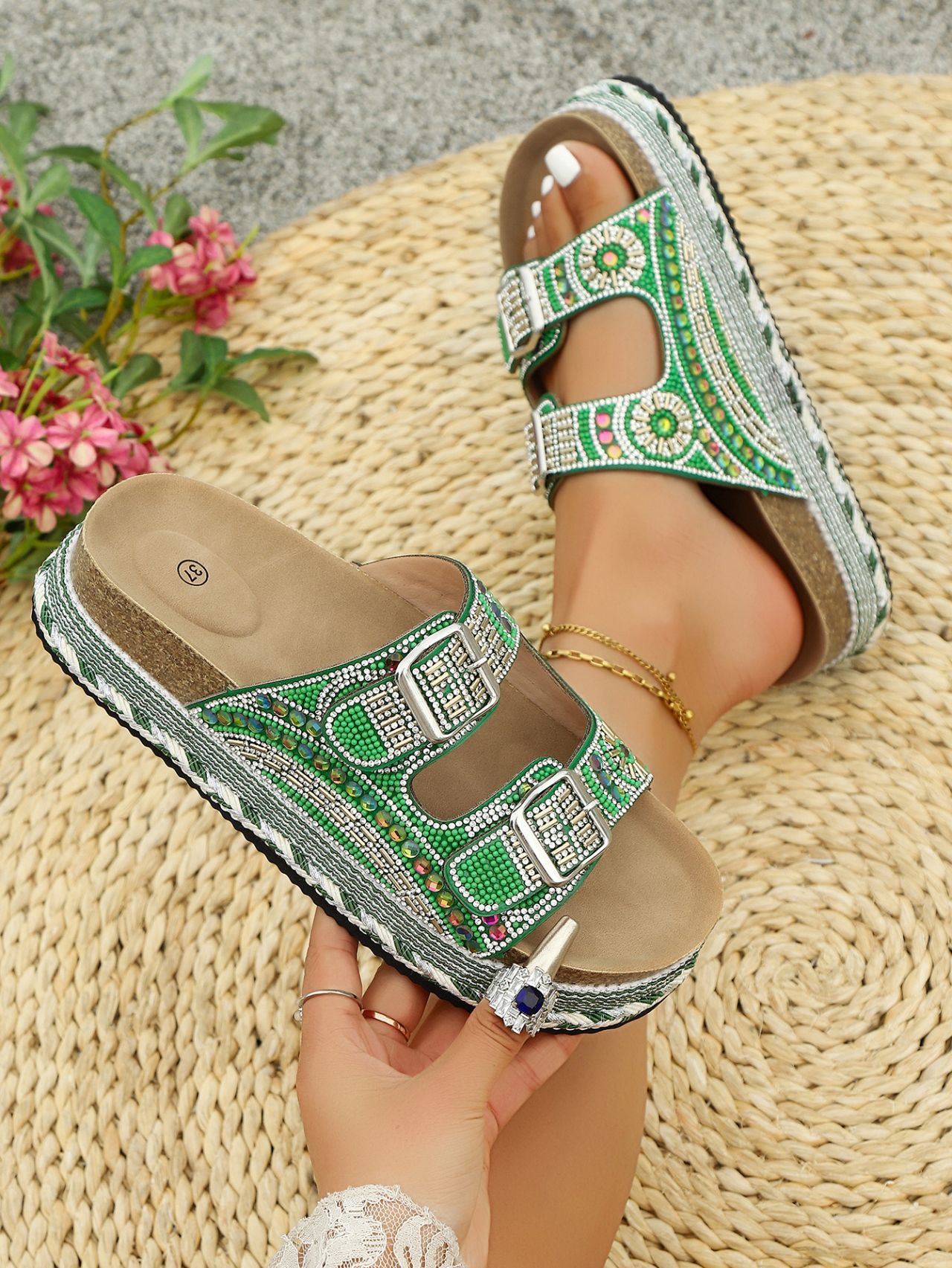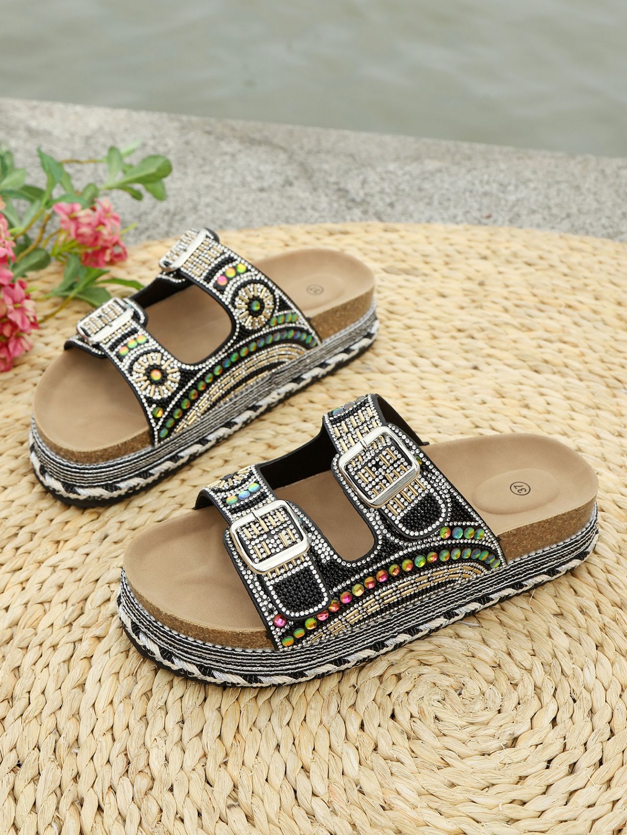 여름 모조 다이아몬드 머핀 유럽과 미국의 대외 무역 두꺼운 밑창 슬리퍼 2025 새로운 겉옷 플러스 사이즈 벨트 버클 샌들 여성 43