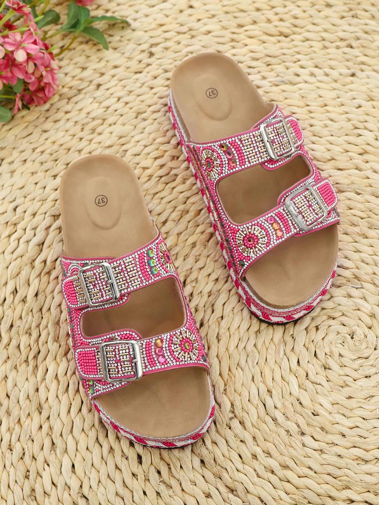 여름 모조 다이아몬드 머핀 유럽과 미국의 대외 무역 두꺼운 밑창 슬리퍼 2025 새로운 겉옷 플러스 사이즈 벨트 버클 샌들 여성 43스토어 가기