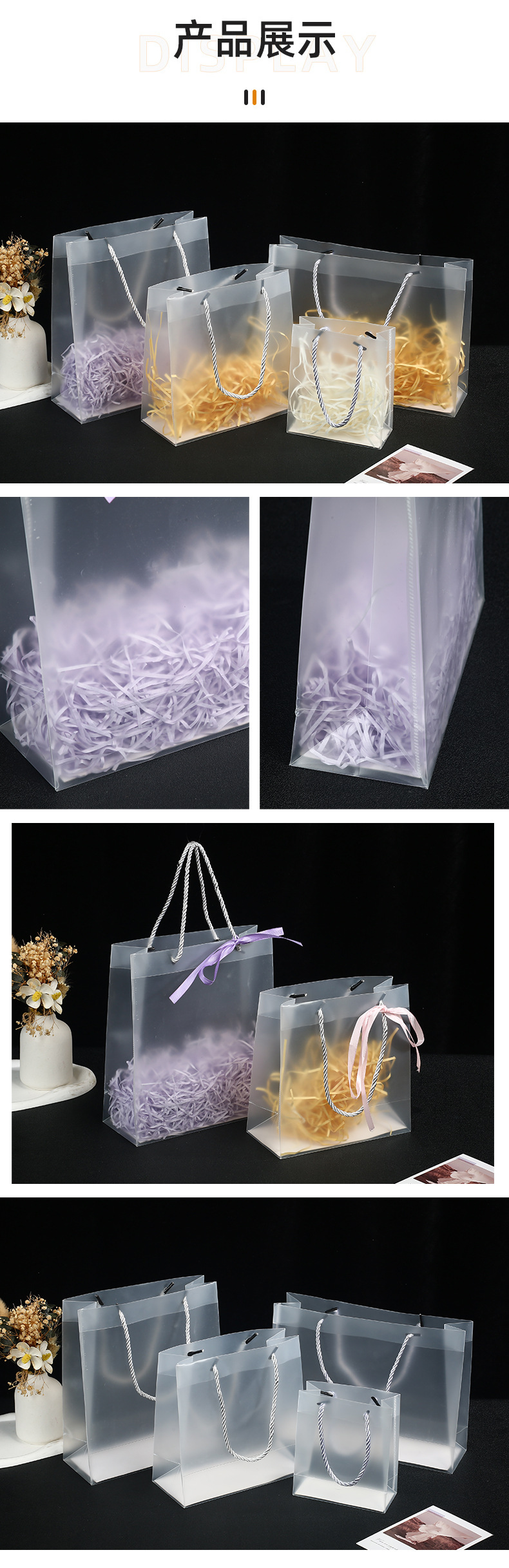 반투명 pp 핸드백 pvc 투명 비닐 봉투 선물 의류 쇼핑 포장 가방 결혼 선물 가방