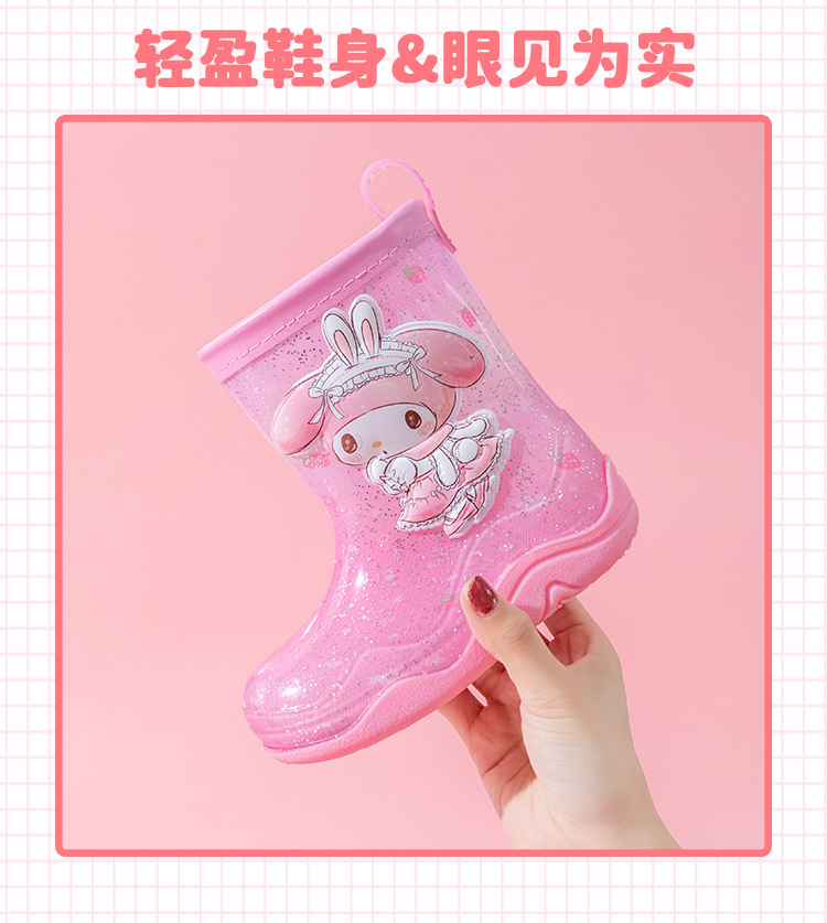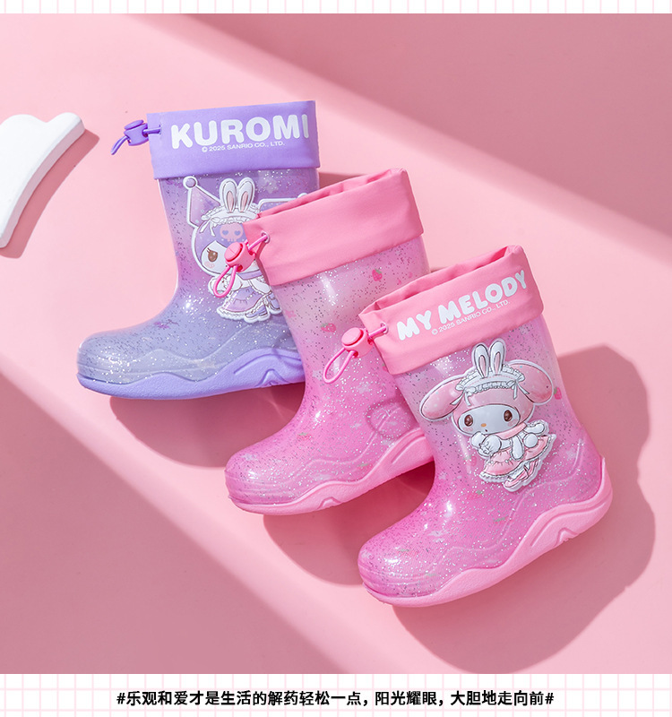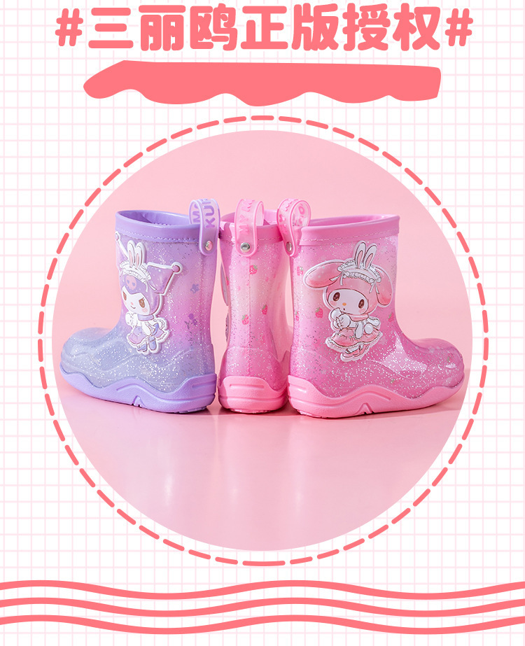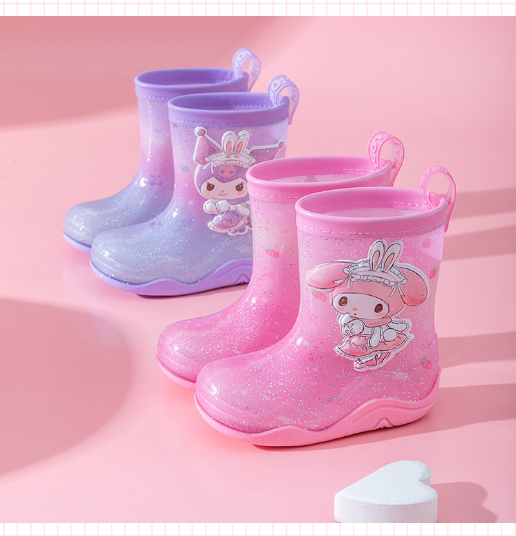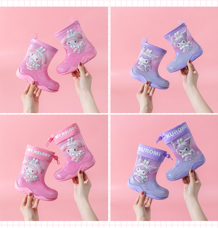 Sanrio Streamer 스팽글 어린이 장화 소녀 Kuromi 야외 미끄럼 방지 만화 덧신 아기 젤리 장화