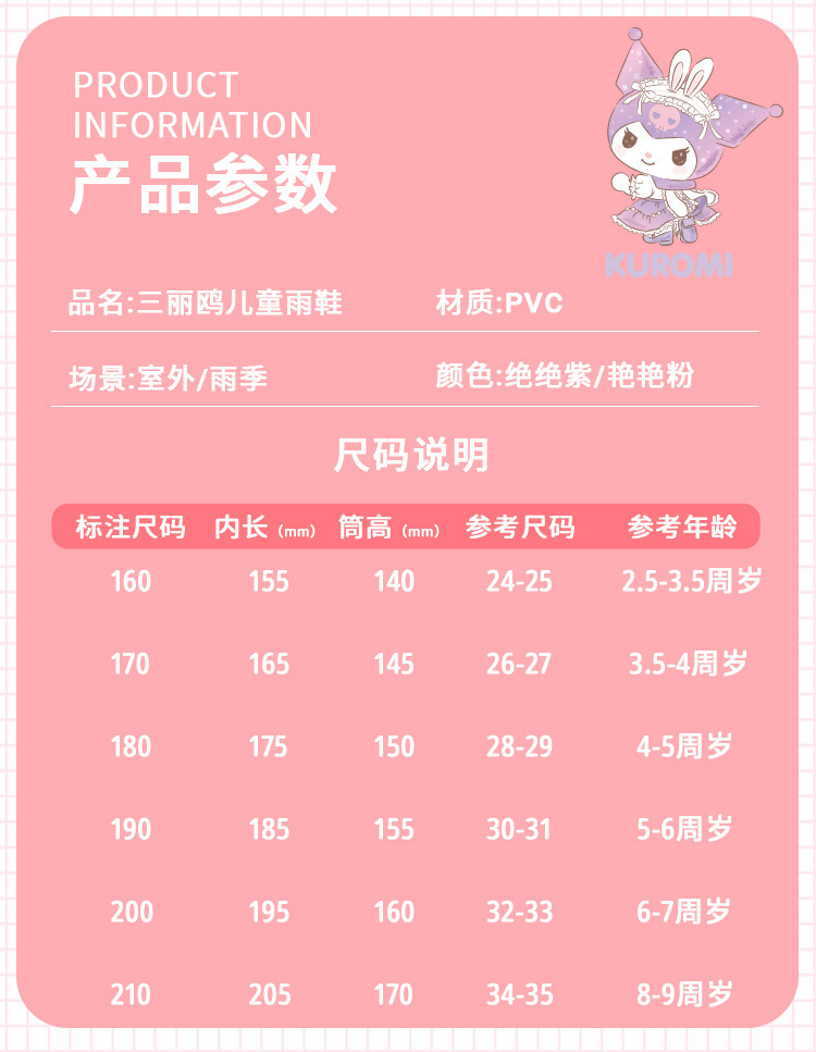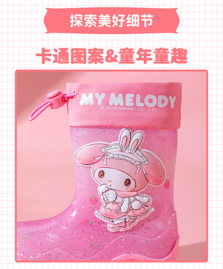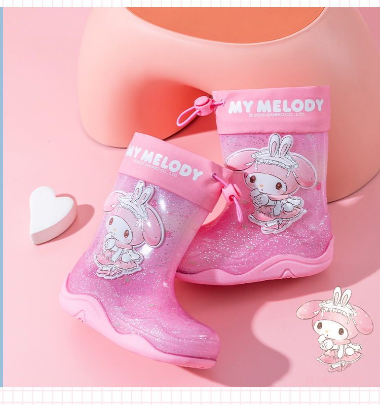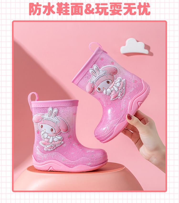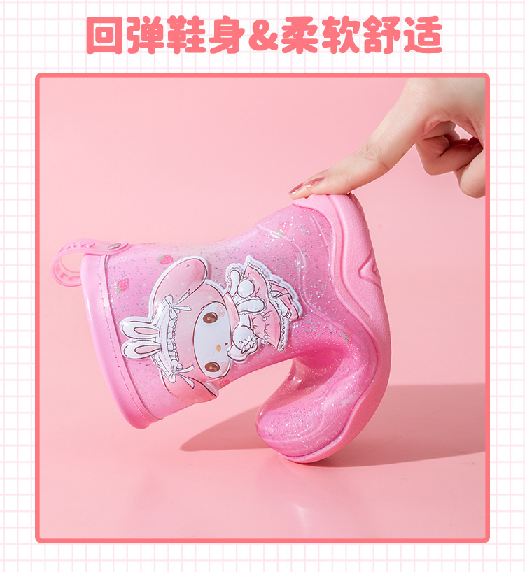 Sanrio Streamer 스팽글 어린이 장화 소녀 Kuromi 야외 미끄럼 방지 만화 덧신 아기 젤리 장화