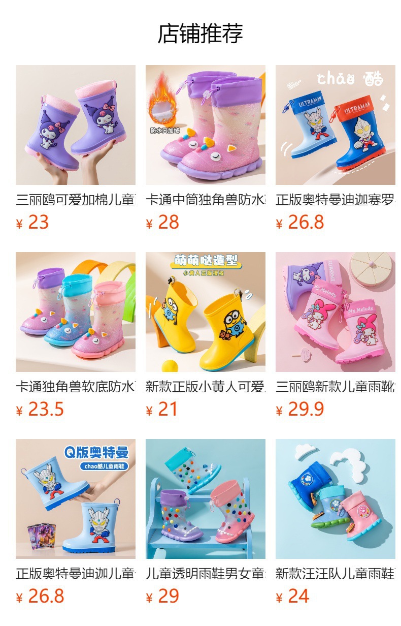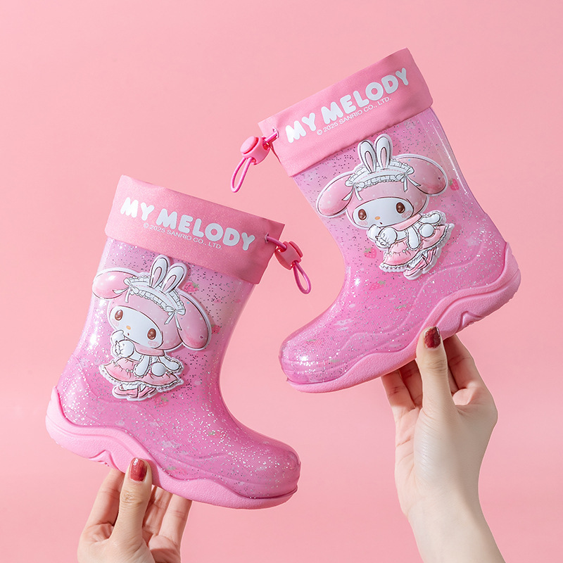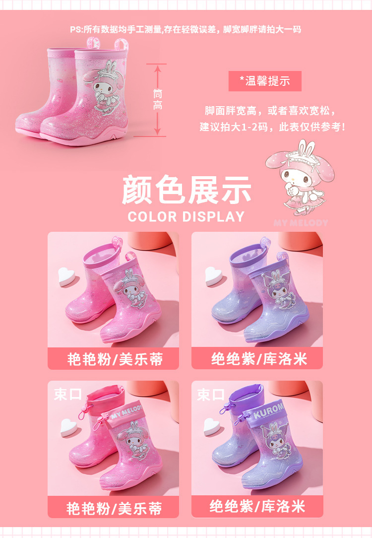 Sanrio Streamer 스팽글 어린이 장화 소녀 Kuromi 야외 미끄럼 방지 만화 덧신 아기 젤리 장화스토어 가기