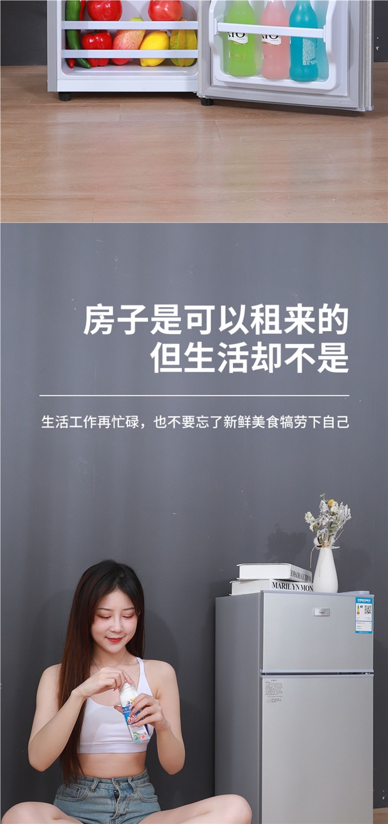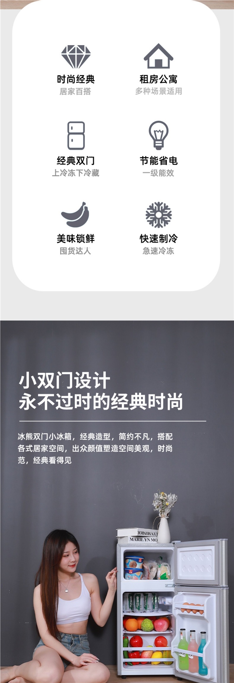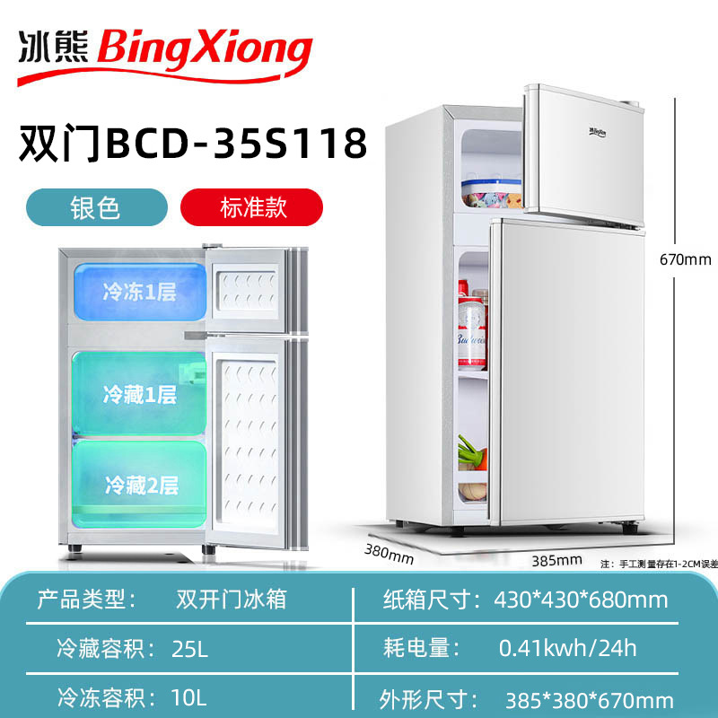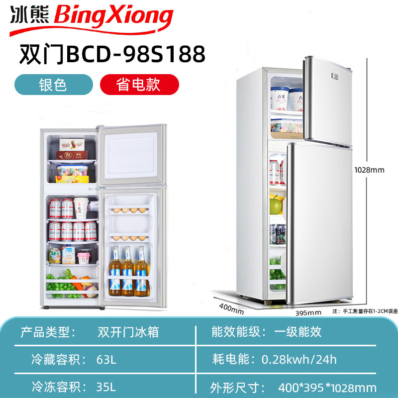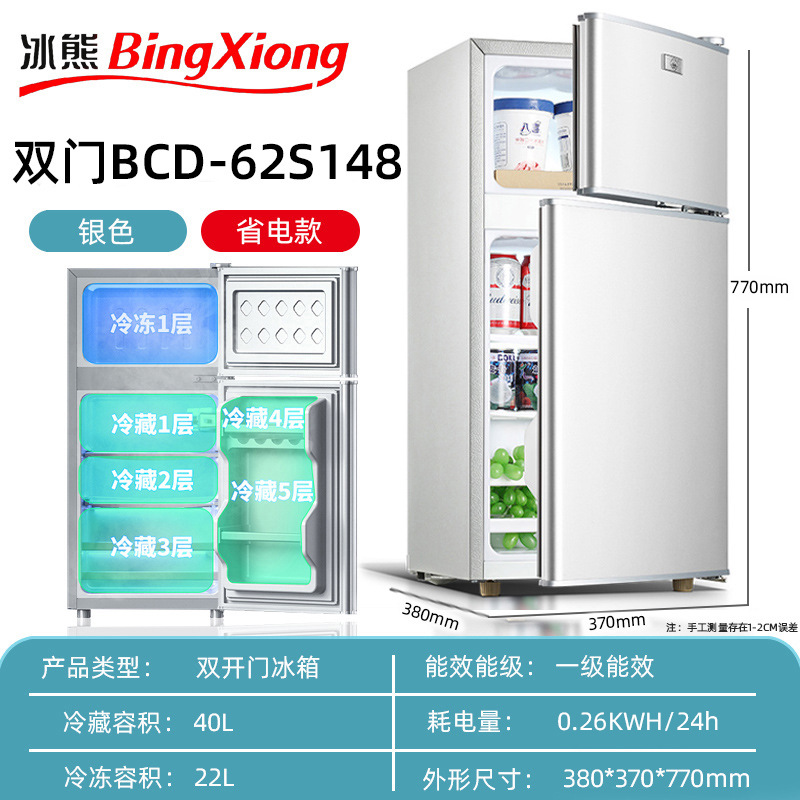 미니 냉장고 가정용 소형 기숙사 렌탈 룸 냉동 및 냉장 미니 더블 도어 냉장고 레벨 1 에너지 절약 및 절전스토어 가기