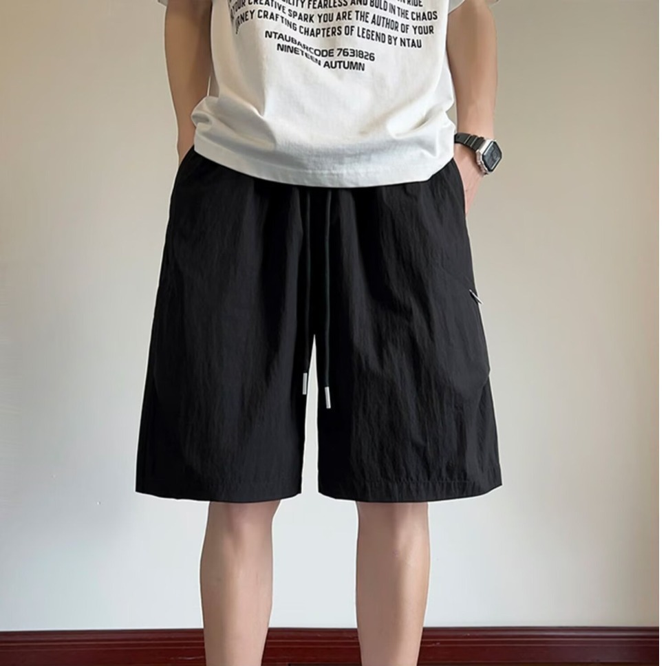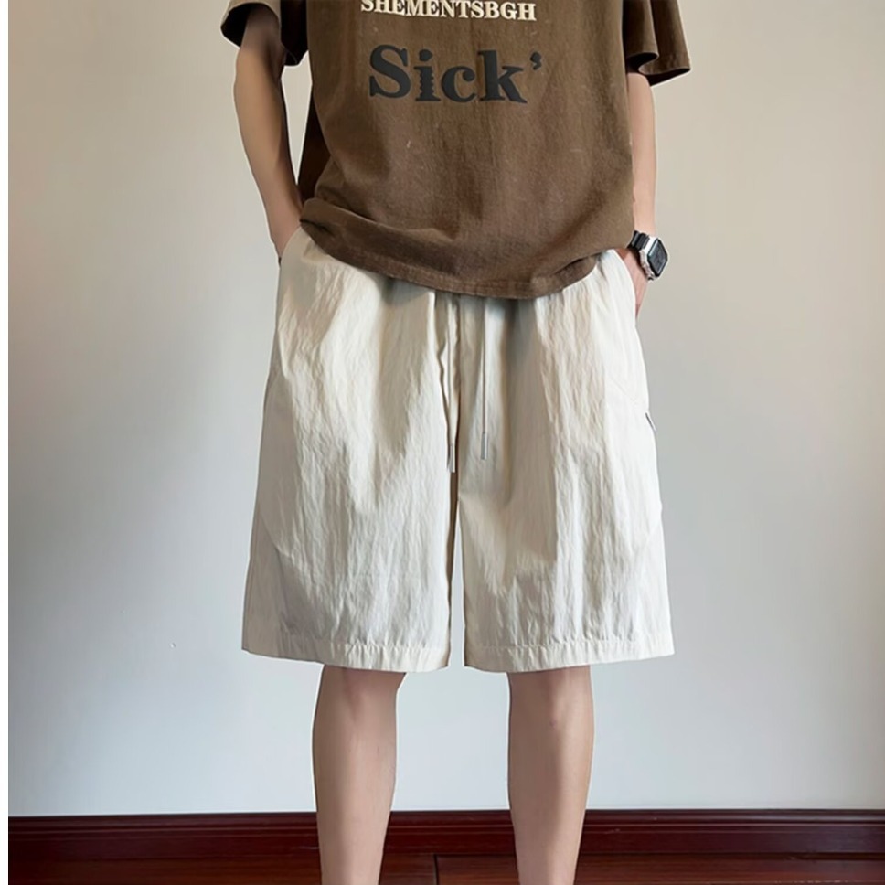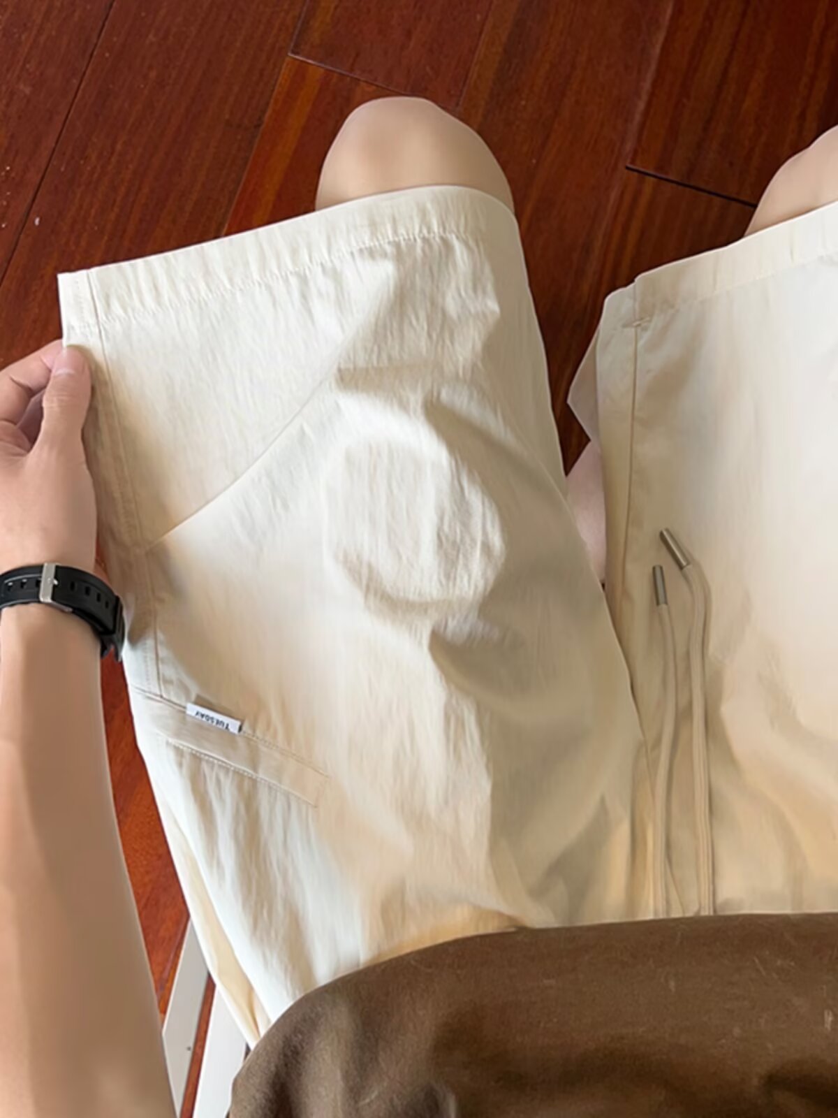 아이스 실크 플리츠 카고 반바지 남성 여름 트렌디 얇은 속건 루즈 대형 5점 드레이프 캐주얼 바지