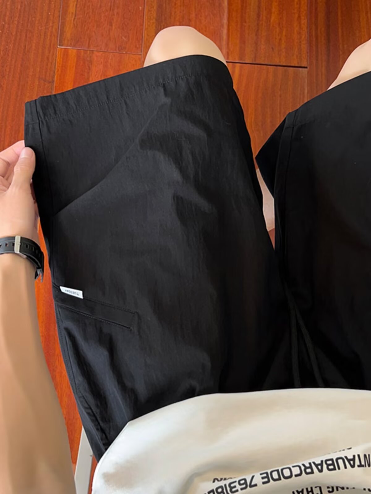 아이스 실크 플리츠 카고 반바지 남성 여름 트렌디 얇은 속건 루즈 대형 5점 드레이프 캐주얼 바지스토어 가기