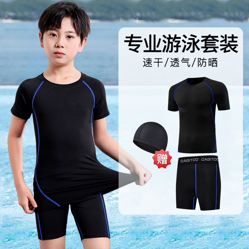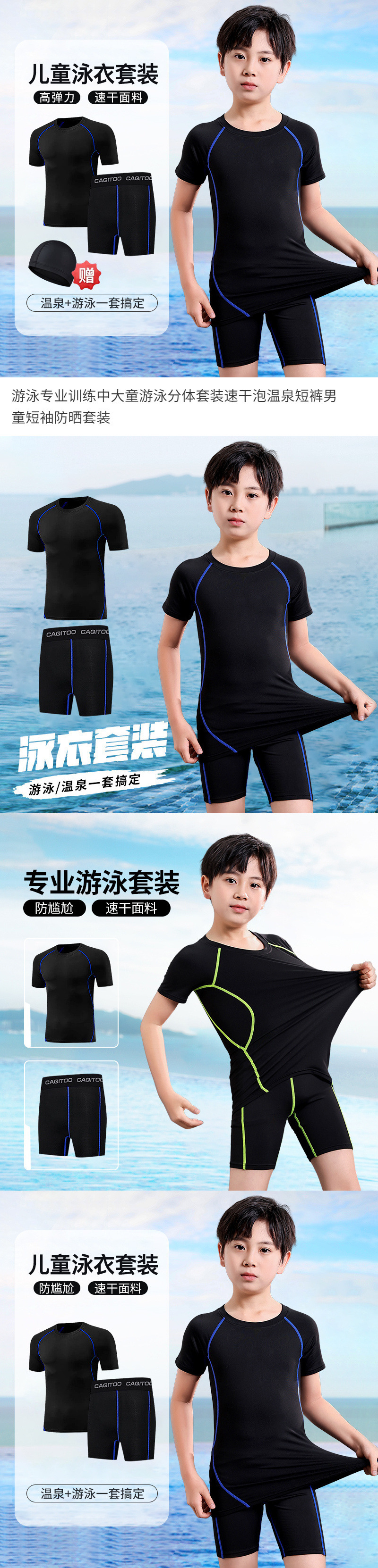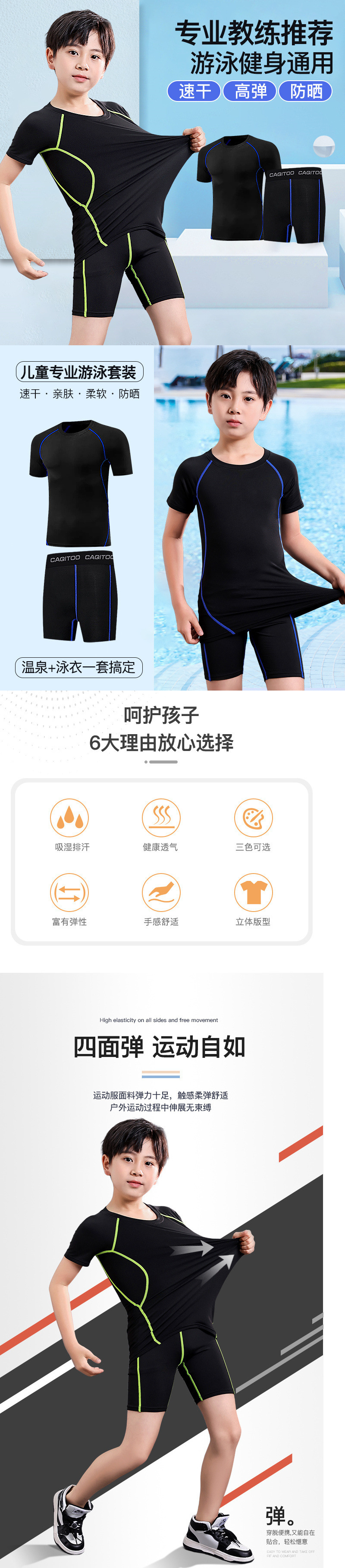 수영 전문 훈련, 큰 어린이 수영 스플릿 슈트, 속건성 온천 반바지, 소년 반팔 자외선 차단 슈트