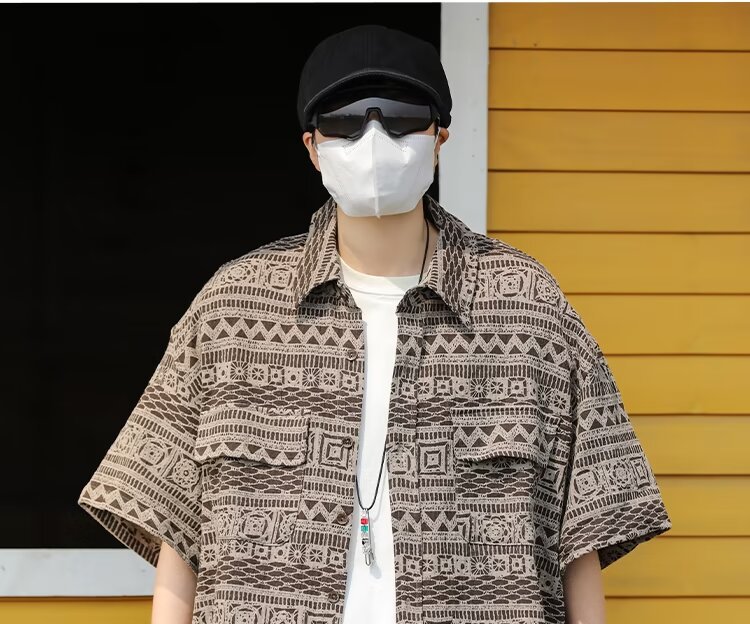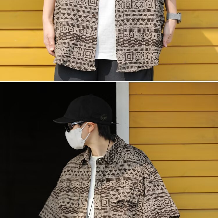 2024 레트로 셔츠 남성 여름 홍콩 스타일 학생 느슨한 틈새 디자인 재미있는 새로운 남성 탑 겉옷