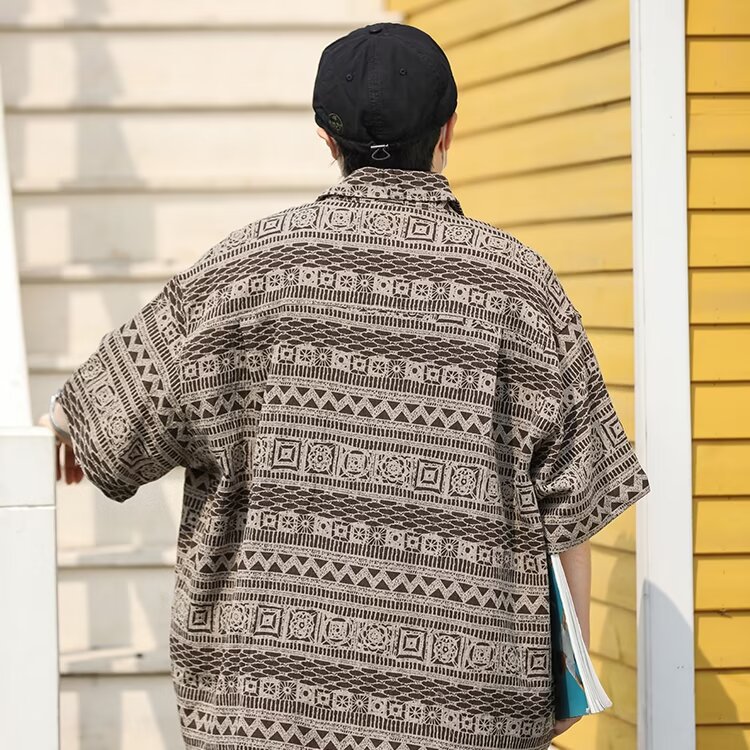 2024 레트로 셔츠 남성 여름 홍콩 스타일 학생 느슨한 틈새 디자인 재미있는 새로운 남성 탑 겉옷스토어 가기