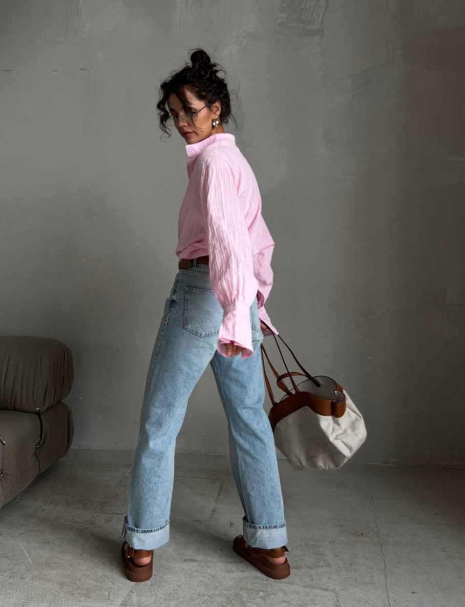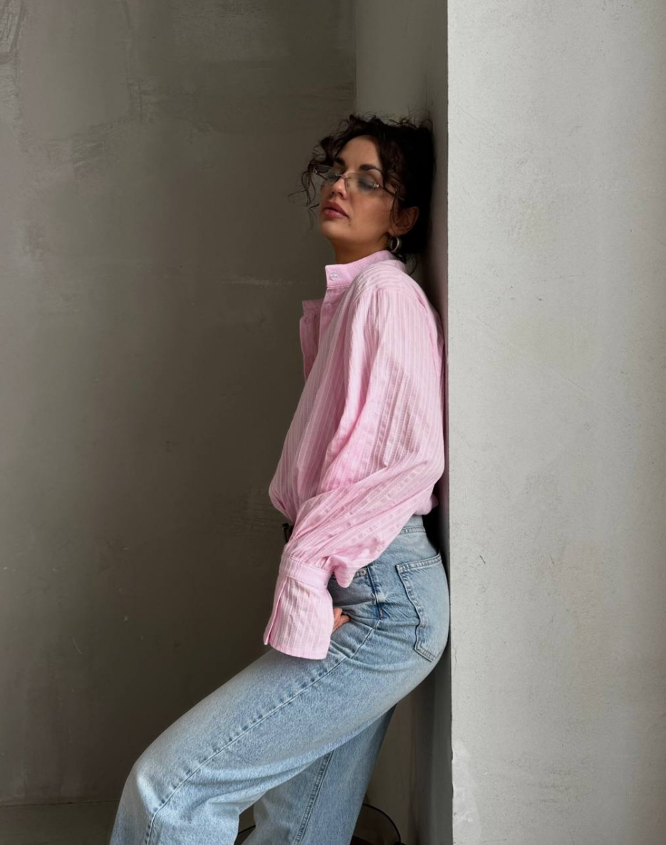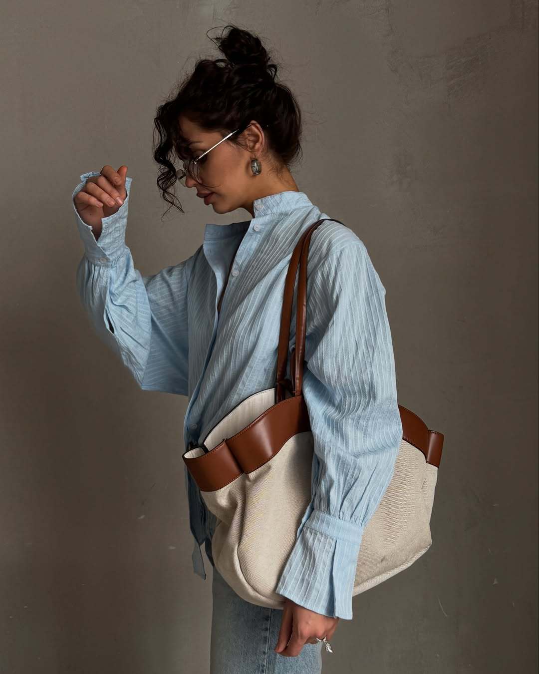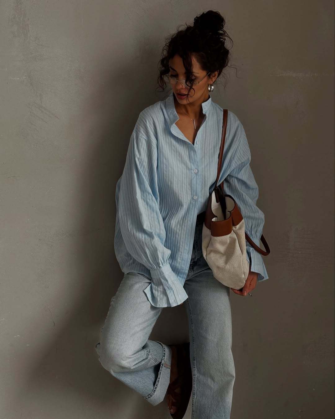 欧美春季新款提花蓝色衬衫上衣跨境简约高级感通勤街头长袖衬衣女
