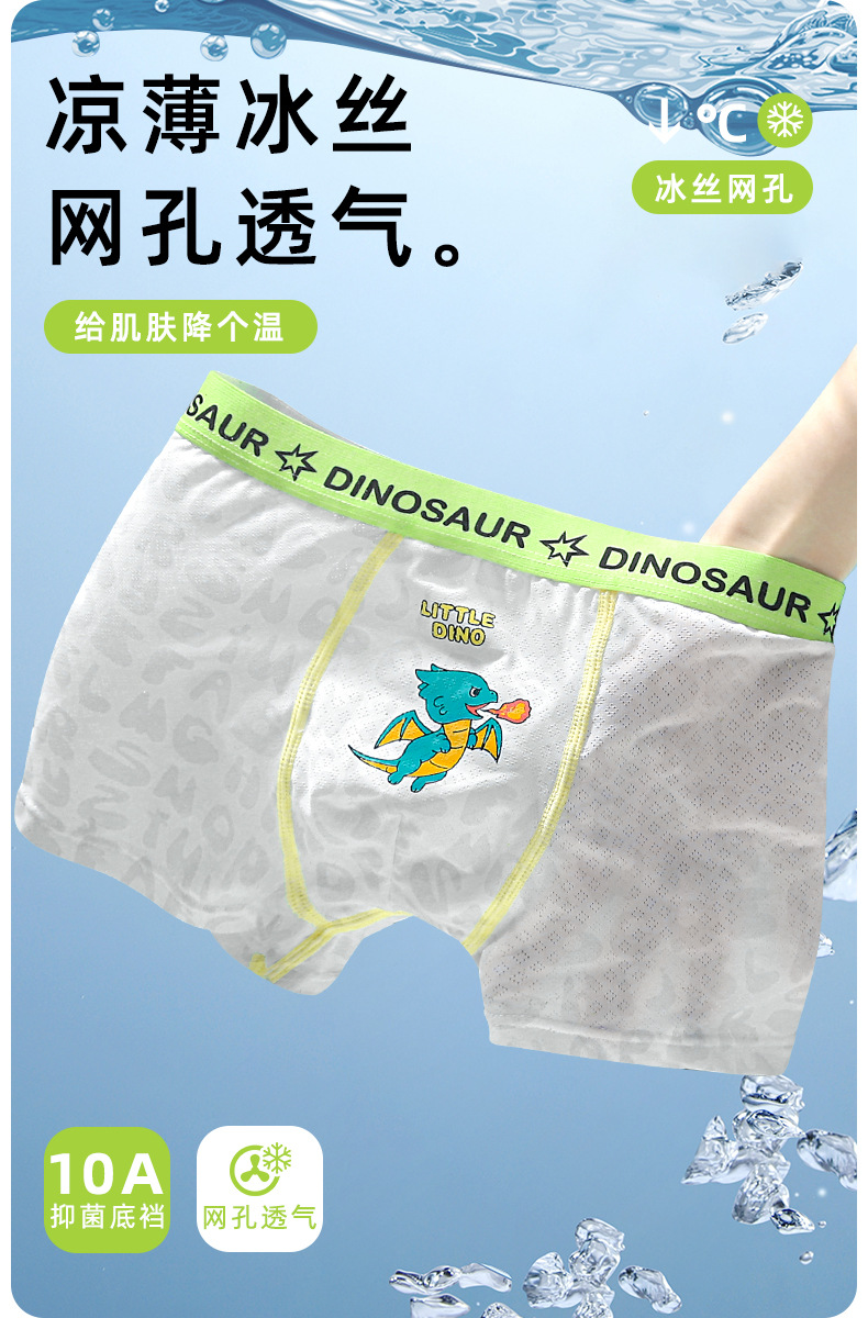 소년 속옷 얼음 실크 여름 어린이 복서 팬티 항균 메쉬 얇은 크고 작은 어린이 복서 반바지 소년 아기스토어 가기