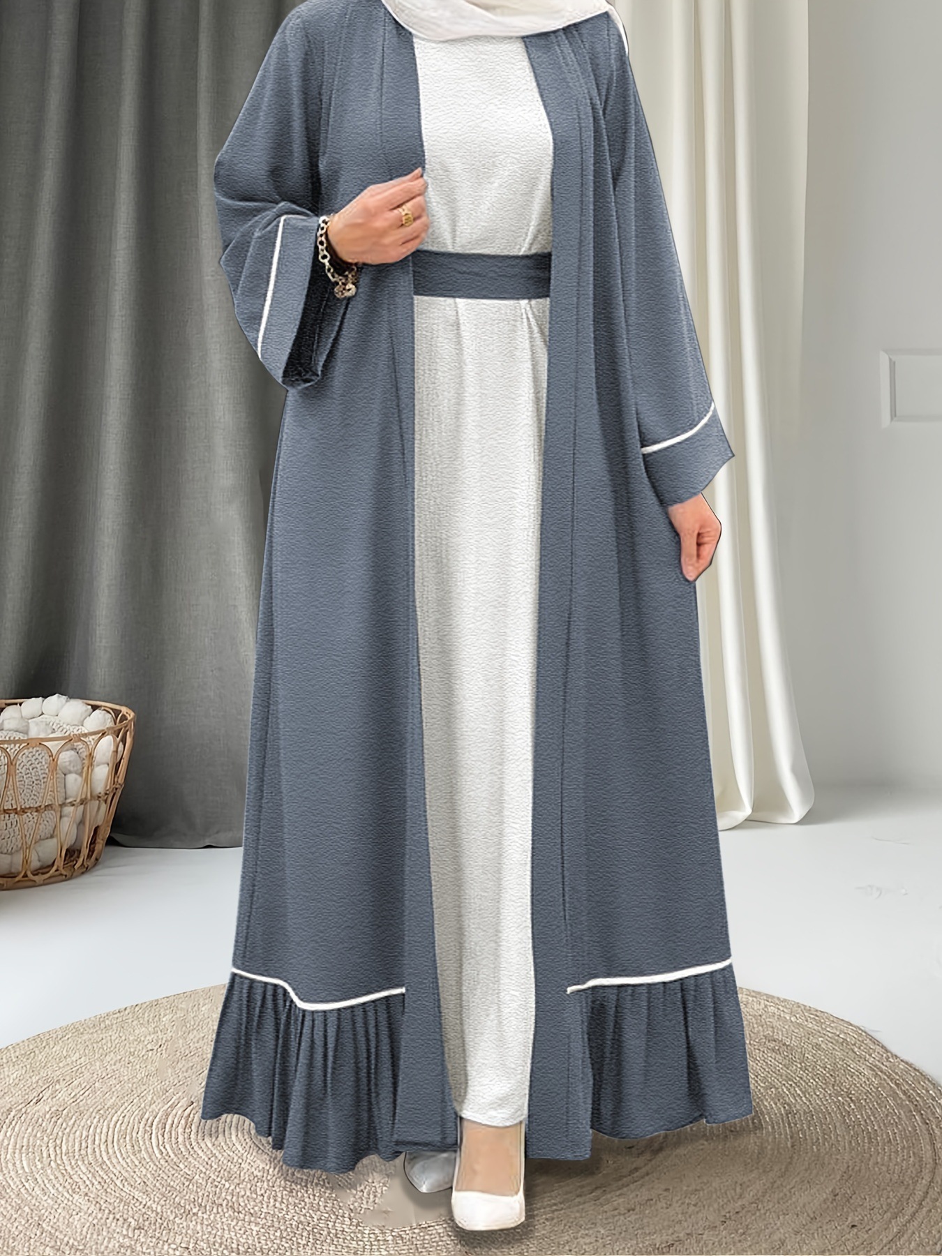 M4006 아마존 크로스보더 여성 중동 솔리드 컬러 벨트 롱 드레스 가운 재킷 투피스 세트