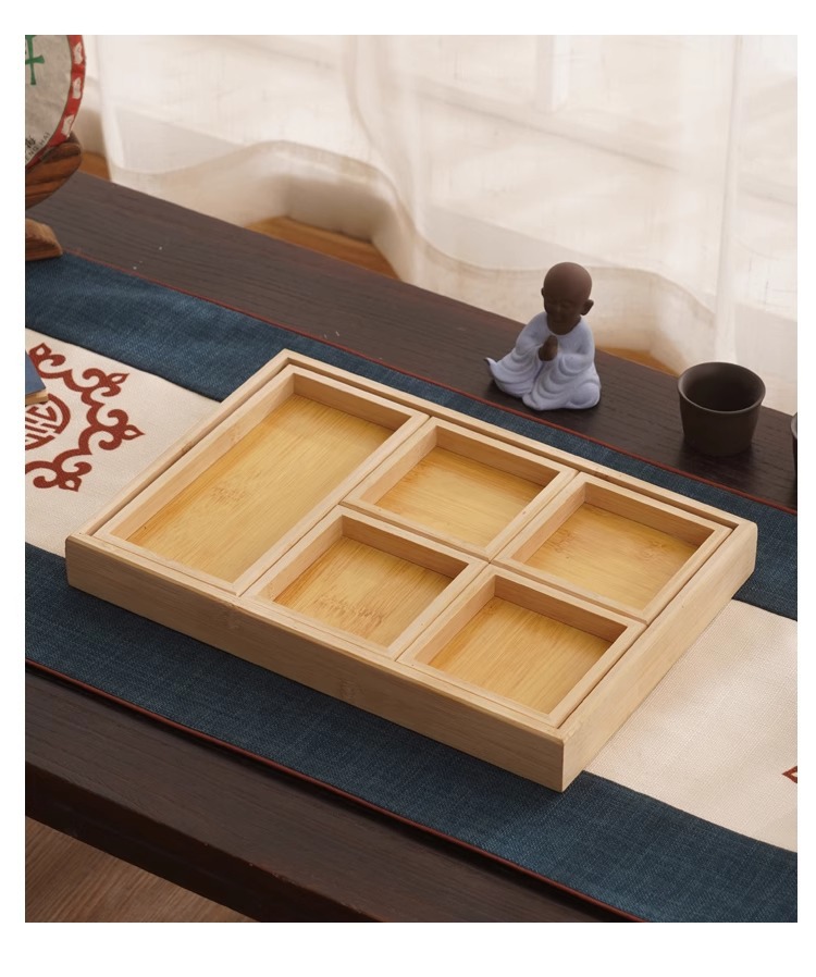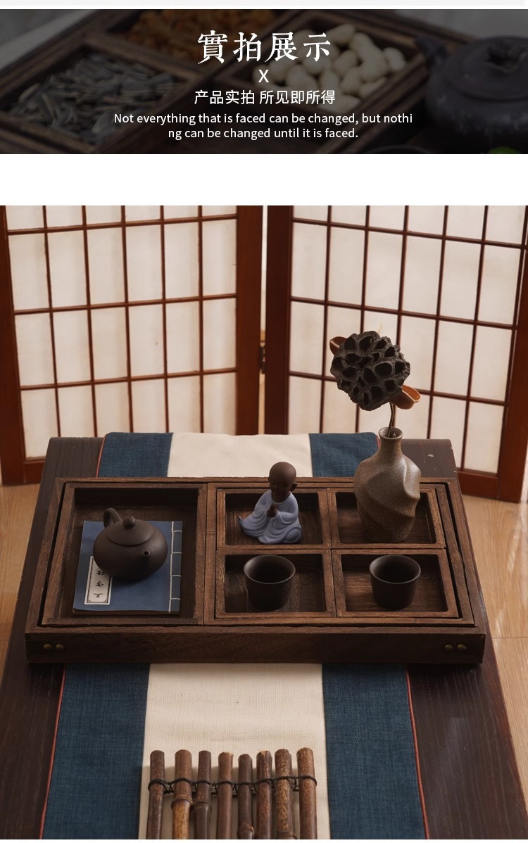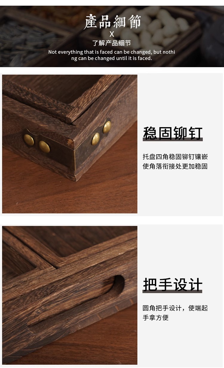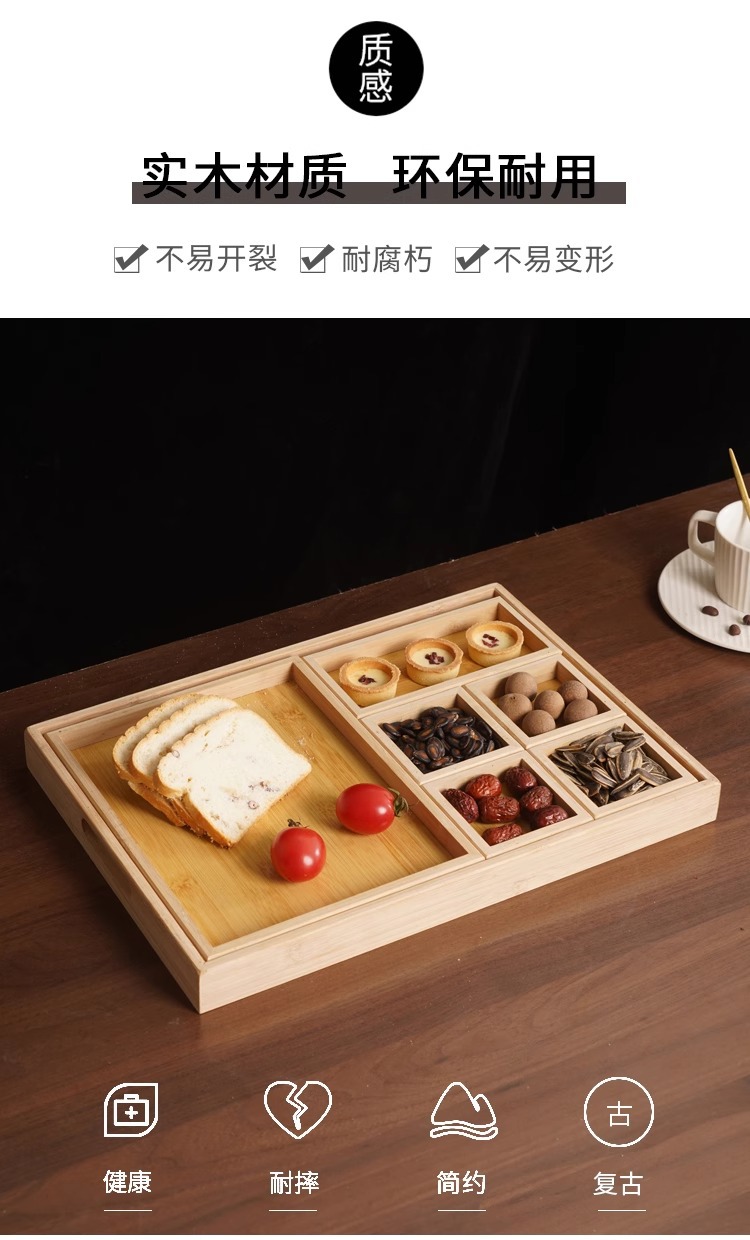 원목 레트로 차 트레이, 화로 주변에서 차를 끓이고 구울 수 있는 일본식 차 간식 및 건과일 트레이, 다용도 분할 과일 트레이 세트