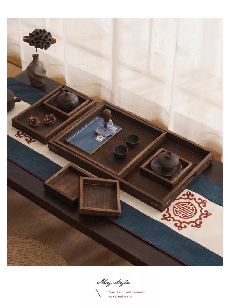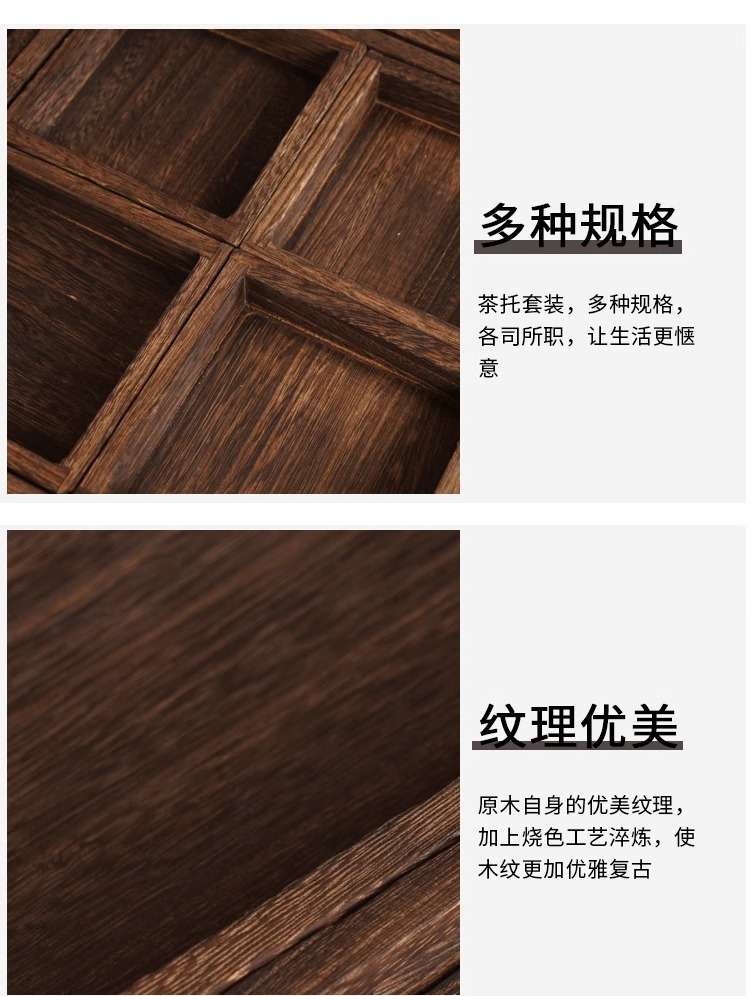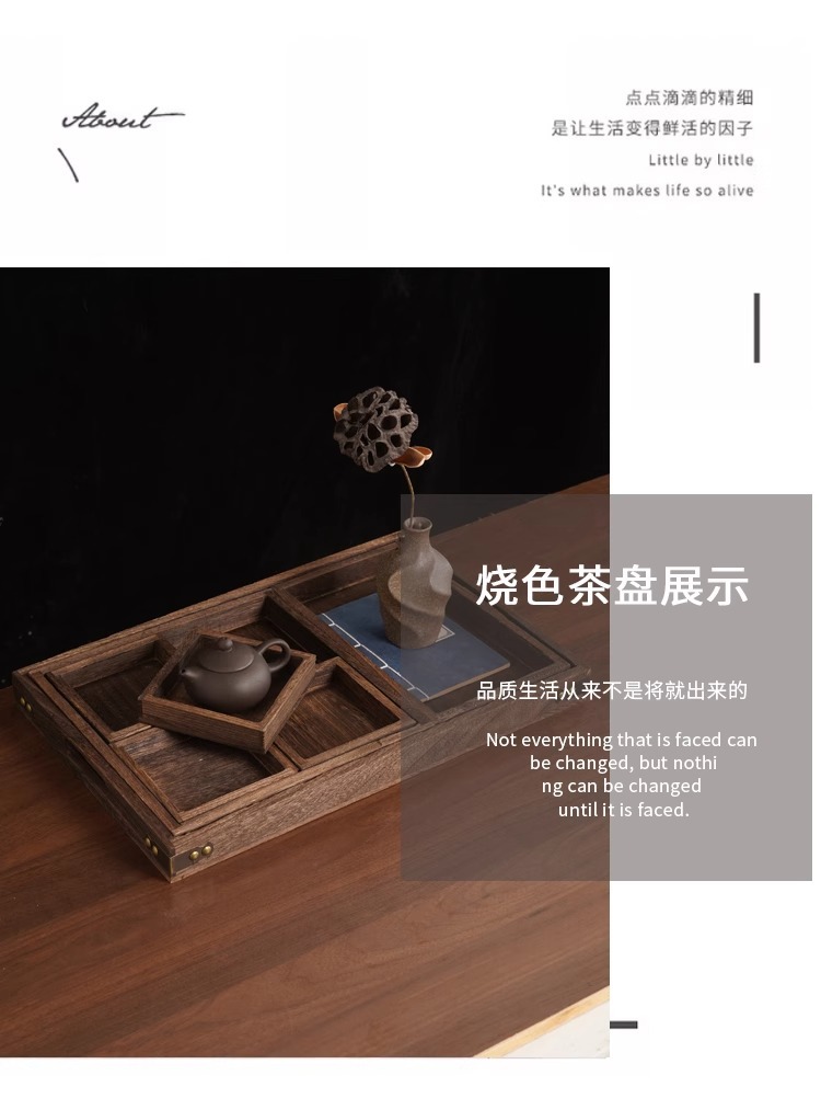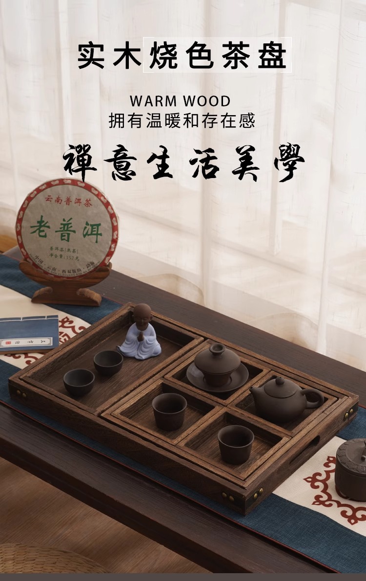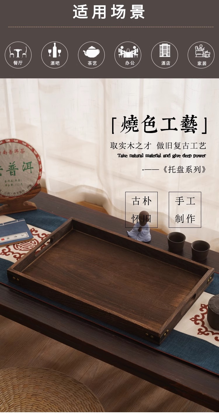 원목 레트로 차 트레이, 화로 주변에서 차를 끓이고 구울 수 있는 일본식 차 간식 및 건과일 트레이, 다용도 분할 과일 트레이 세트