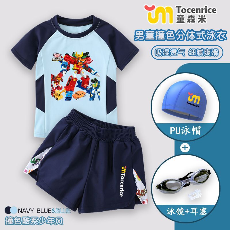 Cheshen 어린이 수영복 소년 2025 새로운 중대형 어린이 소년 수영복 스플릿 속건성 수영복 세트