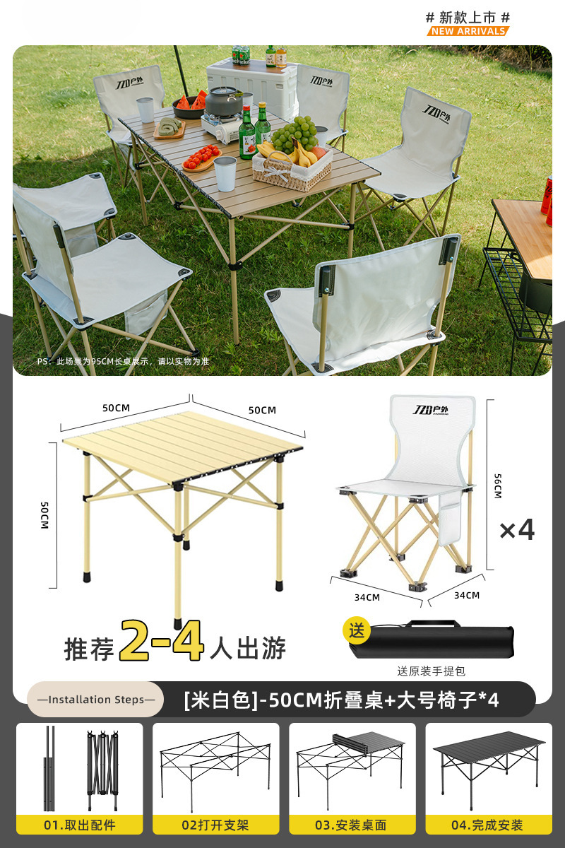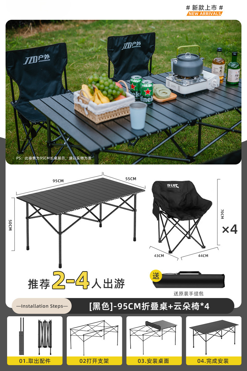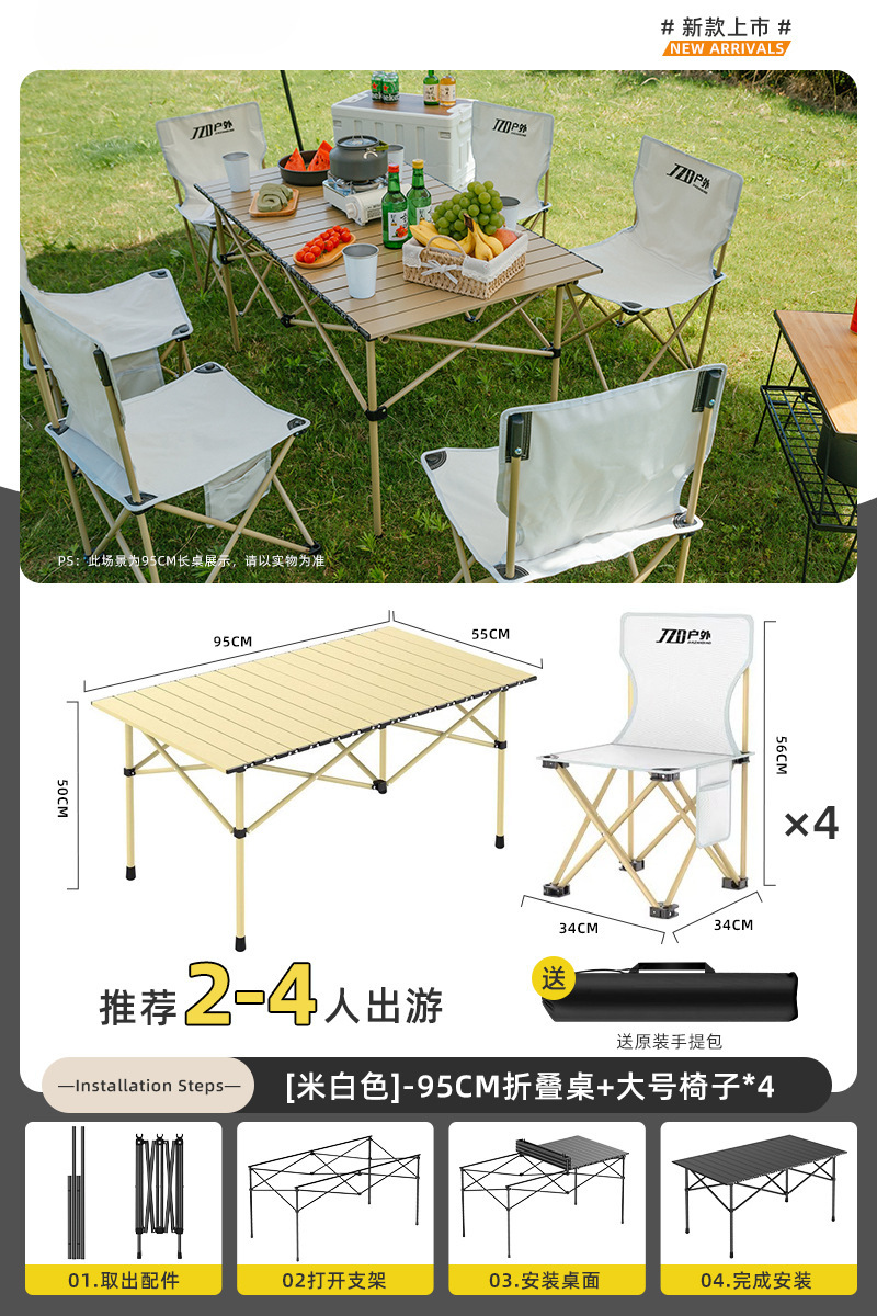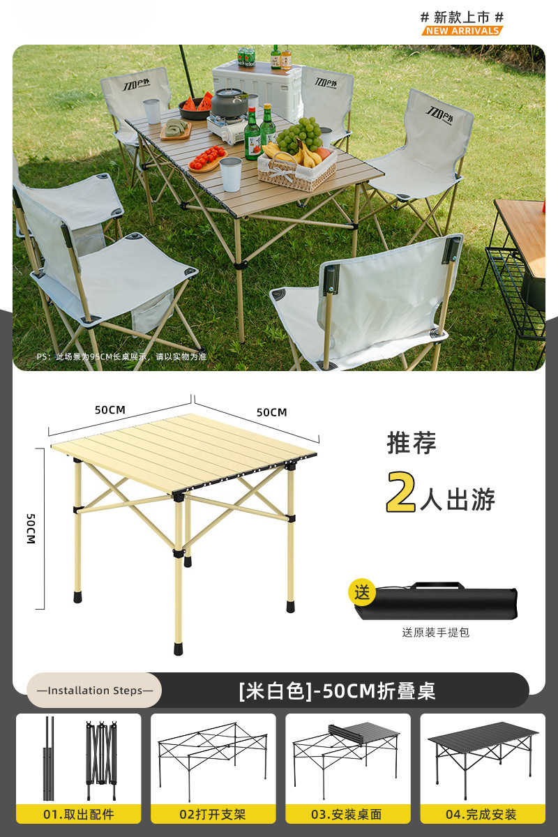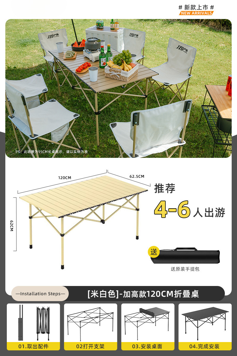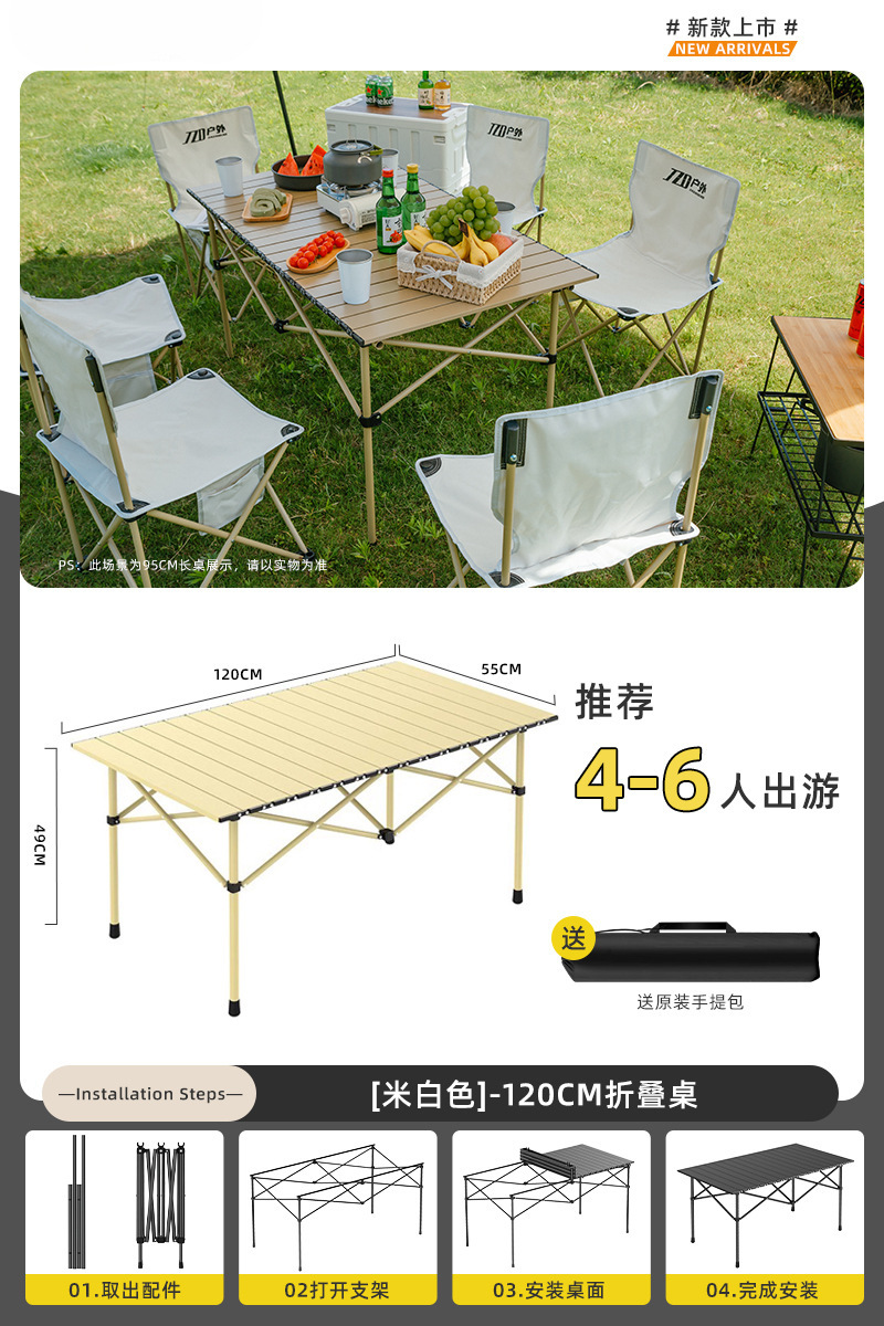 Yumi 야외 테이블과 의자 접이식 휴대용 피크닉 테이블 알루미늄 합금 계란 롤 테이블 캠핑 세트 피크닉 용품 및 장비
