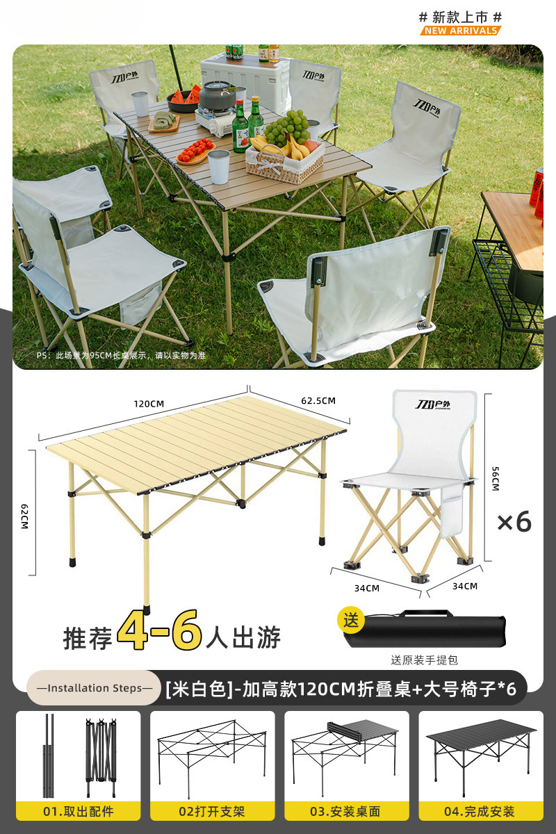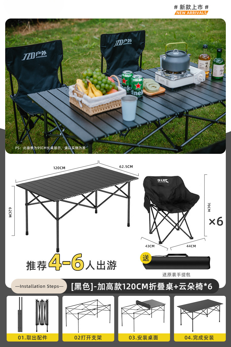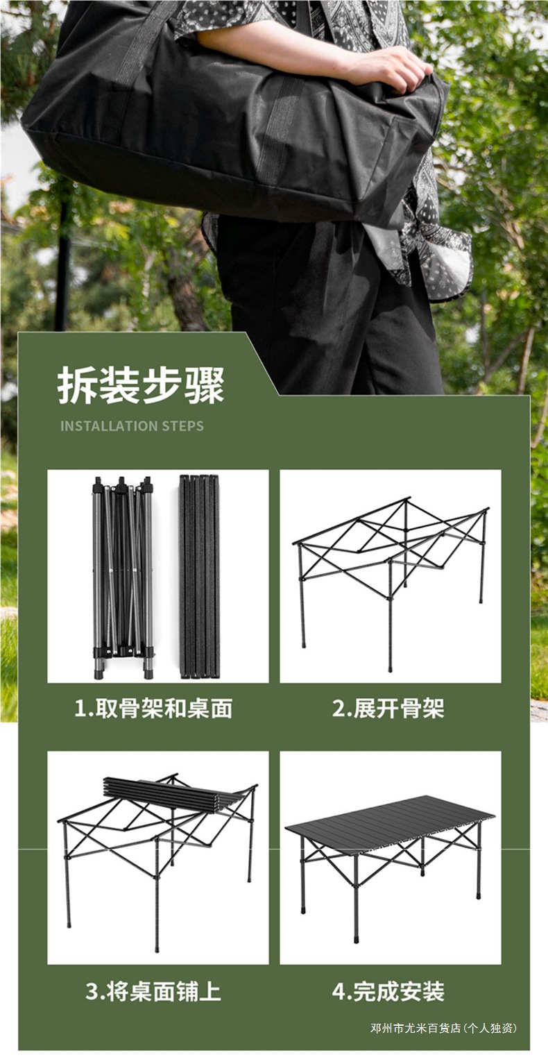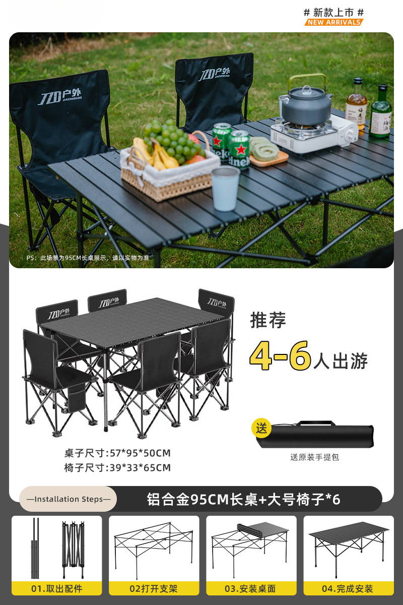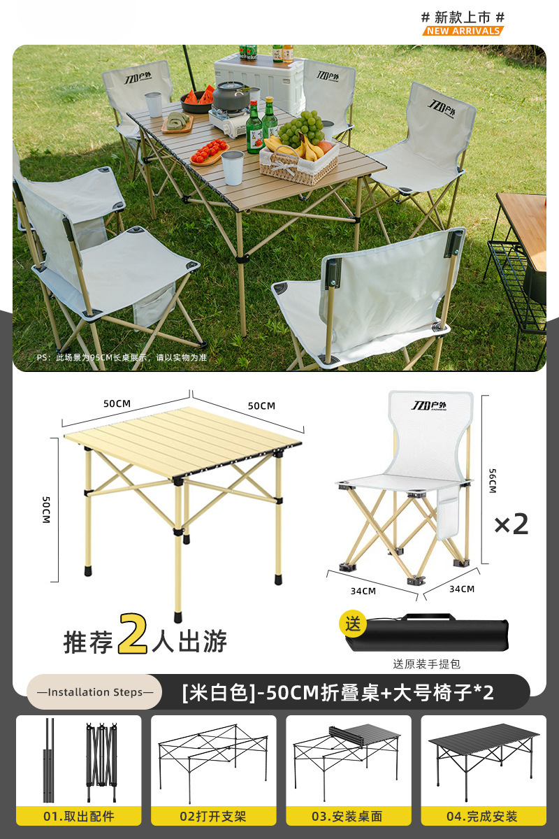 Yumi 야외 테이블과 의자 접이식 휴대용 피크닉 테이블 알루미늄 합금 계란 롤 테이블 캠핑 세트 피크닉 용품 및 장비