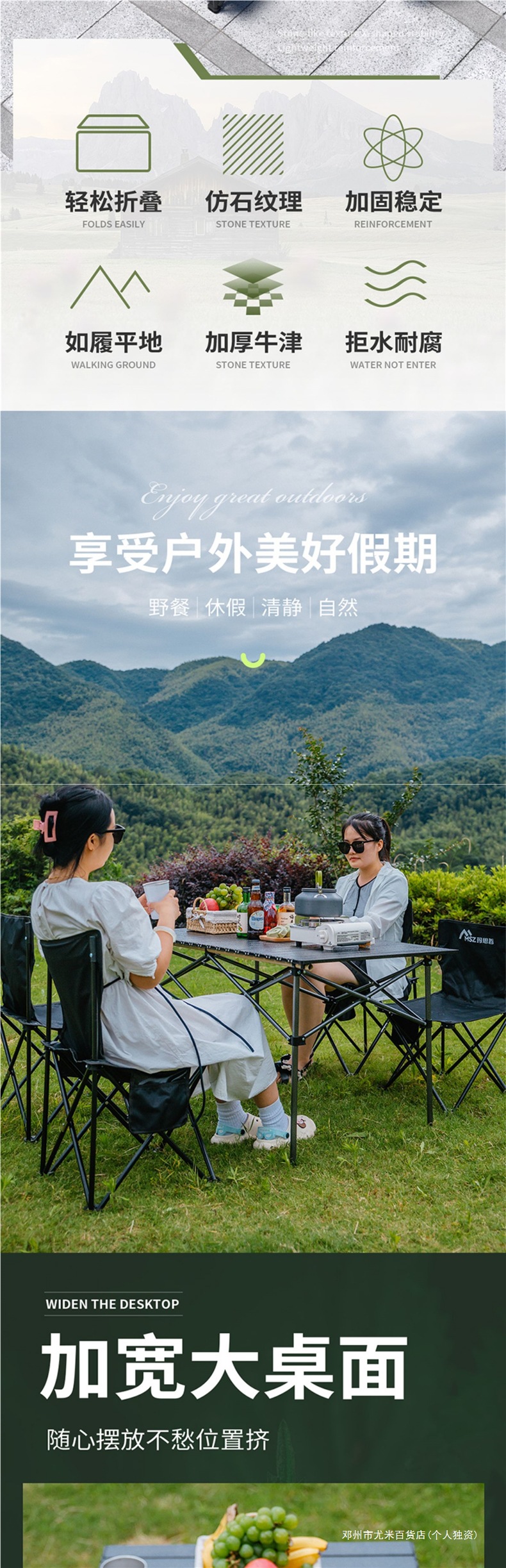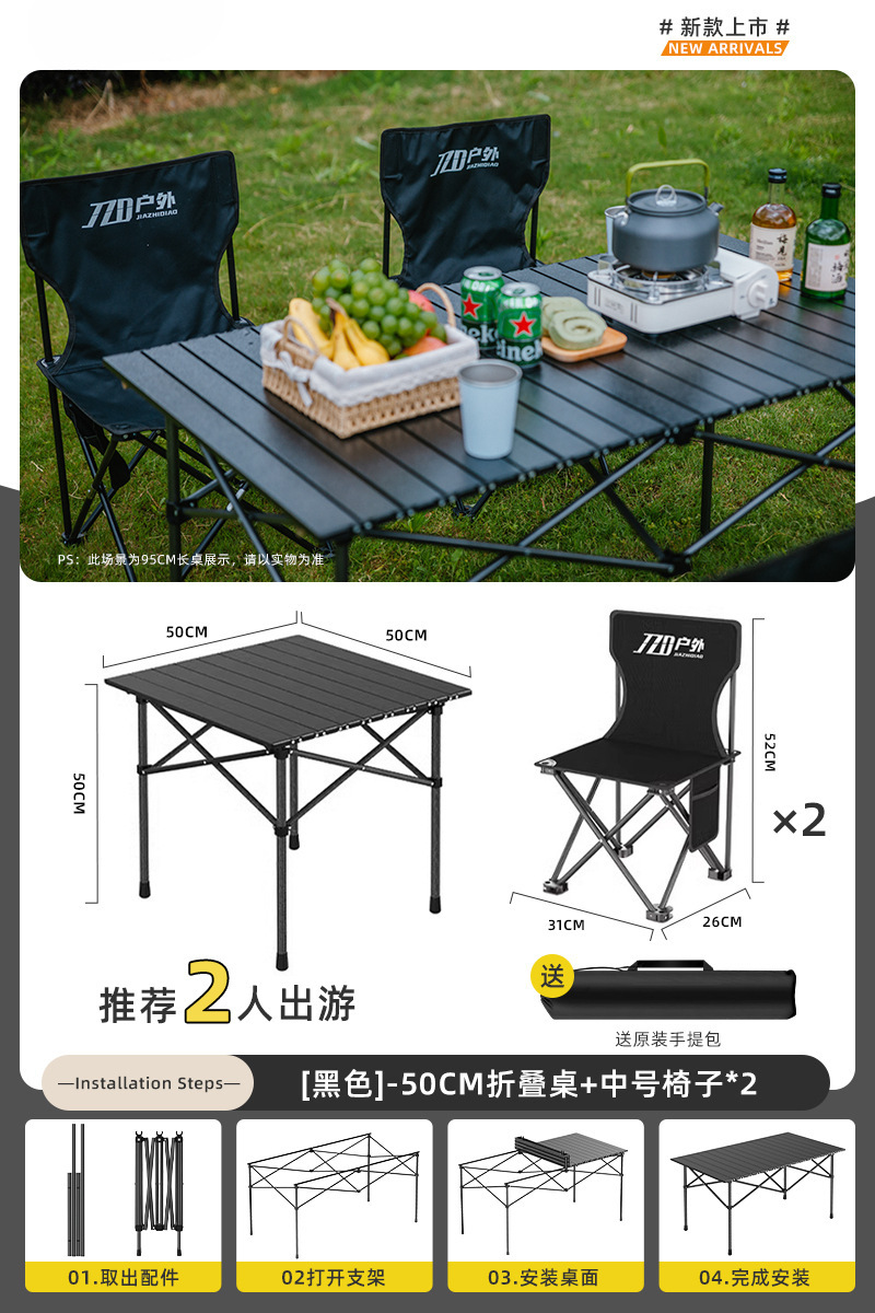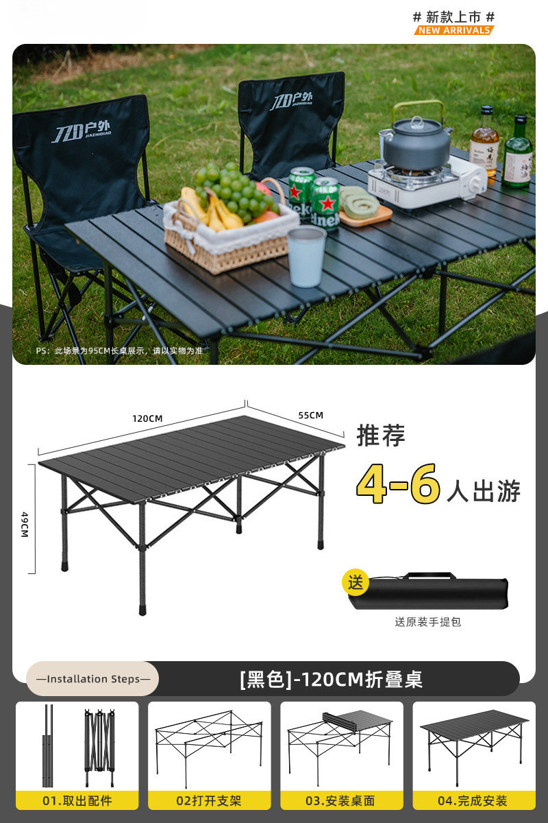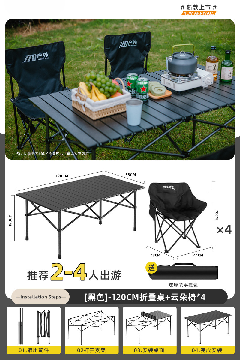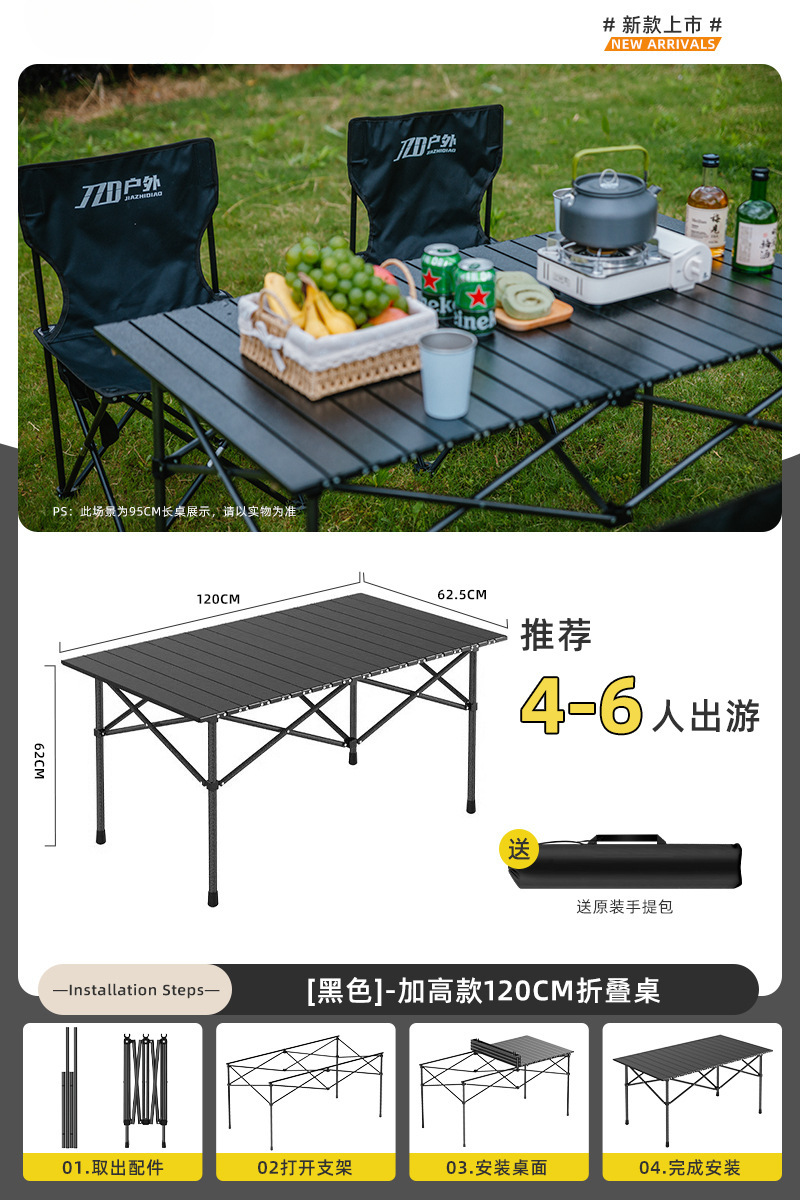 Yumi 야외 테이블과 의자 접이식 휴대용 피크닉 테이블 알루미늄 합금 계란 롤 테이블 캠핑 세트 피크닉 용품 및 장비