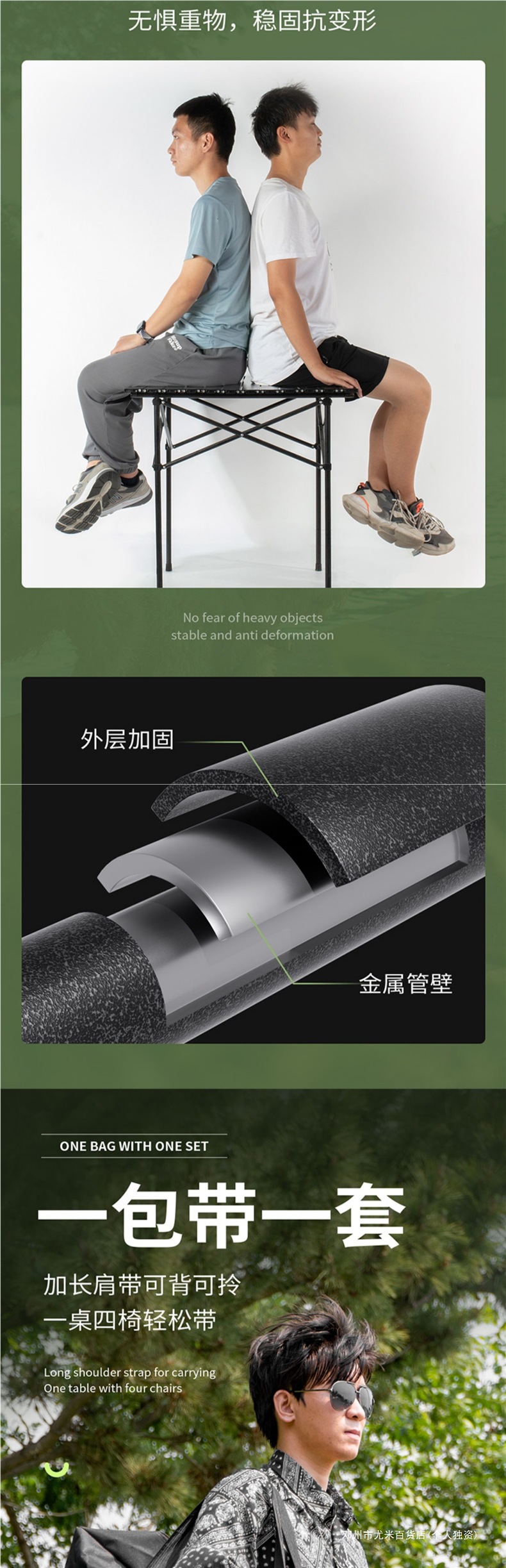 • 다음은 알루미늄 합금 데스크탑 세트(접이식 의자 모델)입니다.