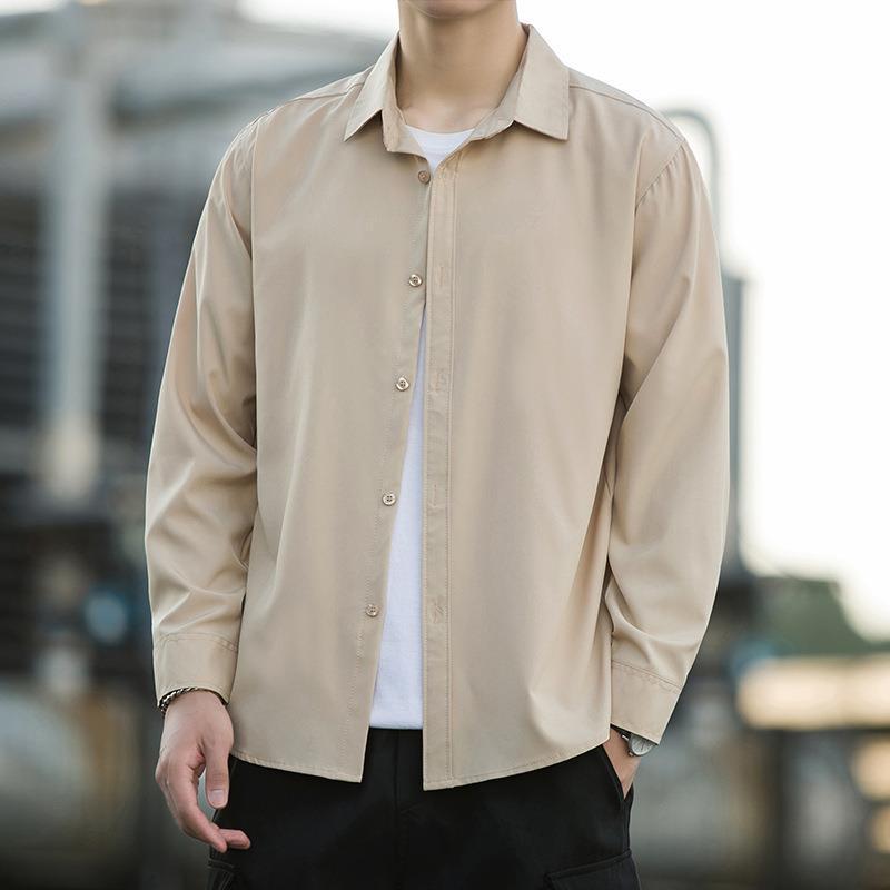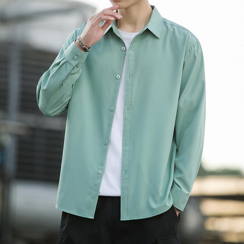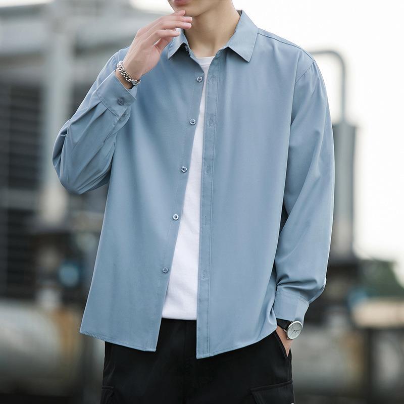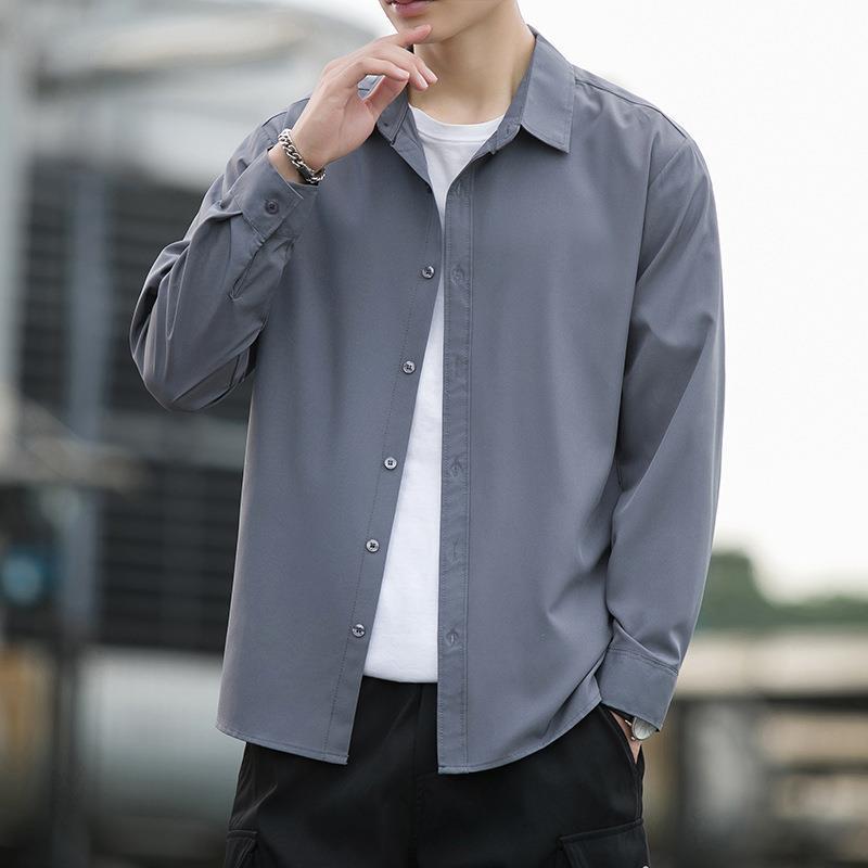 여름 아이스 실크 블랙 셔츠 남성용 긴팔 이너웨어, 노아이론 루즈 캐주얼 핸섬 그레이 보이 셔츠스토어 가기