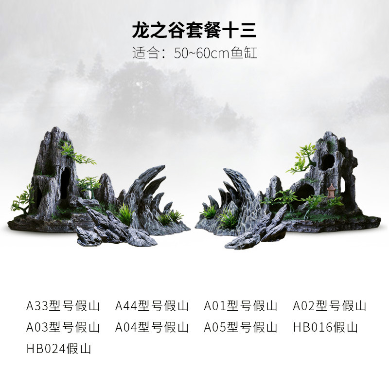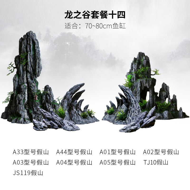 수조 조경 장식품, 시뮬레이션된 녹색 용암 계곡, 가짜 바위 장식, 수생 식물, 작은 수족관, 계곡 패키지, Douyin스토어 가기
