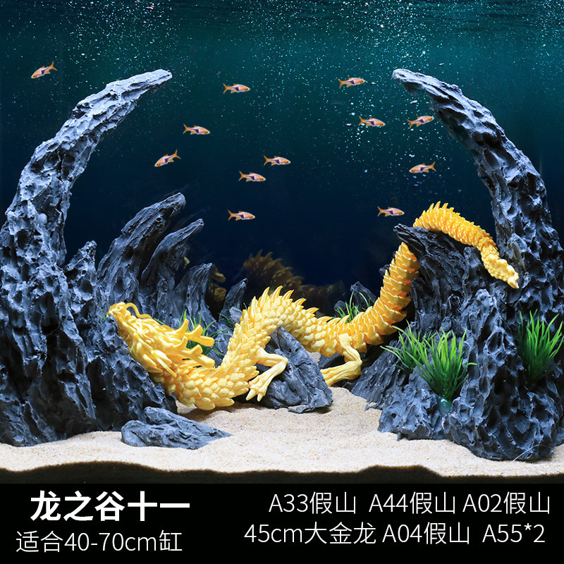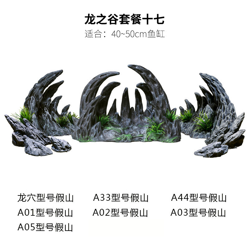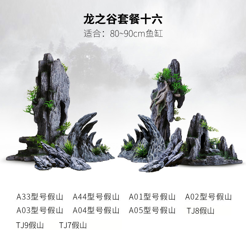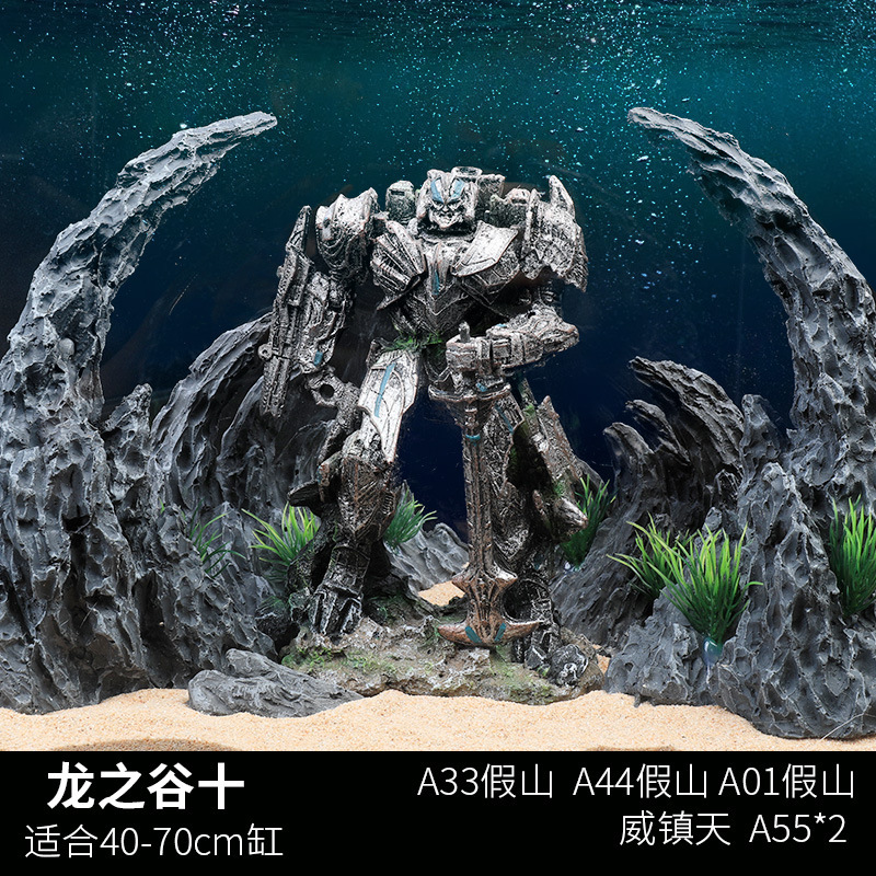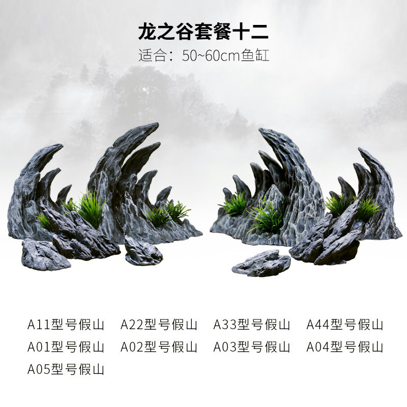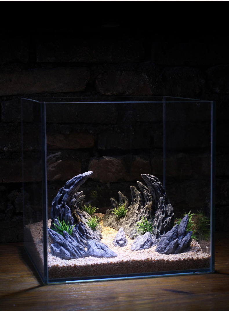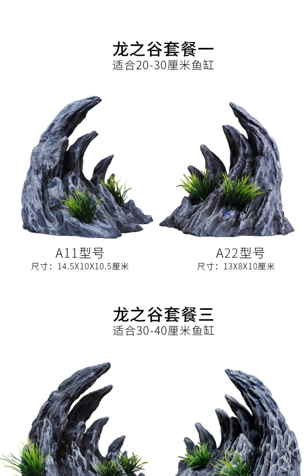 수조 조경 장식품, 시뮬레이션된 녹색 용암 계곡, 가짜 바위 장식, 수생 식물, 작은 수족관, 계곡 패키지, Douyin